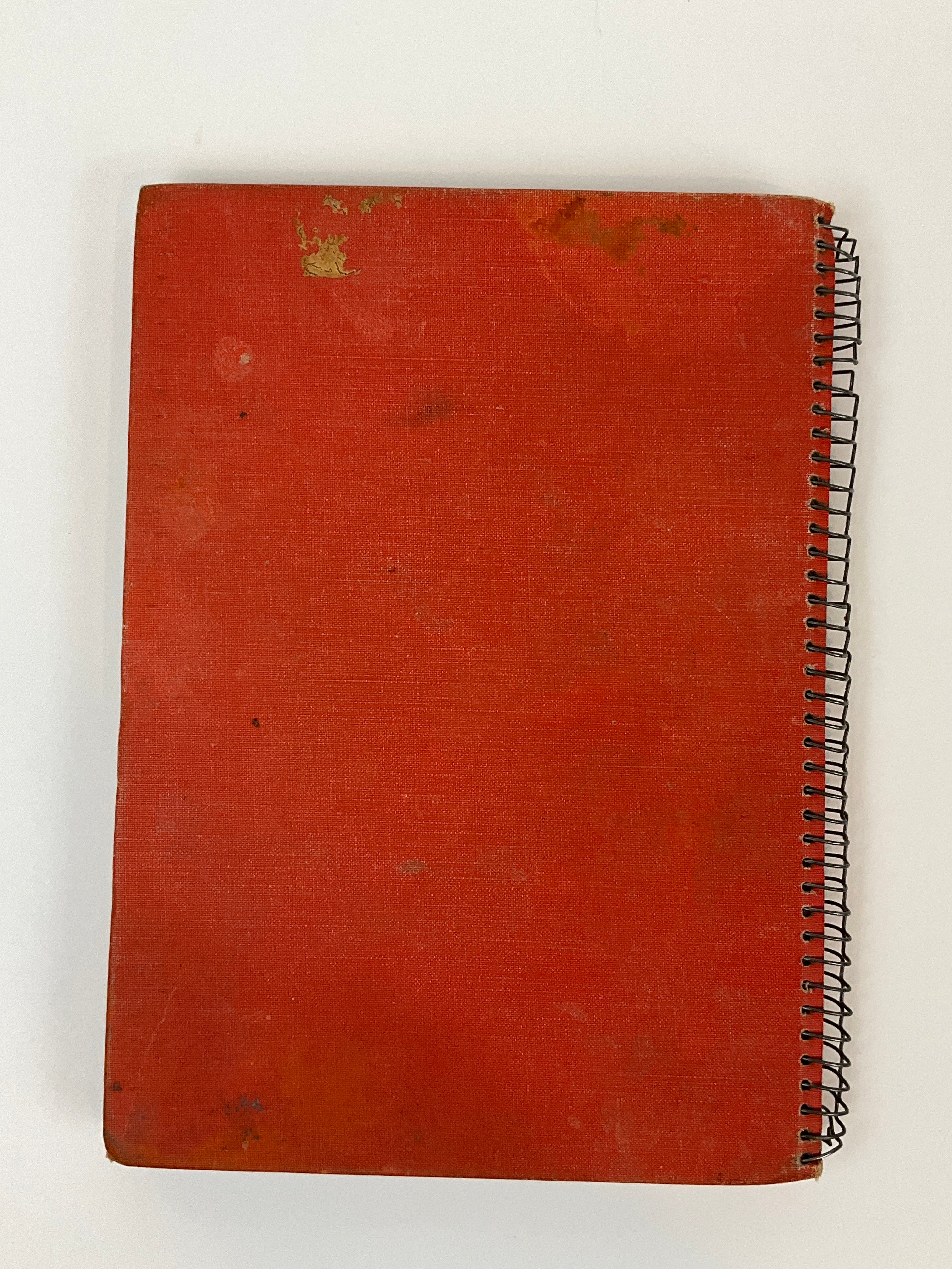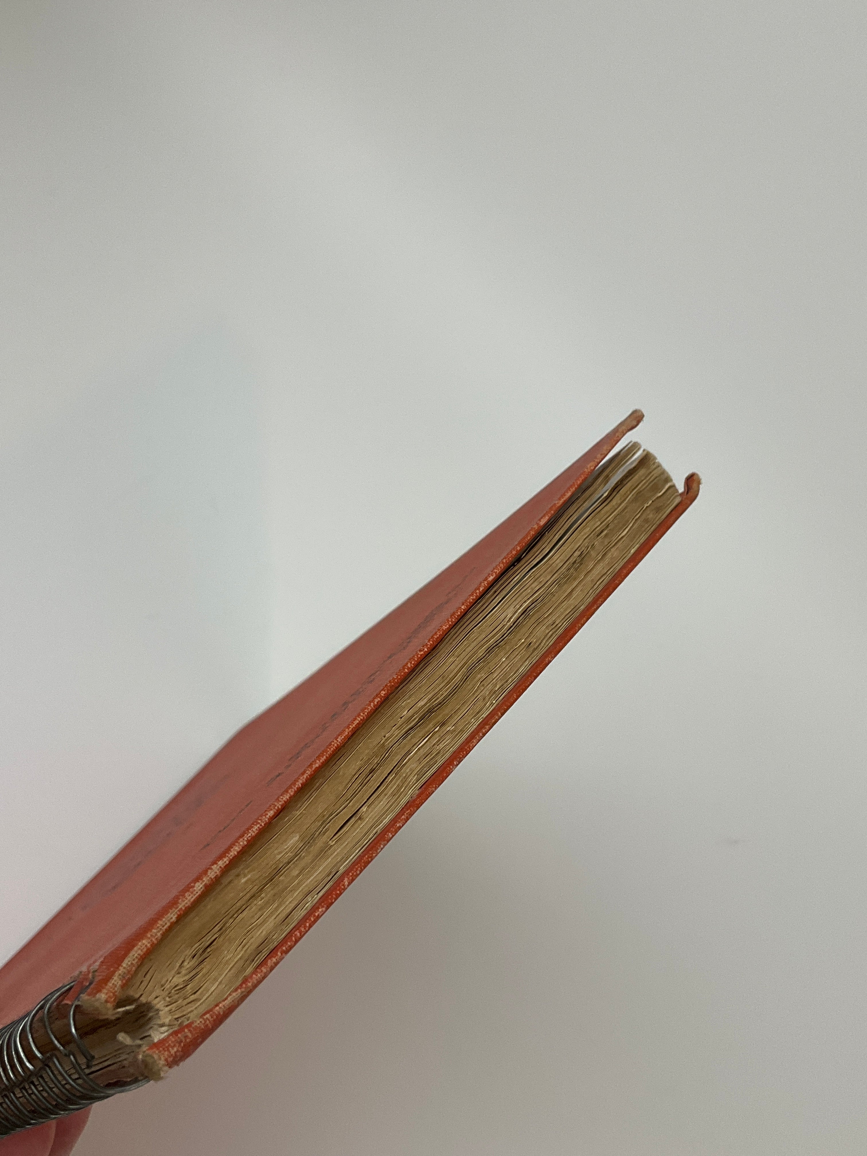 Corners bumped, covers stained, pages 103-106 bottom corners damaged, age tanning, random food splatter throughout.