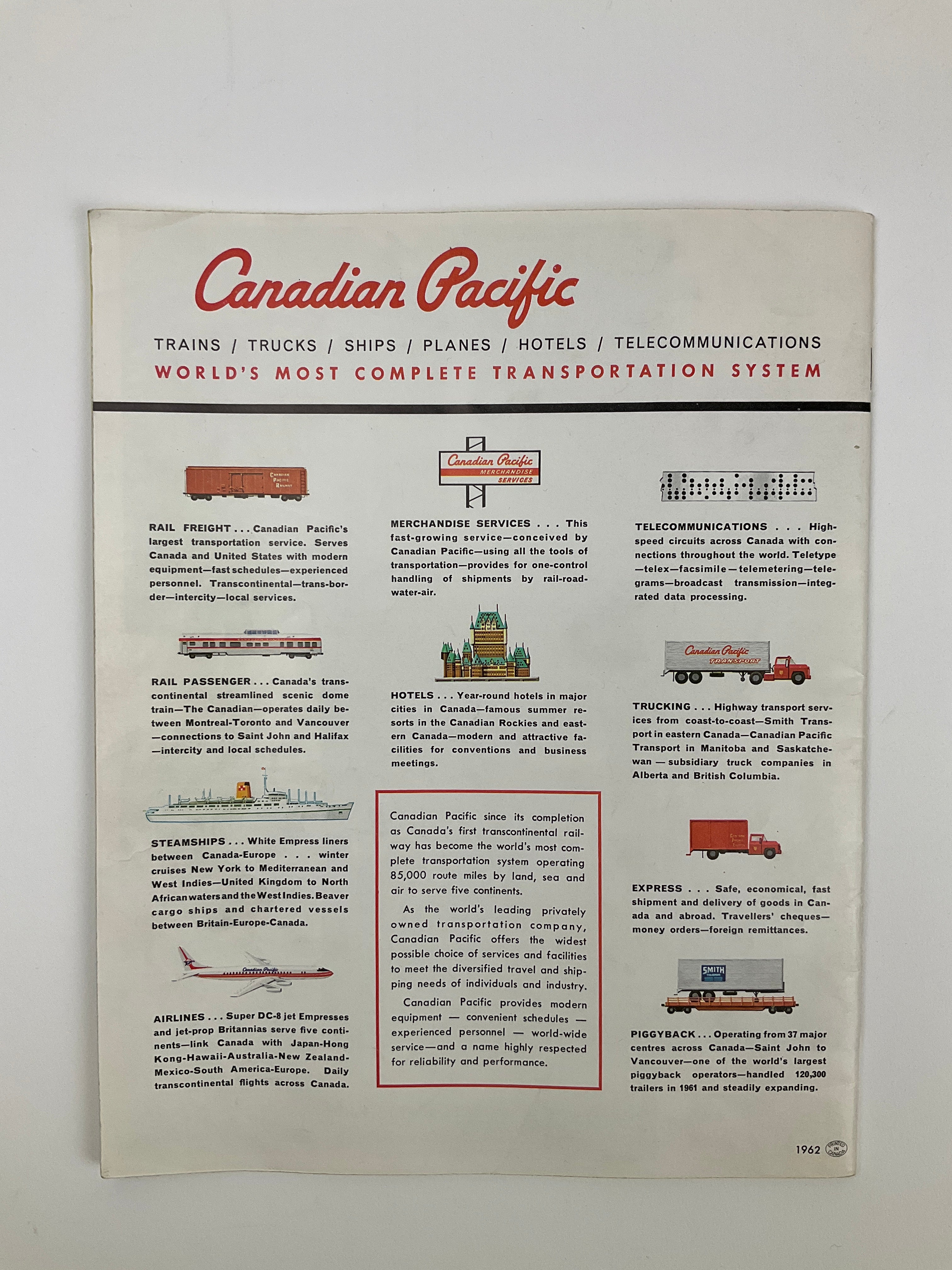 Brochure highlighting the sights between Vancouver and Montreal's Windsor Station.