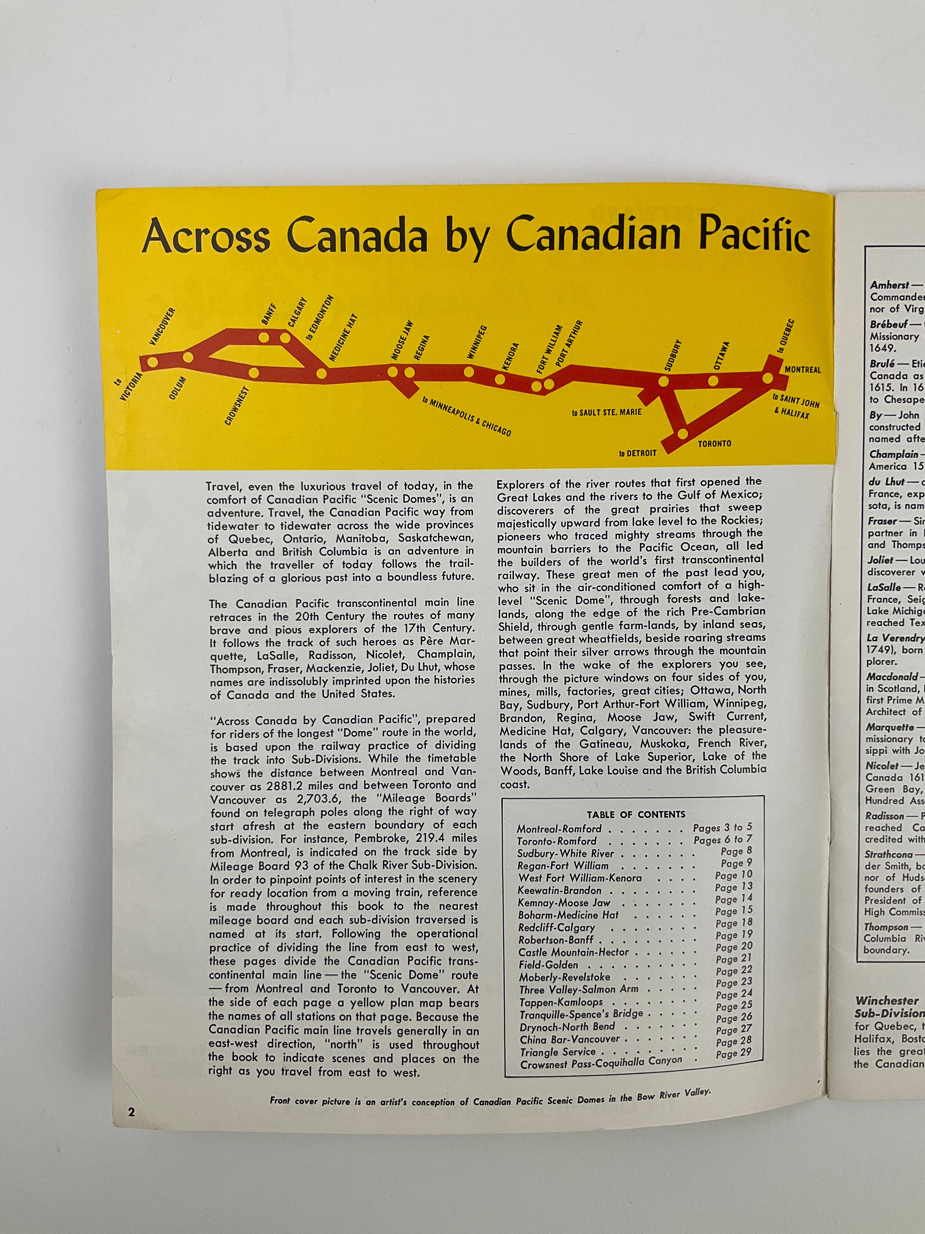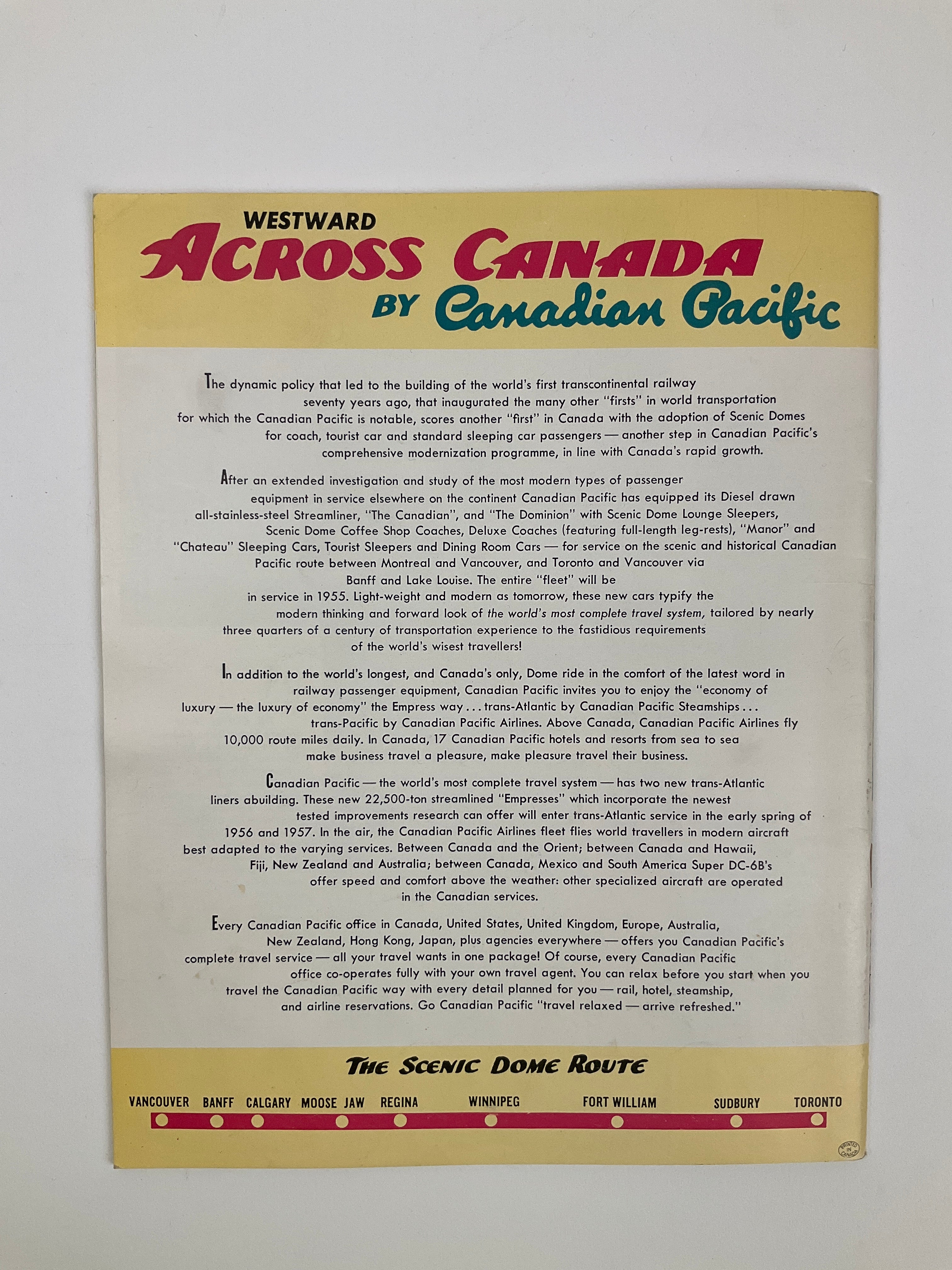 Brochure highlighting the sights between Montreal's Windsor Station and Vancouver.