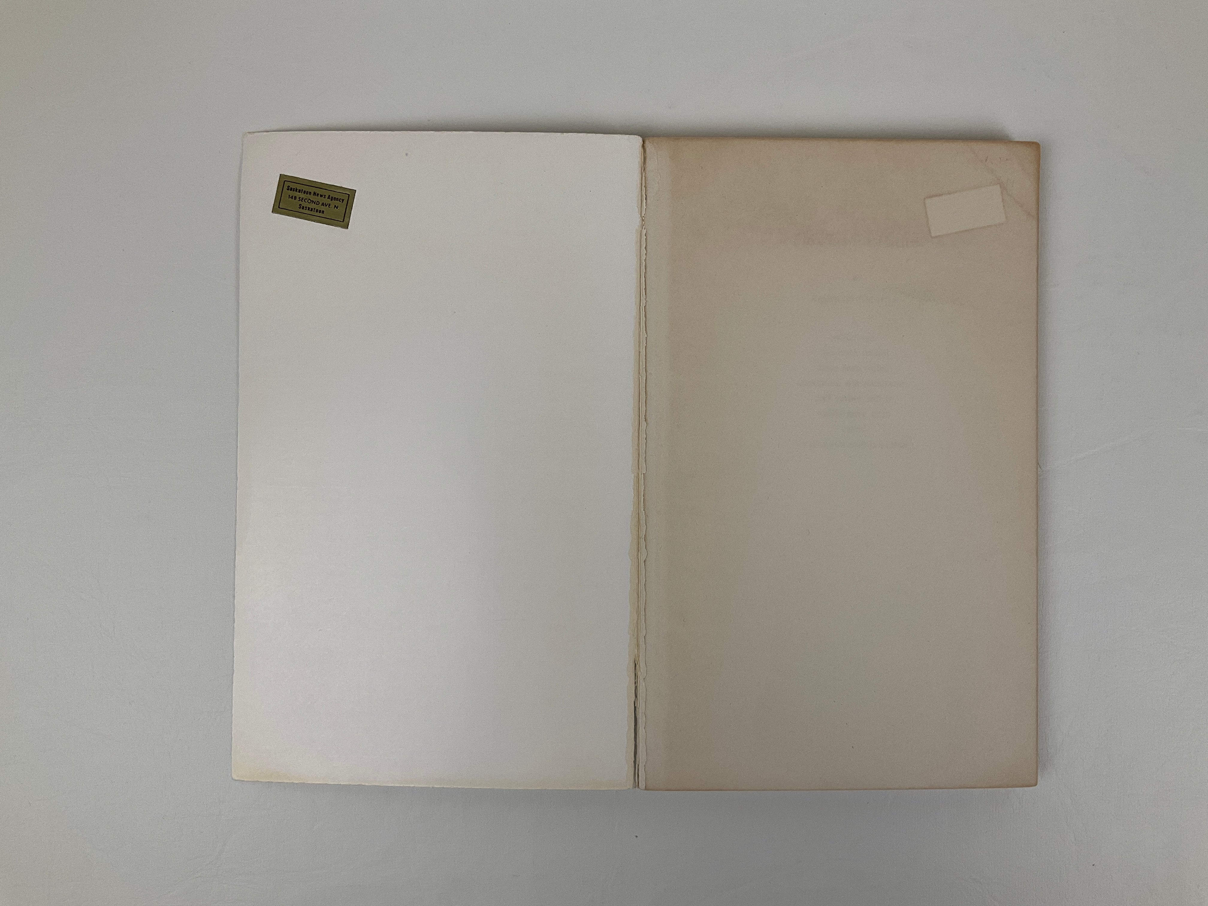 Bookseller’s label carelessly affixed to the verso of the front cover, with offsetting visible on the front free endpaper. Fore-edge corners bumped and creased; text block age-tanned. Covers show creasing, dust-soiling, and age-tanning. Spine crown and heel reinforced with cellophane tape extending across the panels. The upper cover bears shallow impressions, suggesting prior use as a writing surface.