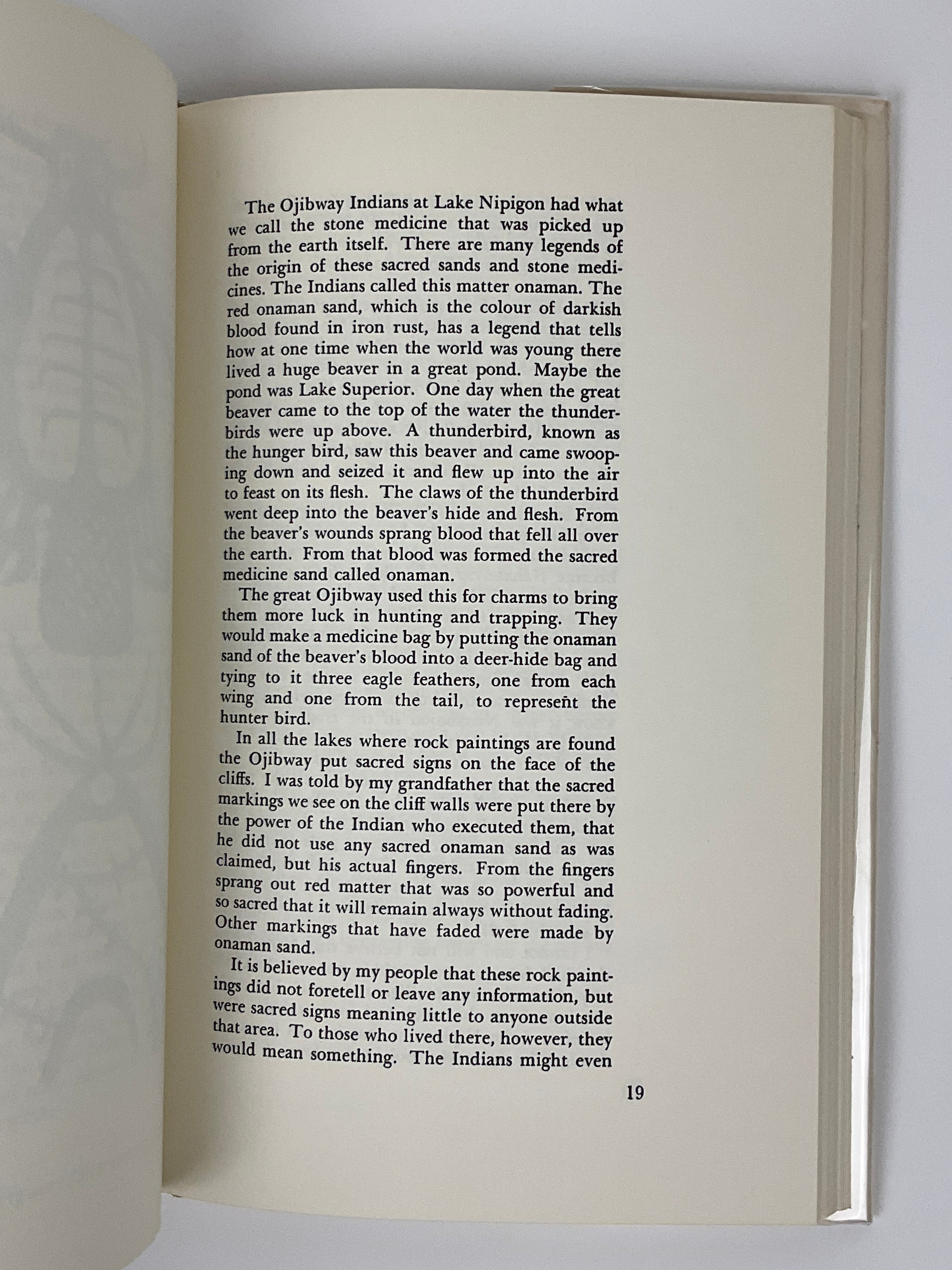 Hardcover, with dust jacket, 130 pages, 6x9.25 in, [15x24 cm]. Illustrated by Norval Morriseau. Originally published in 1965 this copy a later printing.