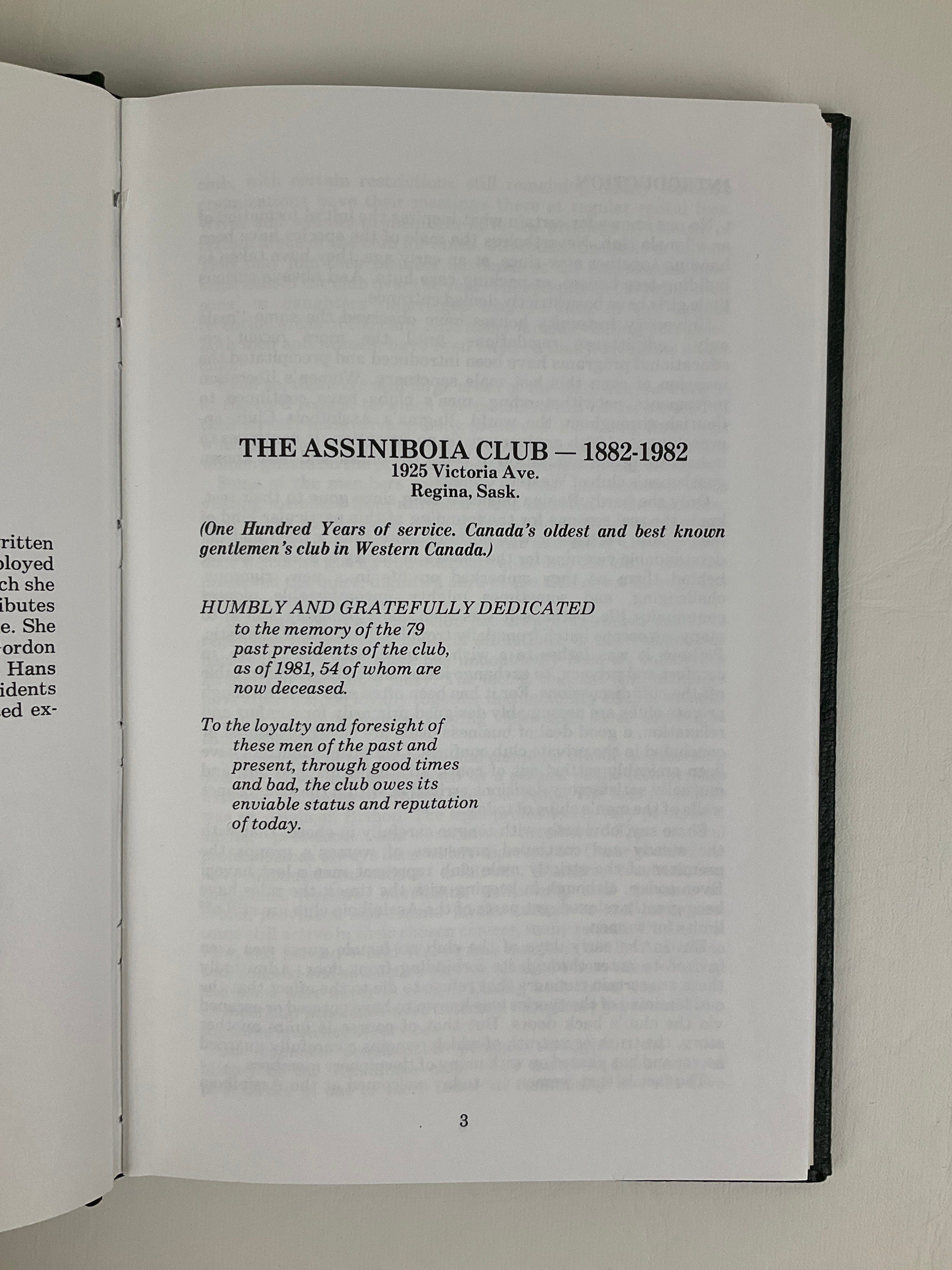 The Assiniboia Club 1882-1982 100 Years of Service