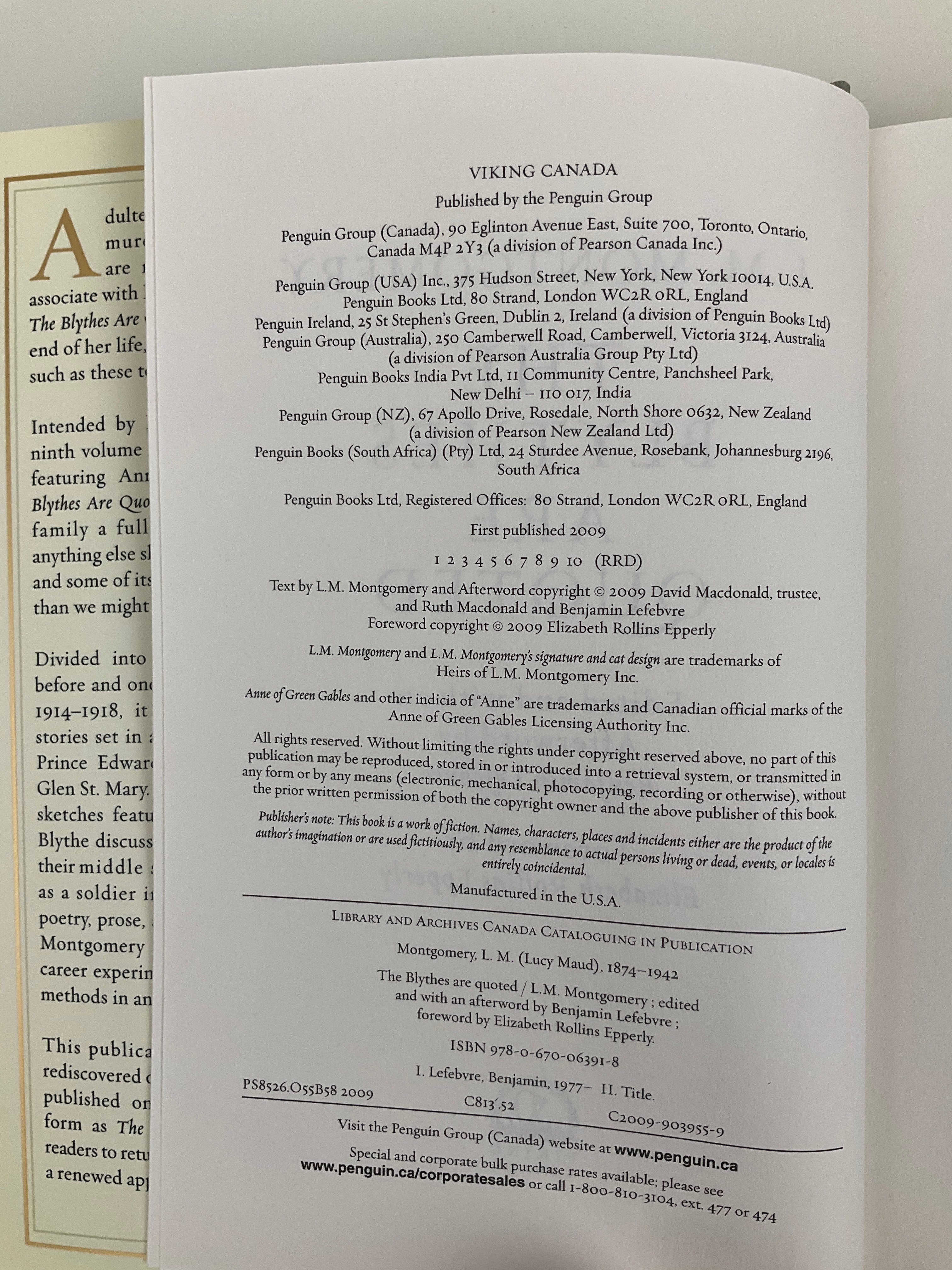 It was not until the publication of this Viking Canada edition that Montgomery’s complete text was at last presented as she intended.