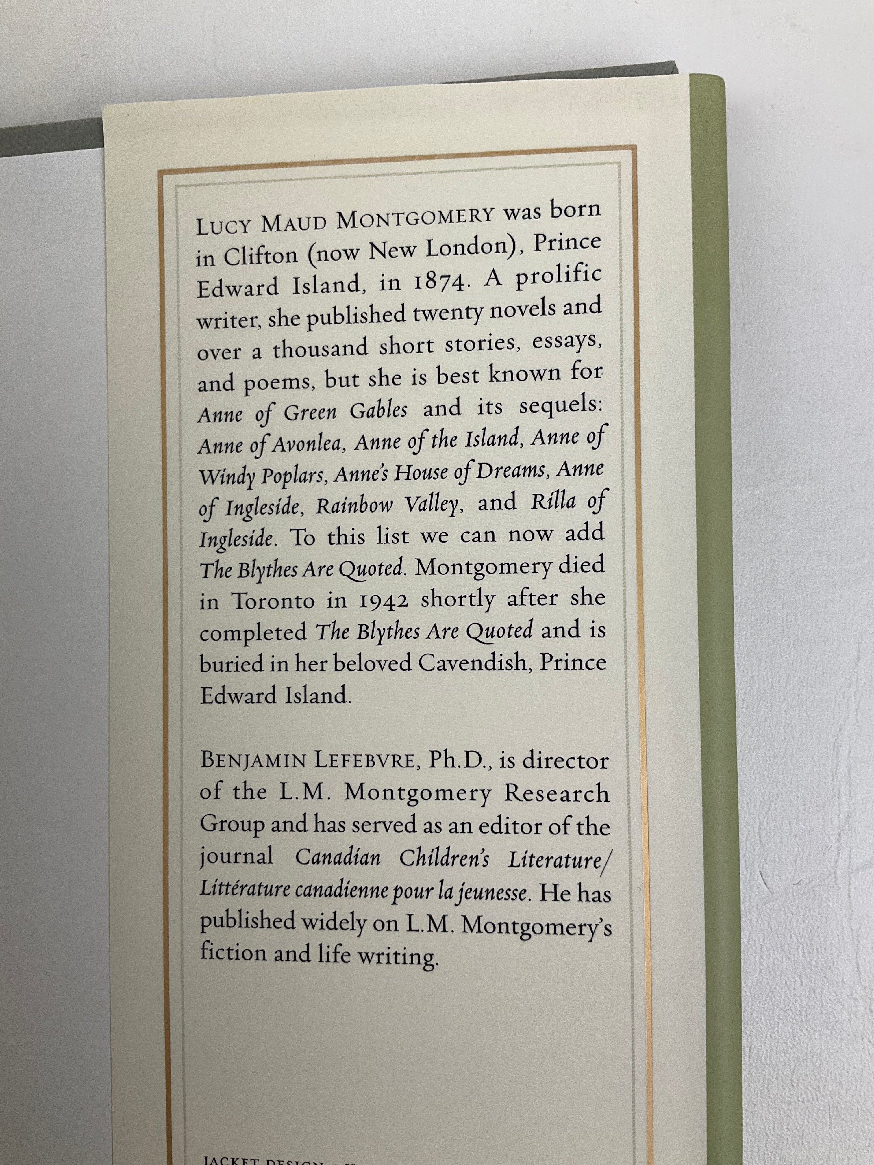 Completed in the final year of Montgomery’s life, The Blythes Are Quoted stands as the author’s valedictory work, and the true conclusion to the Anne of Green Gables cycle.