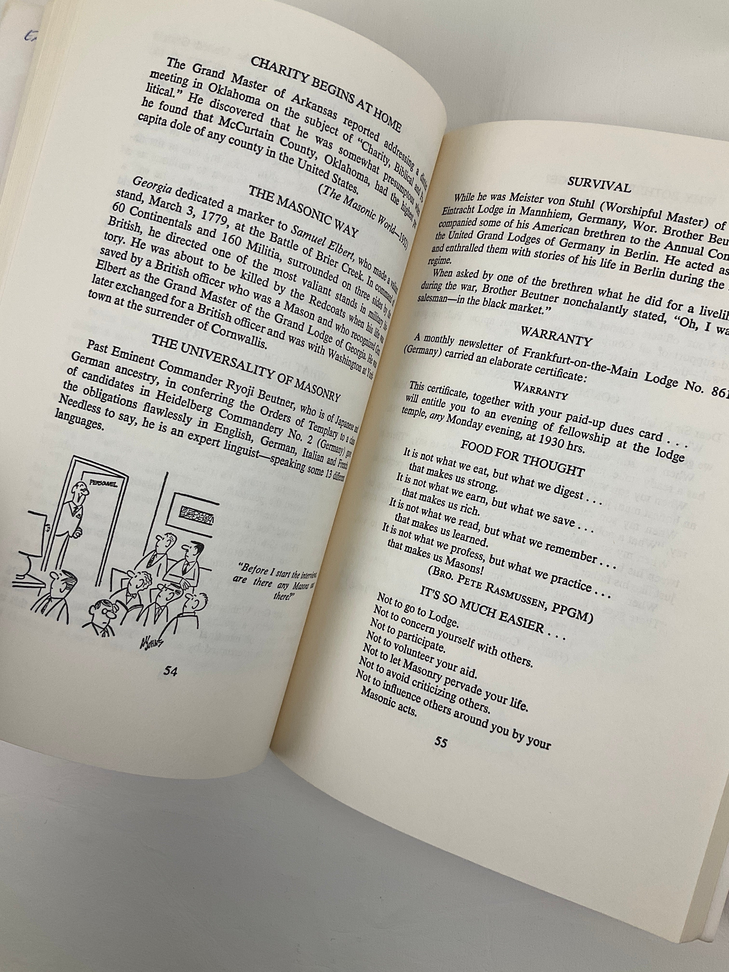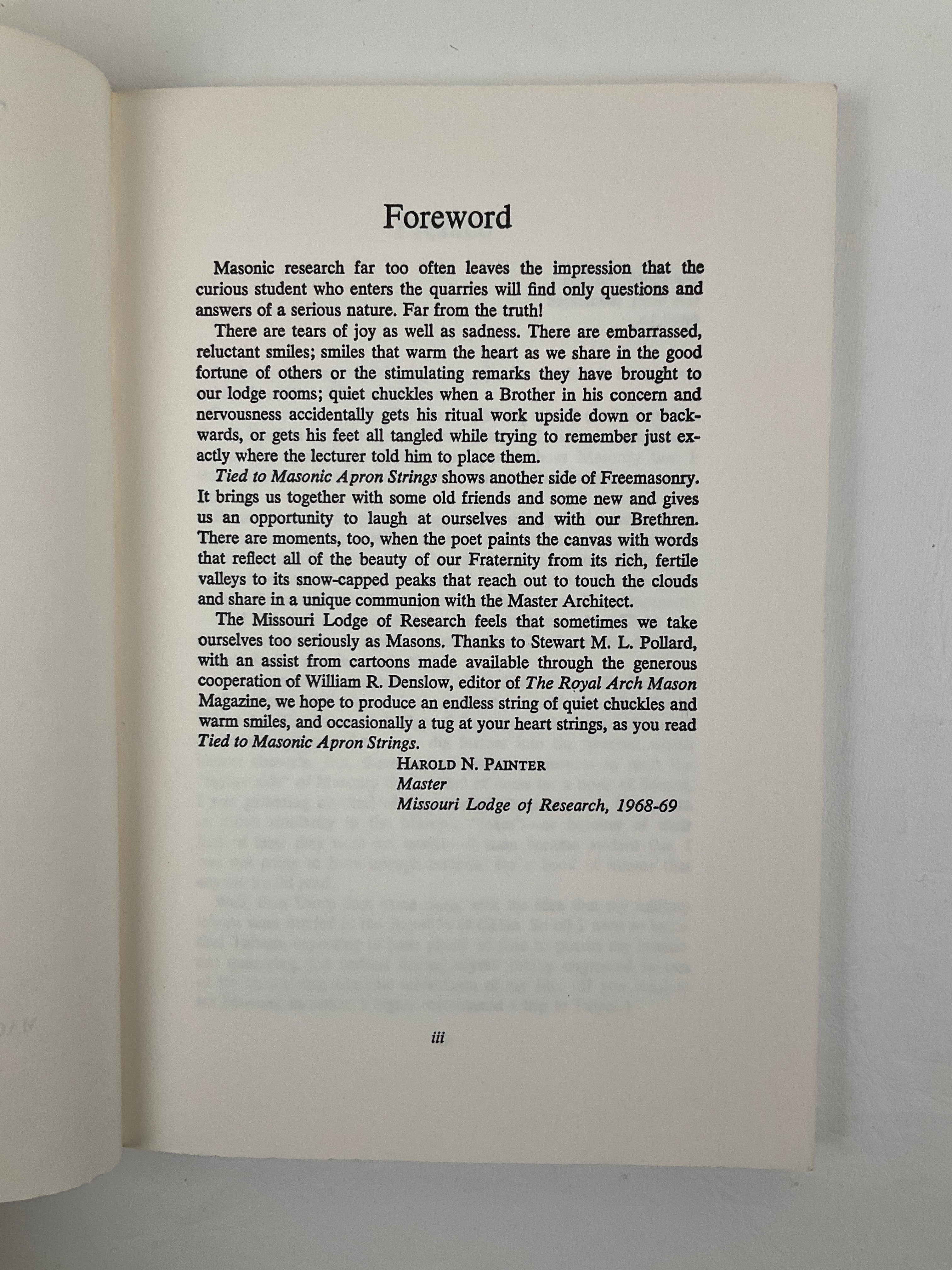 From Publisher "A book loaded with rib ticklers--just the gift to speed recovery of an "ailing" Brother! Bro. Pollard has rounded up the cream of the crop of humorous incidents that occur in Masonic gatherings, sweetened them with a number of unusual Masonic poems and brief inspirational articles, and seasoned well with those "spicy and funny" cartoons from the pages of the Royal Arch Mason Magazine. An armchair delight and a ready "wit" to brighten Masonic talks. Tied to Masonic Apron Strings shows another side of Freemasonry. The Missouri Lodge of Research feels that sometimes we take ourselves too seriously as Masons. This book helps us laugh with ourselves."