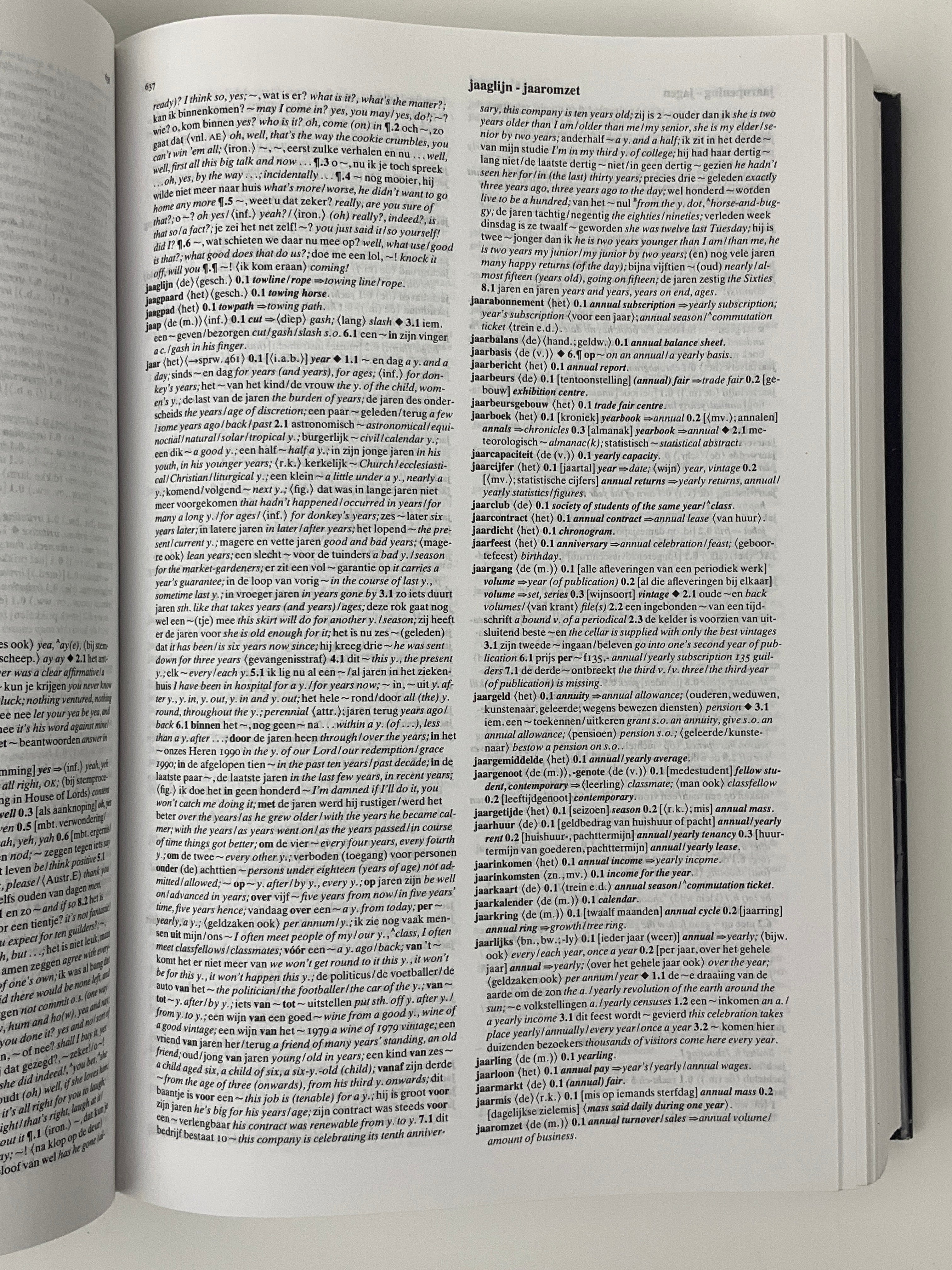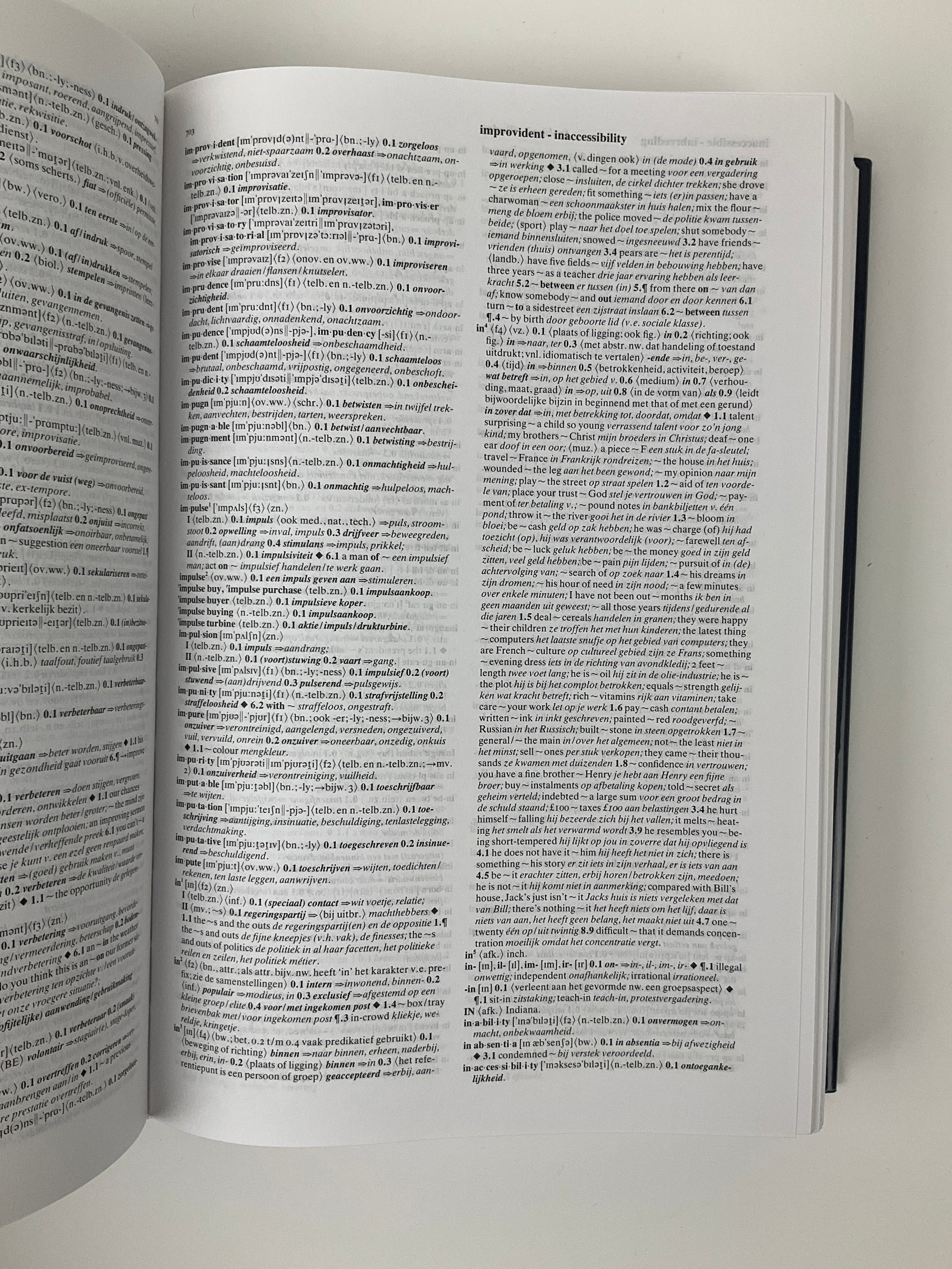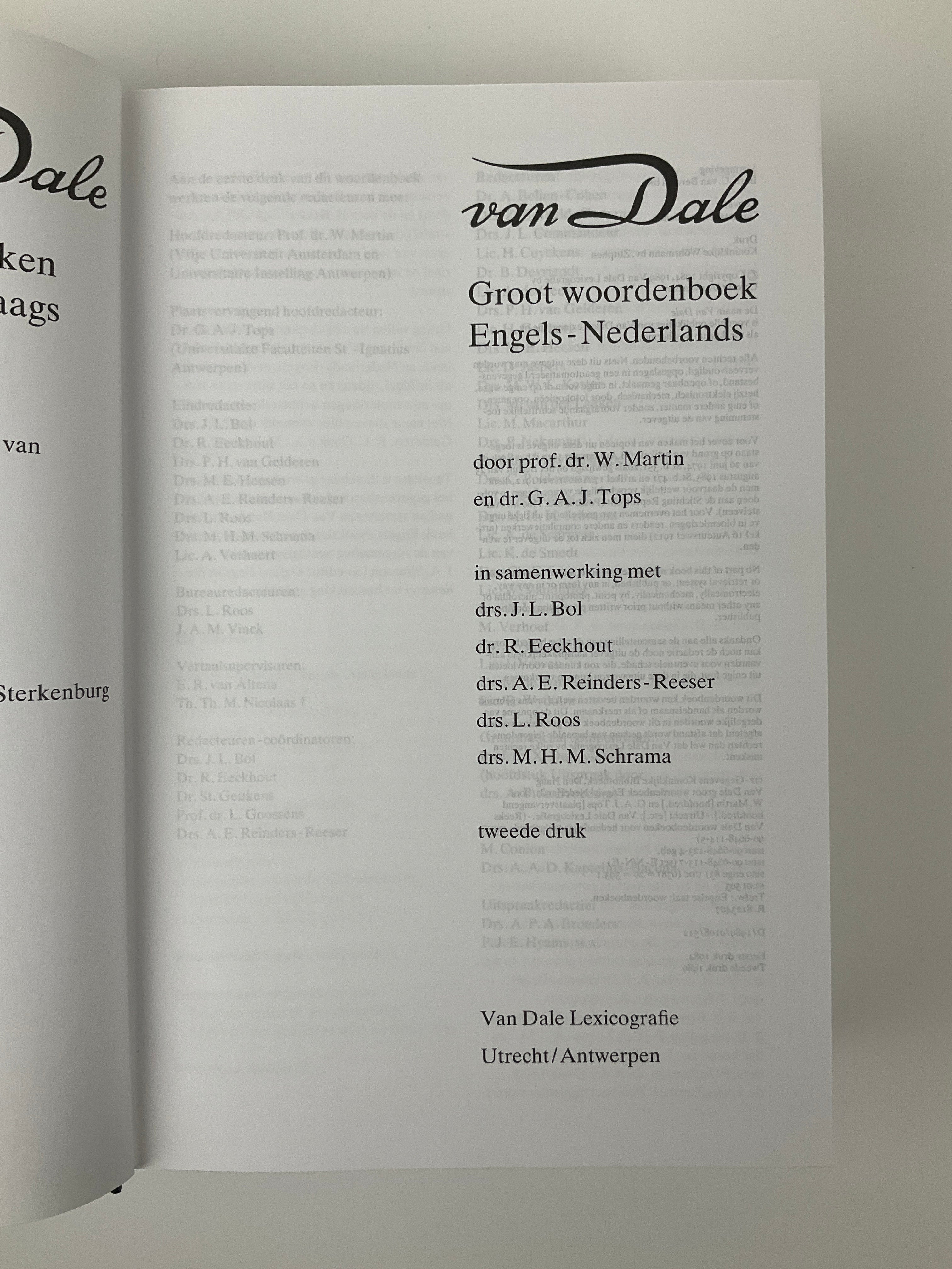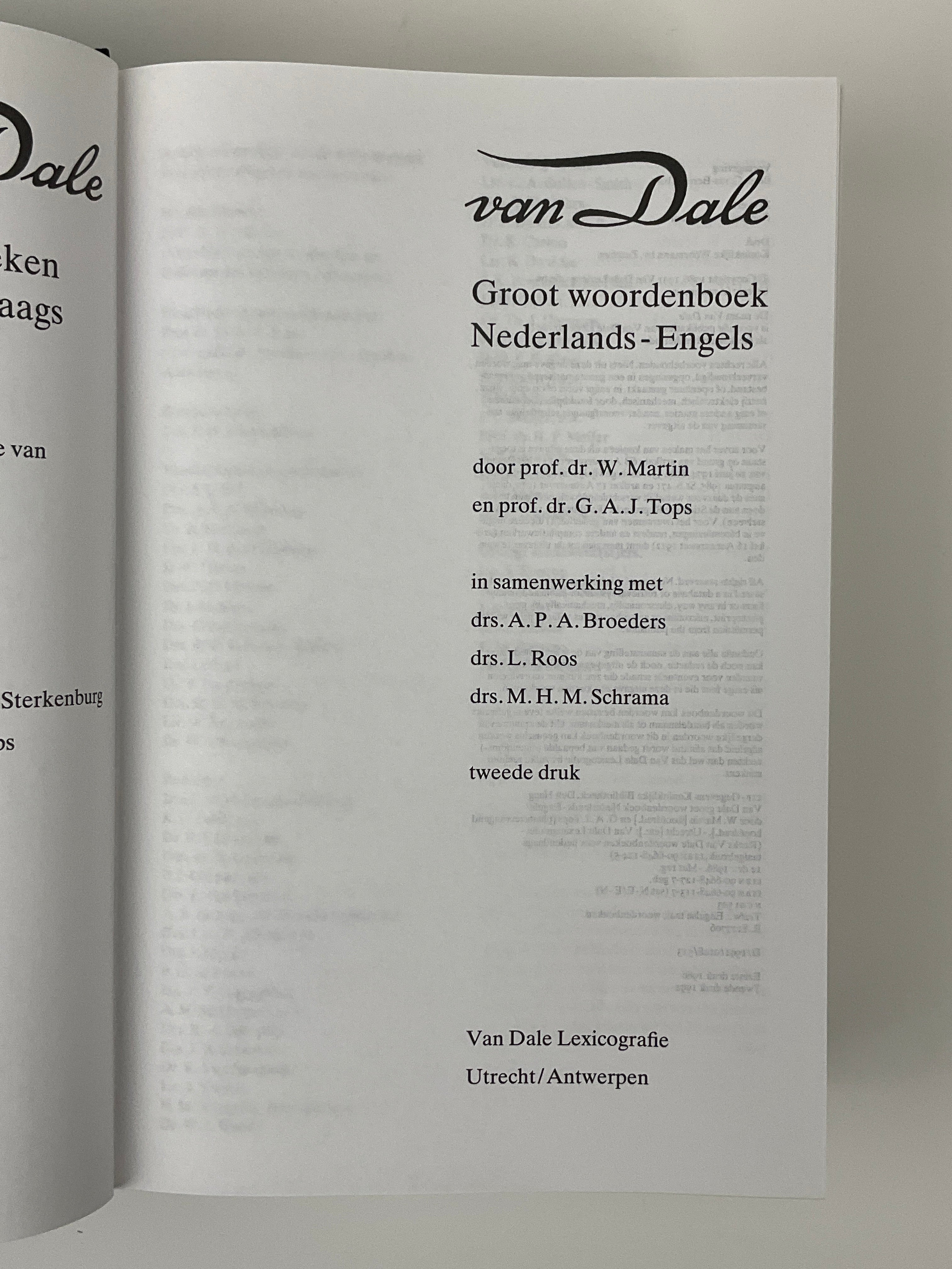 van Dale’s English-to-Dutch dictionary, extensively revised and expanded from the 1984 original. The volume spans 1,654 pages, offering lexical entries designed for translators, educators, and advanced learners. Emphasizes modern English usage with accurate Dutch renderings.