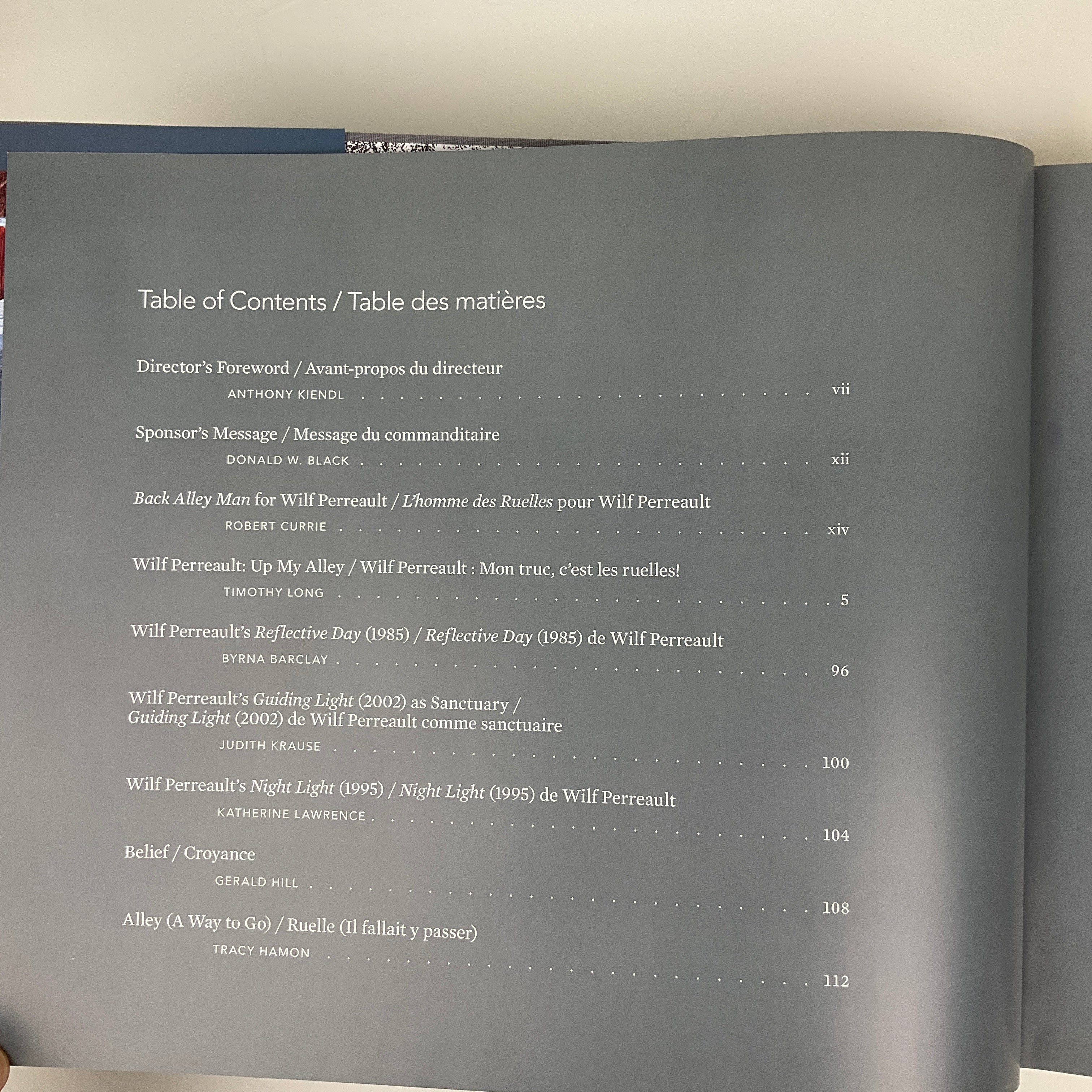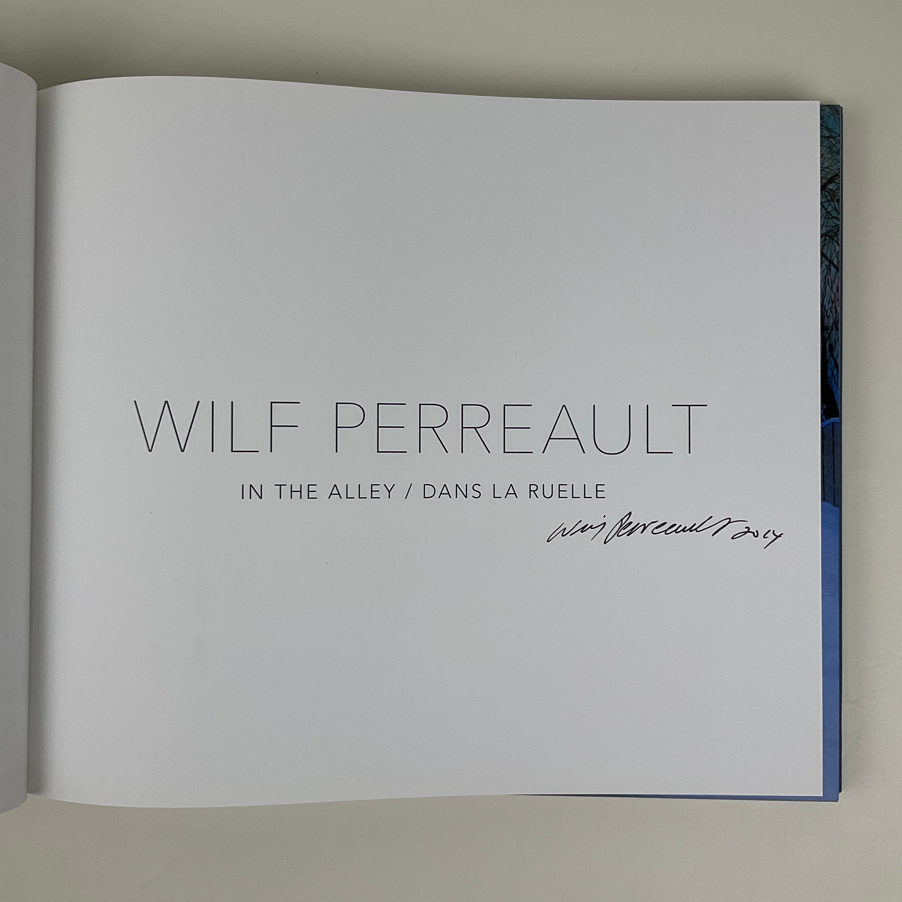 Hardcover with dustjacket, 225 pages, oblong, 12.5x10.5 in, [31x26 cm]. B&W and colour. Bilingual text French/English. Title page signed by Wilf Perreault.