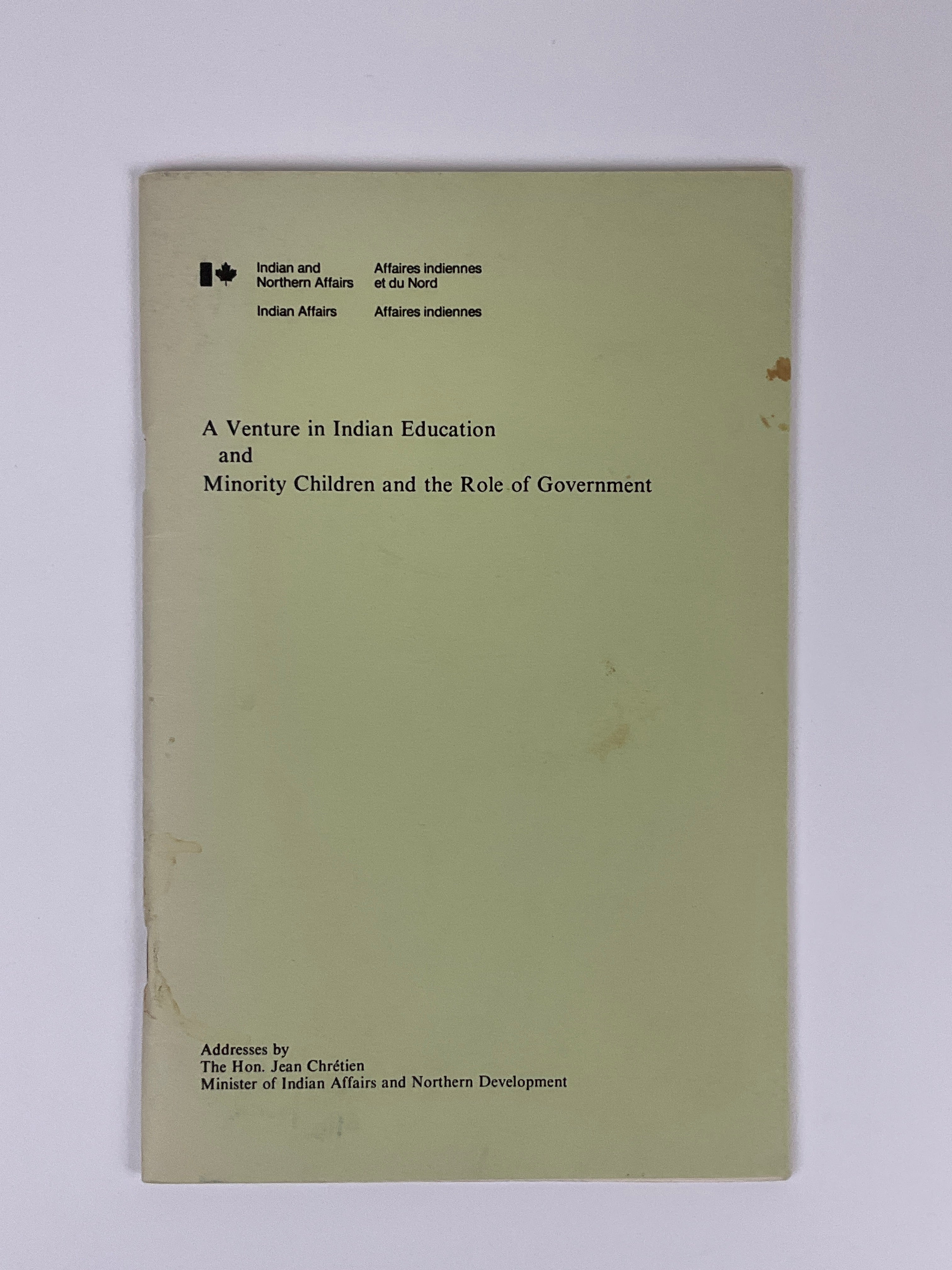 A Venture In Indian Education And Minority Children And The Role Of Government / L'Avenir Et L'Education Des Indiens Les Enfants Minoritaires Et Le Role Du Gouvernment [A Jean Chrétien Speech]