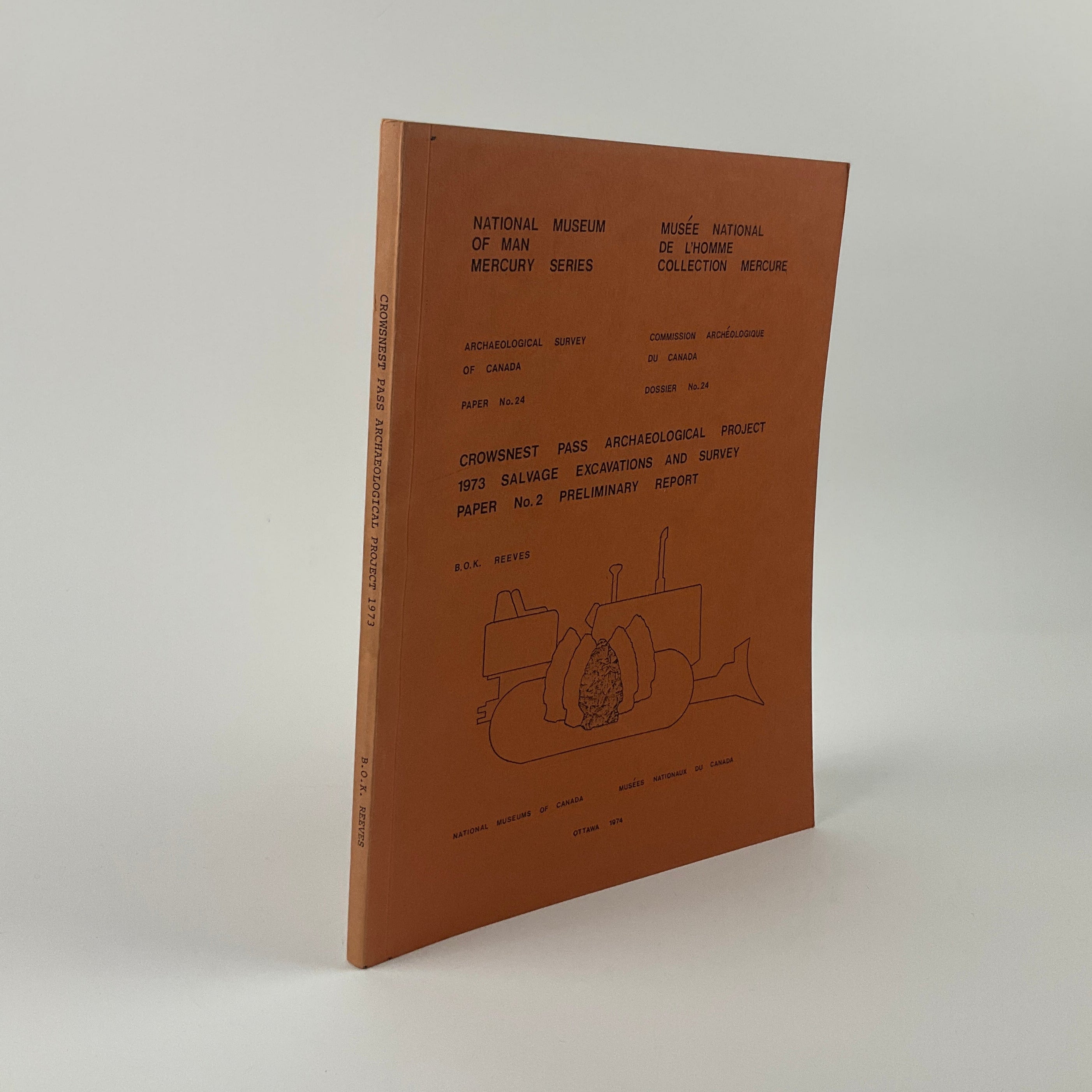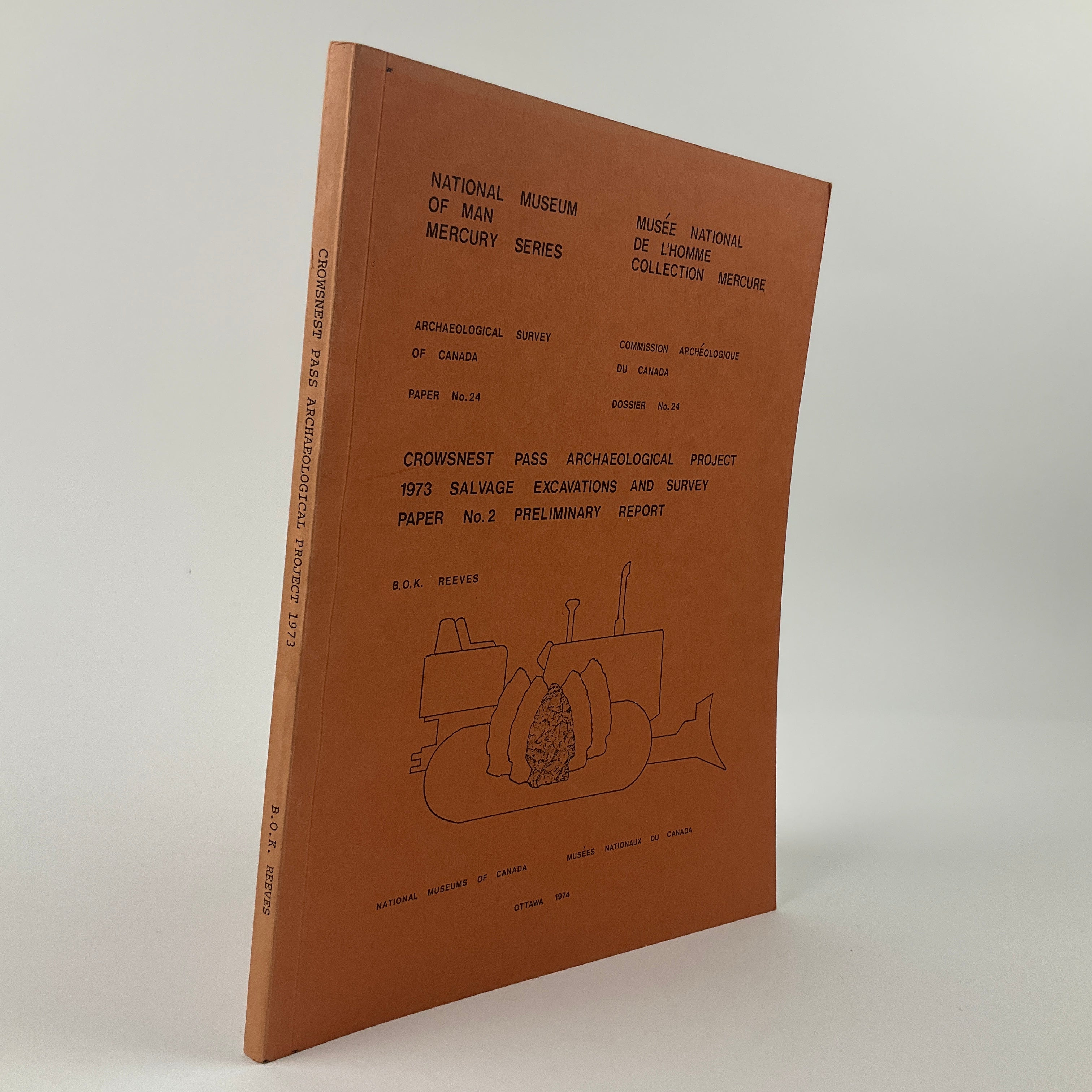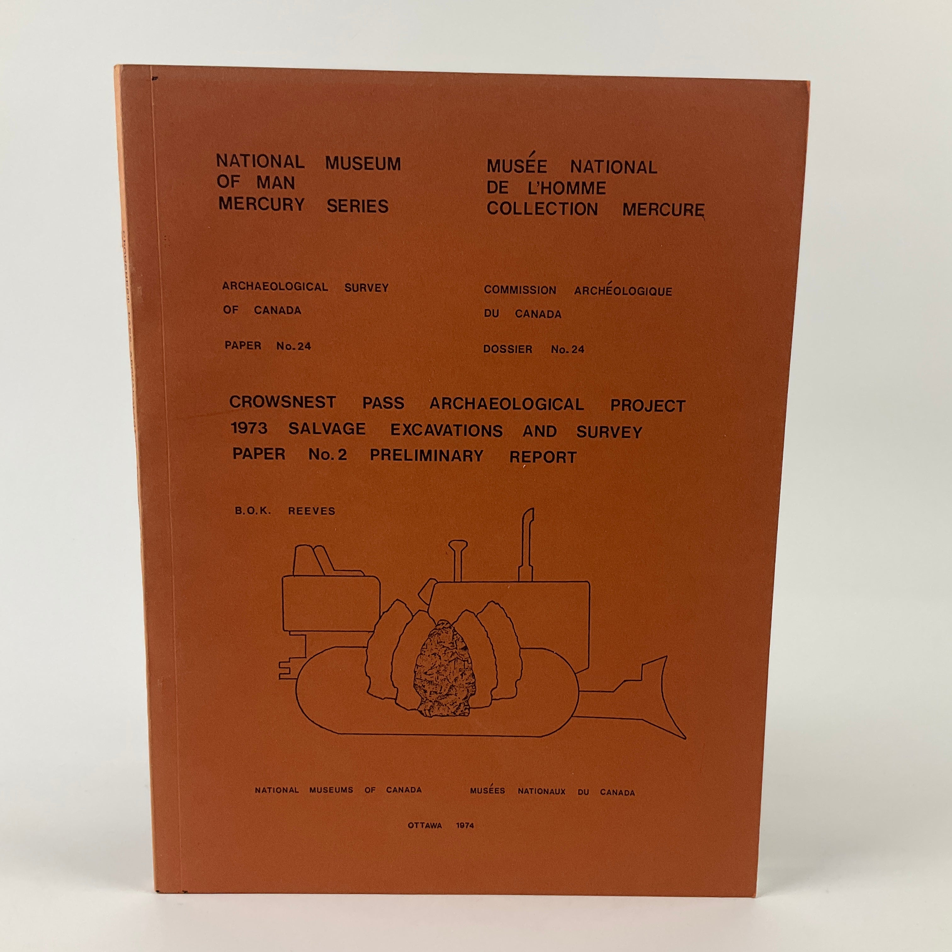 In 1972, Canada’s National Museum of Man (now, Canadian Museum of History) established the Mercury Series to publish scholarship related to the Museum’s divisions. In this volume (Archaeological Survey of Canada Paper No. 24), Brian “Barney” O. K. Reeves (founder of Lifeways of Canada) summarizes the findings of ten archaeological salvage and test site excavations conducted near Crowsnest Pass in southwestern Alberta in 1973. He describes the location, excavation, stratigraphy (geological and cultural layers), and artifacts of each site. Reeves concludes by noting the value of the excavations to archaeology in the region. Includes appendices and figures detailing the sites and the artifacts excavated. Archaeological Survey of Canada Paper No. 19 – also by Reeves – presents the findings of a series of excavations carried out in the same area in 1972.