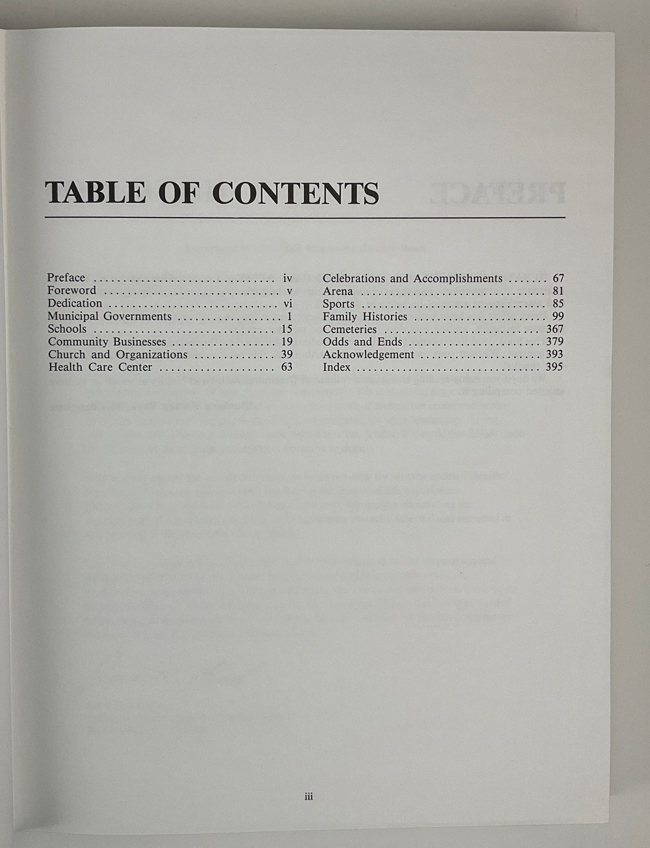 This volume contains a community history of the town of Dinsmore (in Saskatchewan’s Rural Municipality of Milden #286) and its surrounding districts. It opens with topical chapters on local businesses, churches (Dinsmore United), governance, health services, organizations, schools (Dinsmore Composite, Queen Elizabeth), and sports teams. The majority of the volume consists of family histories contributed by area residents. Includes index as well as cemetery listings (for Dinsmore Cemetery, Hillcrest Cemetery, Hillpoint Cemetery, and Holt Cemetery). NOT a reprinting of the 1979 community history book "Dynamic Dinsmore" - despite the similar name, the two books' contents differ.