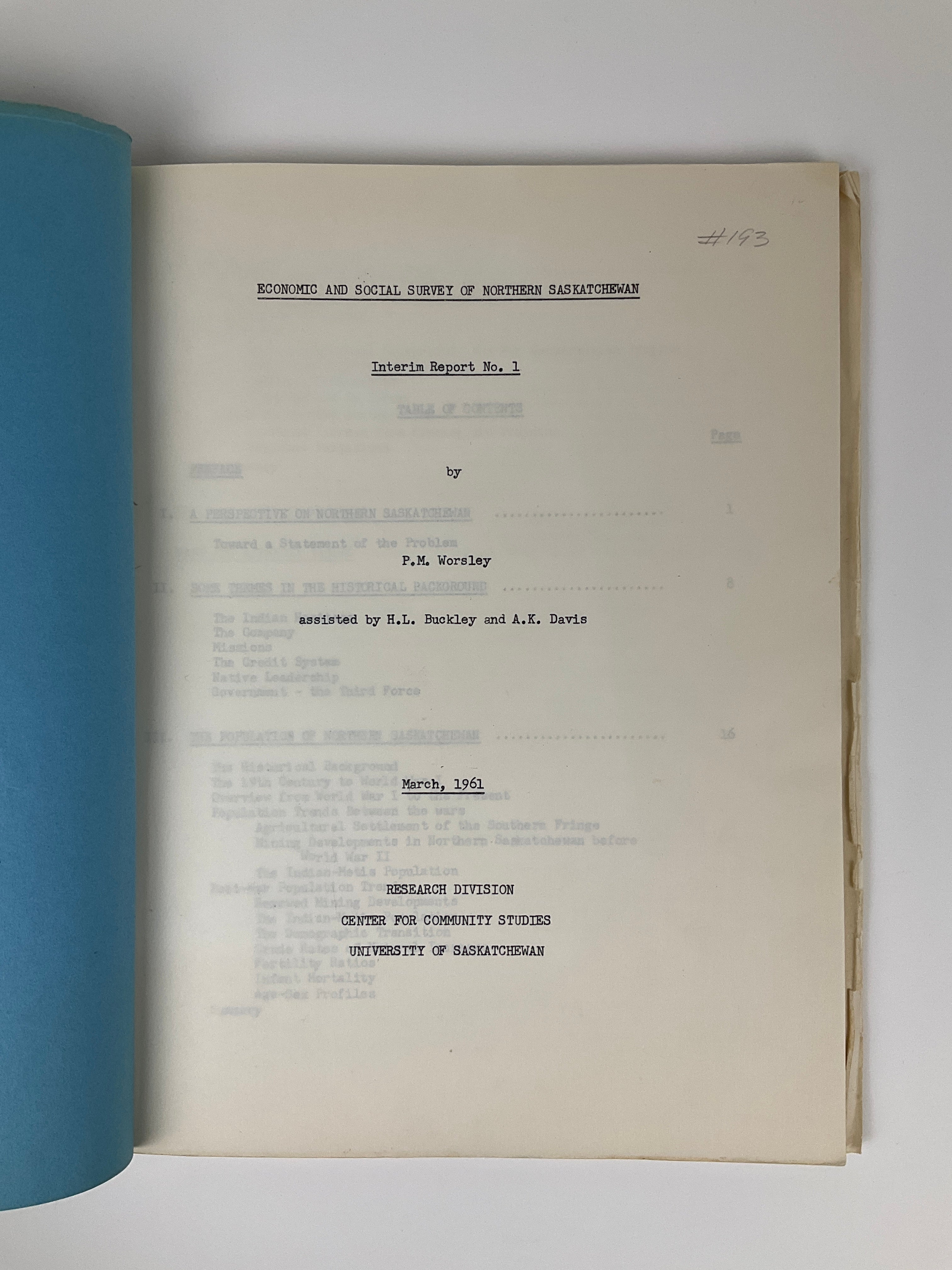 Economic And Social Survey Of Northern Saskatchewan : Interim Report No. 1