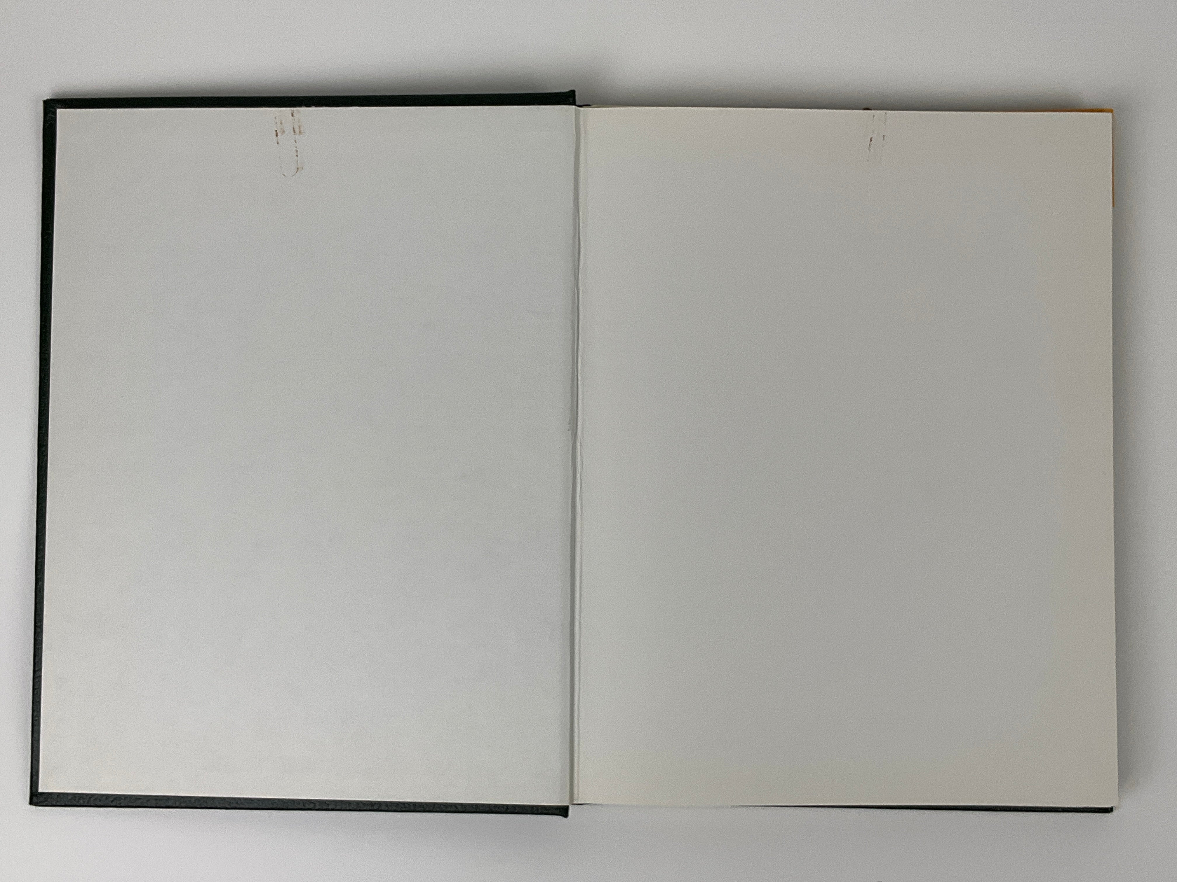 Front board flecked with paint splatter. Front pastedown and facing endpaper show staining from paperclip rust.