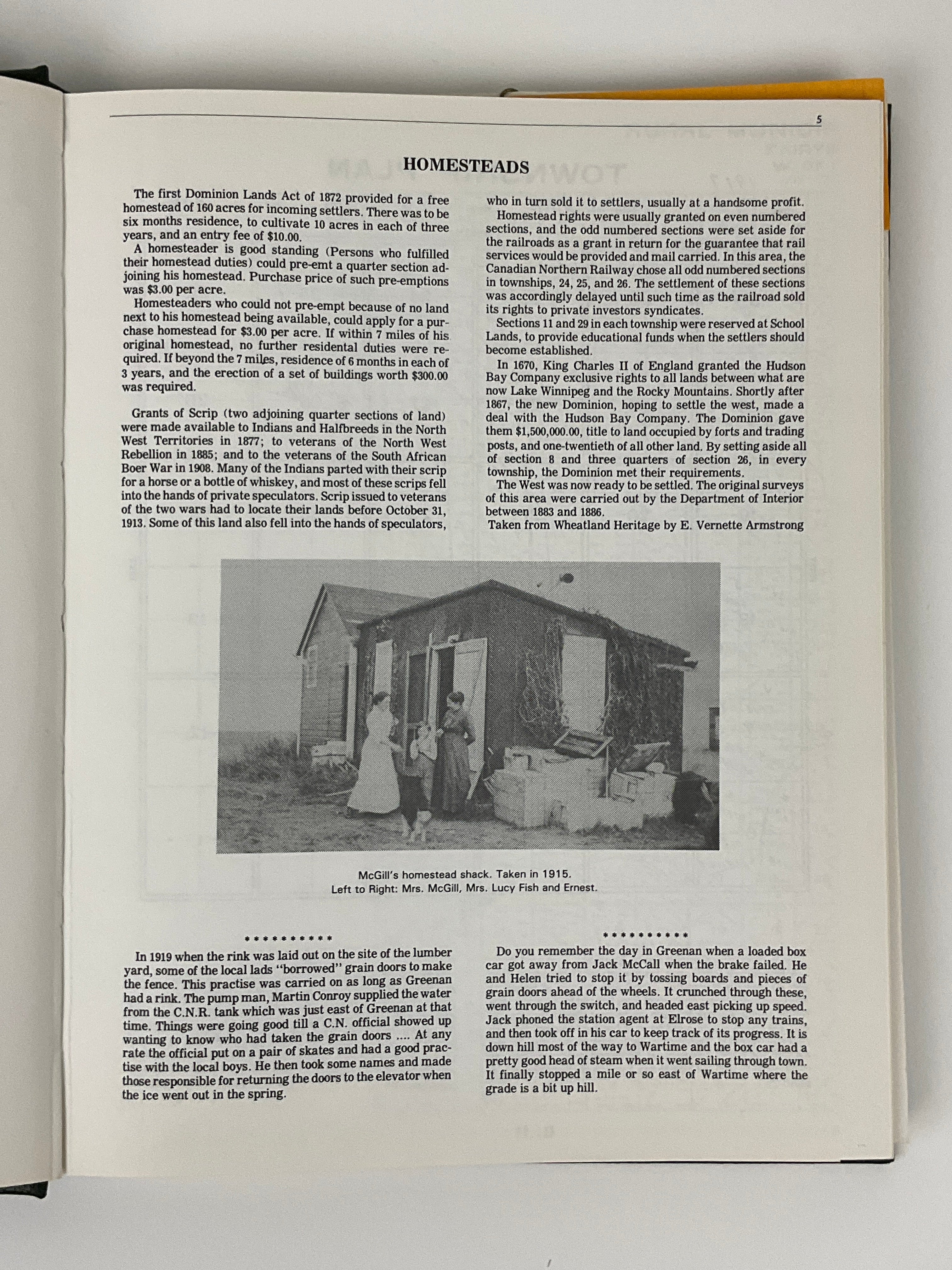 Located in the Elrose - Lacadena region.The history of the Rural Municipality Of Fairview No.258 [1912-1965], the hamlet of Greenan, Chipperfield siding, Bisley, Greenan and Aird schools. Includes Family Histories, Honour Rolls, a list of burials in the Greenan Cemetery and several anecdotal essays.
