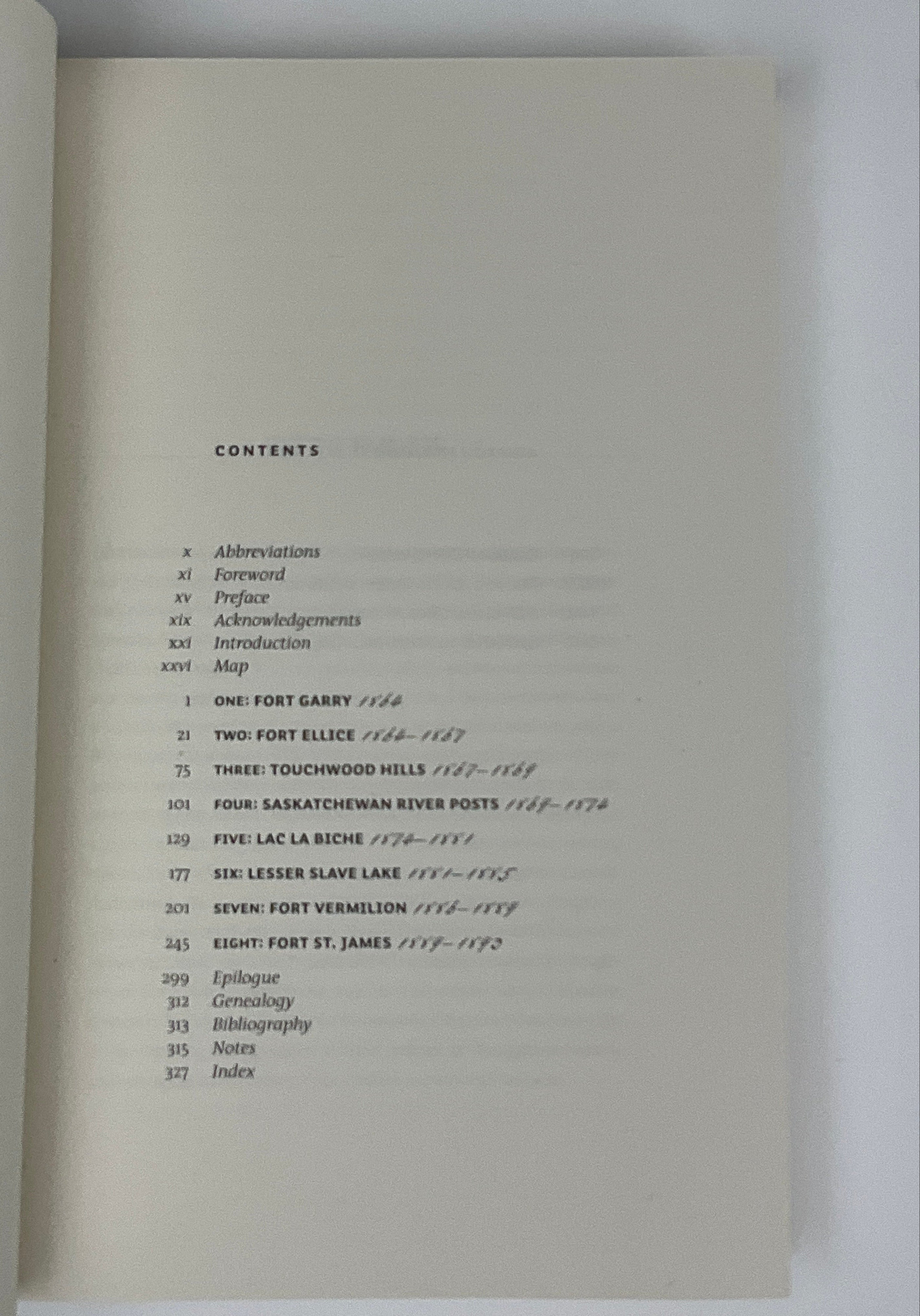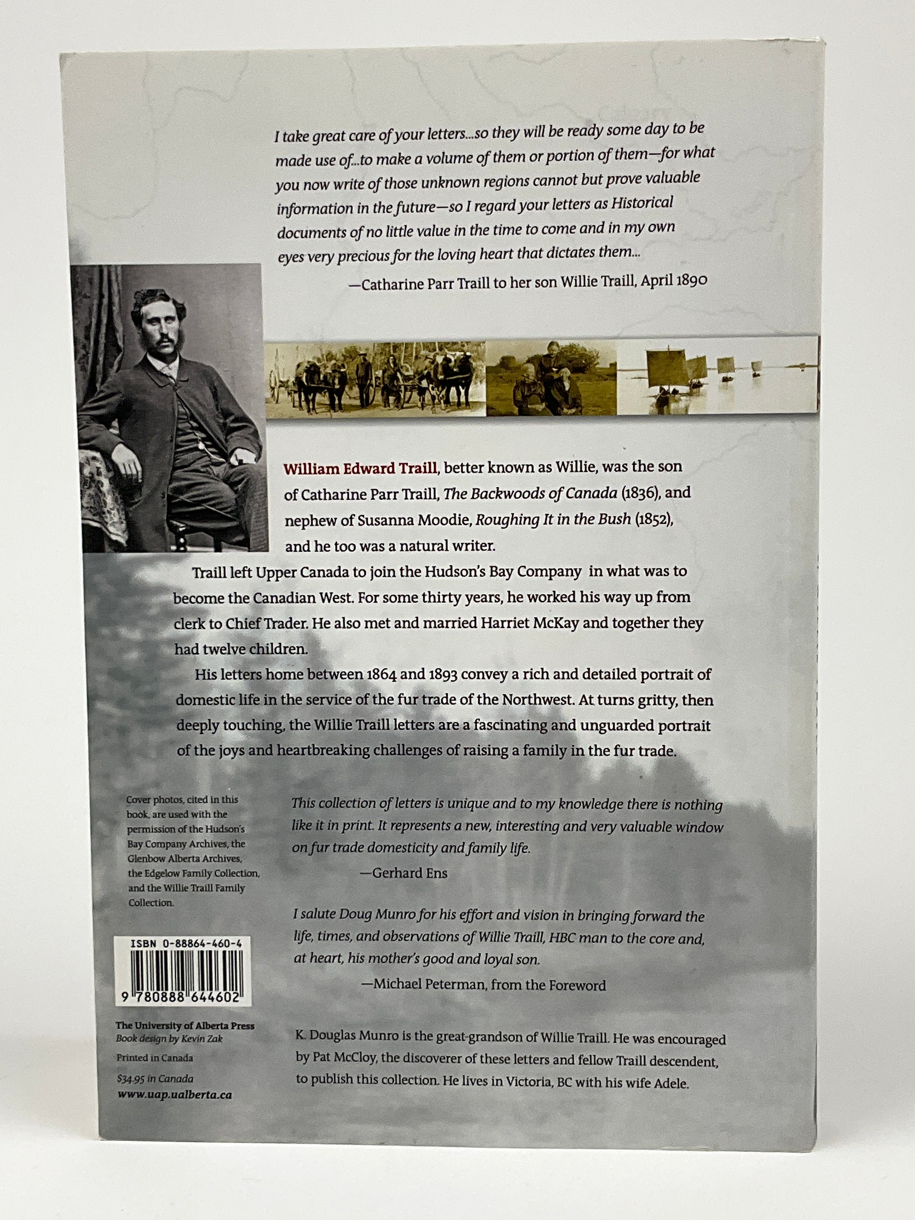 "Willie began his HBC career at Fort Ellice and concluded it twenty-nine years later, at Fort St. James as Chief Trader in charge of the New Caledonia District Of British Columbia. ... His marriage to Harriet McKay, the eldest daughter of Chief Factor William McKay and his wife Mary Mackay (nee Cook), was the seminal event of his life. The McKays were giants in the history of HBC and western development. William and Mary were a Hudson's Bay Company family to the bone. They were without peer in creating a fair, rational, intelligent, workable, and mutually respectful relationship with the Plains Indian tribes. ... Willie's personal letters are the heart and raison d'etre of this book. ... One hundred and twenty-seven letters are presented in his book, in hole or in part. They chronicle his twenty-nine years with the HBC, from his journey west to his final years at Fort St. James. " From the Introduction.