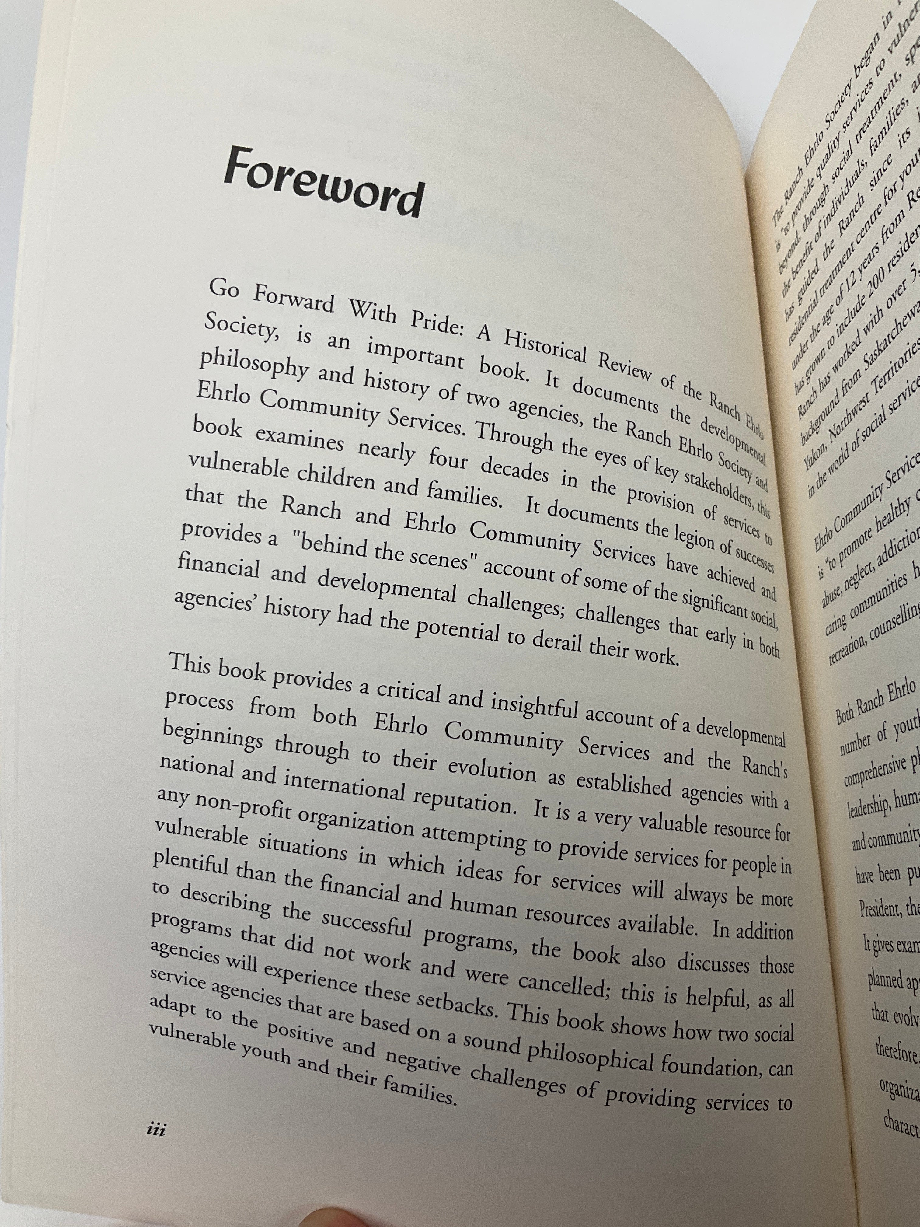 An institutional history of the Ranch Ehrlo Society and the formation of Ehrlo Community Services, tracing nearly four decades of service to vulnerable children and families in Saskatchewan. The volume details the organization’s founding principles, developmental philosophy, and evolution, with particular focus on its mission to foster healthy, abuse-free communities. Documents the Society’s programming in housing, recreation, counselling, and vocational training, while also addressing the challenges encountered in delivering services.