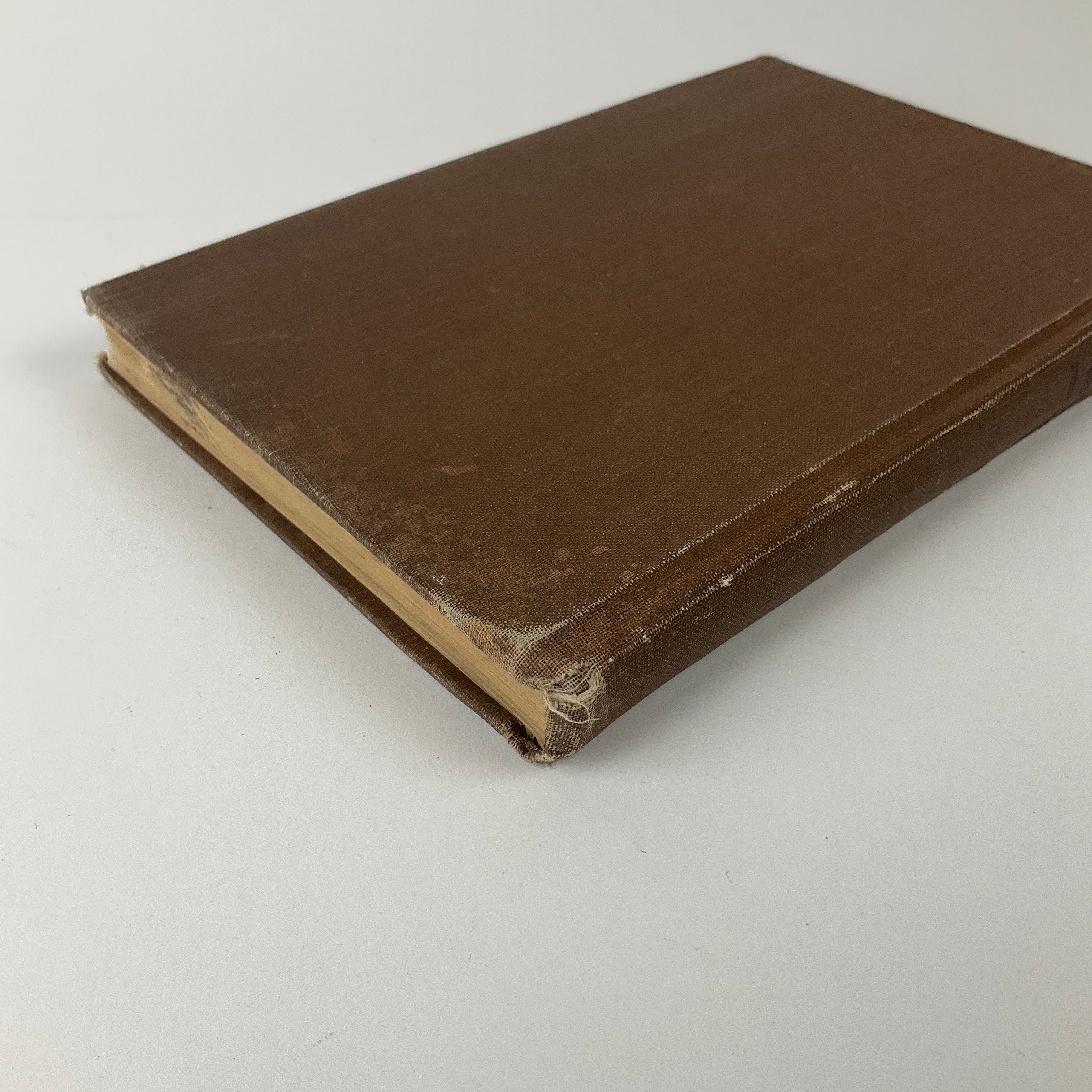 No dust jacket. Covers stained and worn, corners rubbed through to boards. Spine bumped at head and heel, with small closed tear at heel. Edges tanned, bottom edge soiled. 1.5 cm (.5 in) closed tears to front endpapers, inscription by previous owner faint on front pastedown. Endpapers lightly soiled, pages age-tanned with very minor loss to bottom fore edge corners, many pages bear tidelines.