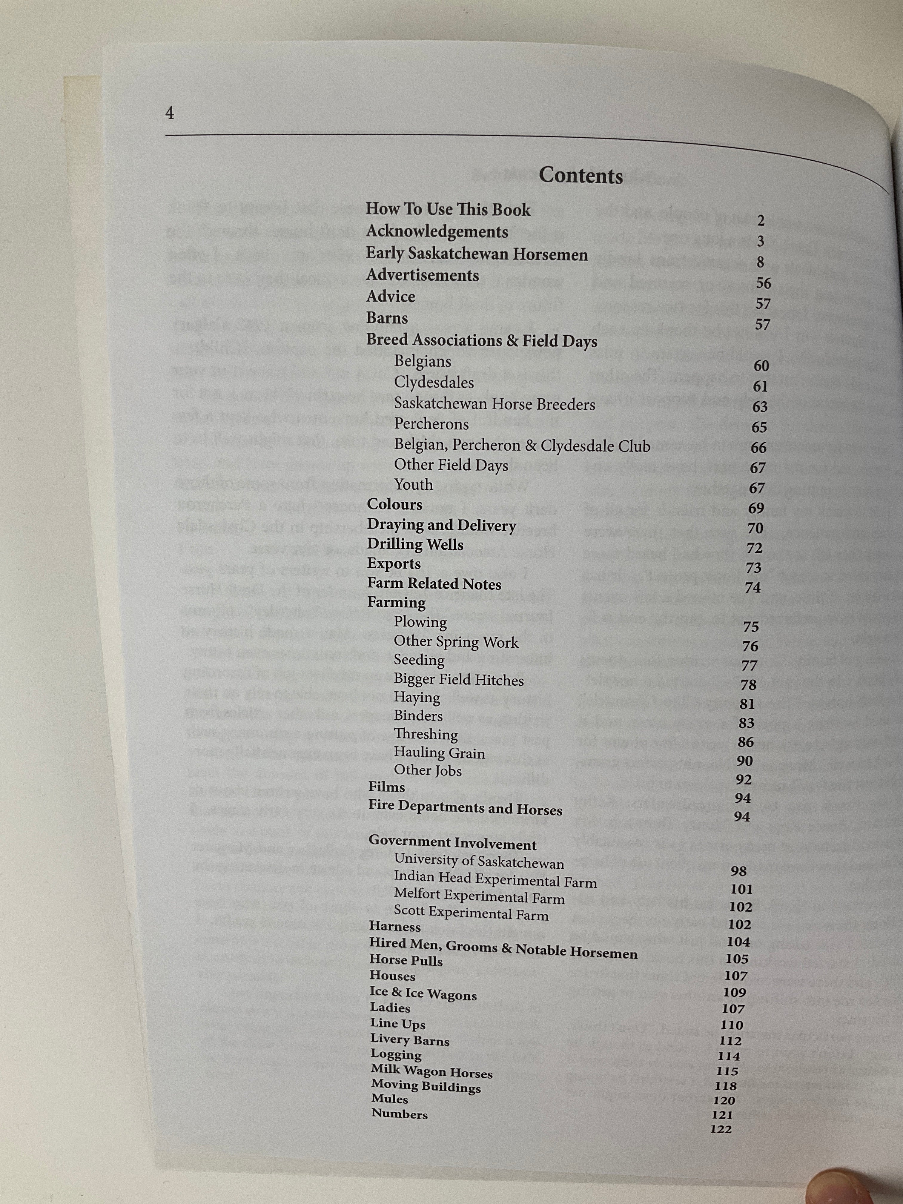 Merlin D. Ford has authored two works on Saskatchewan draft horse history. In this first book, Ford showcases a sizeable photograph collection organized around themes relating to draft horse breeding, show/sale, and use. He begins with brief biographies of prominent horsemen, followed by a historical overview of breed associations. Topical sections depict some aspect of breeding/raising horses (for example, "Barns") or using horses (for instance, "Logging"), and are comprised of historical commentaries accompanied by numerous photographs. Ford includes anecdotes of early 20th century farming life and short explanations of grading/registering breeds to contextualize his topics. Includes index.