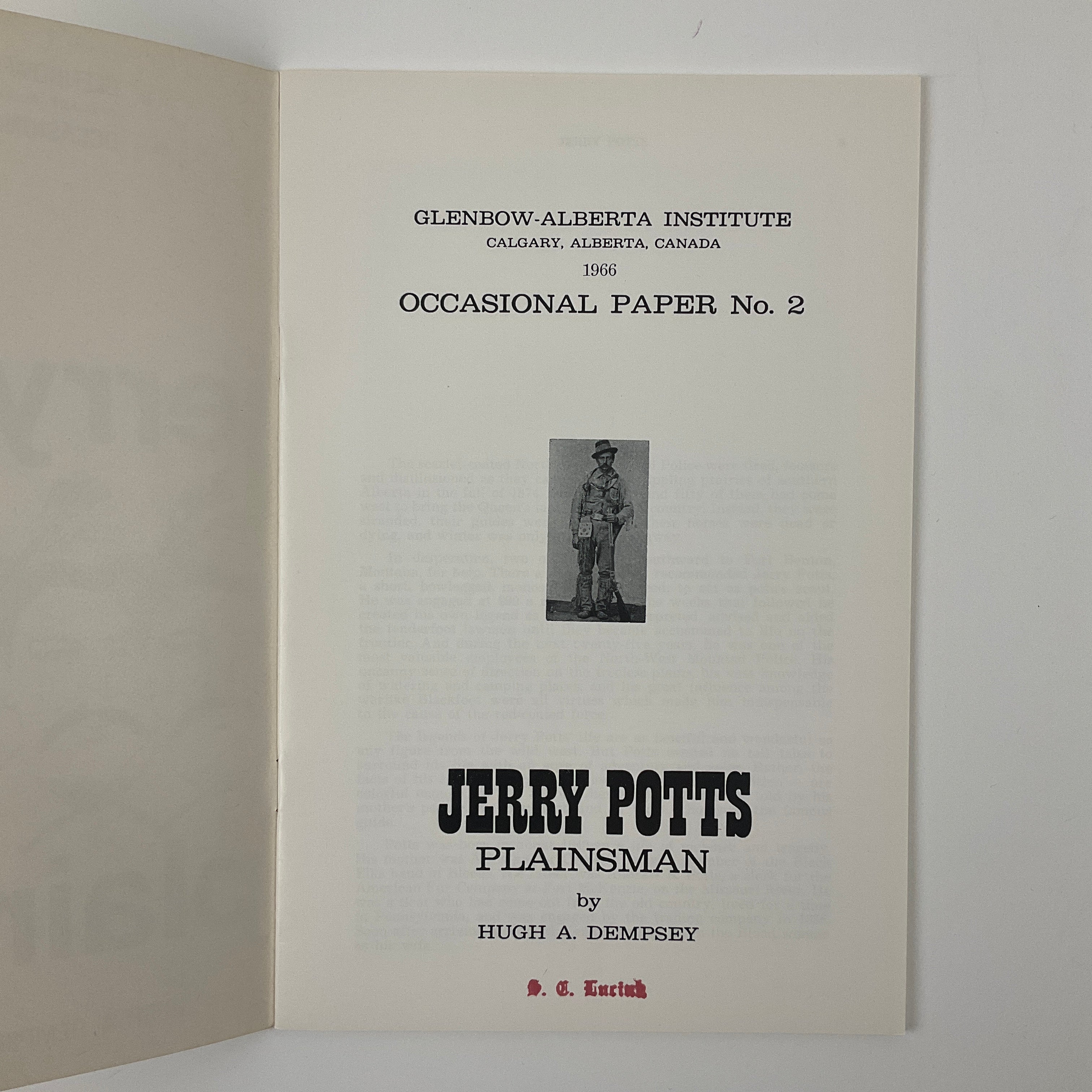 Founded in 1966, the Glenbow-Alberta Institute (now Glenbow Museum) specializes in western Canadian history. The first four volumes published in the Glenbow’s Occasional Paper series were written by Hugh A. Dempsey, archivist – later, curator and director – at the Glenbow. This volume (No. 2) focusses on Jerry Potts (1840-1896), a North-West Mounted Police scout. Dempsey recounts Potts’ life amongst First Nations groups and European traders, then turns to Potts’ engagements with the R.C.M.P. in 1874 and beyond. The booklet stresses Potts’ familiarity and kinship with Indigenous groups as well as his capabilities as a guide as particularly valuable to his R.C.M.P. employers. Throughout, Dempsey selects anecdotes that depict exciting, humorous, and violent events in Potts’ life in the North-West.