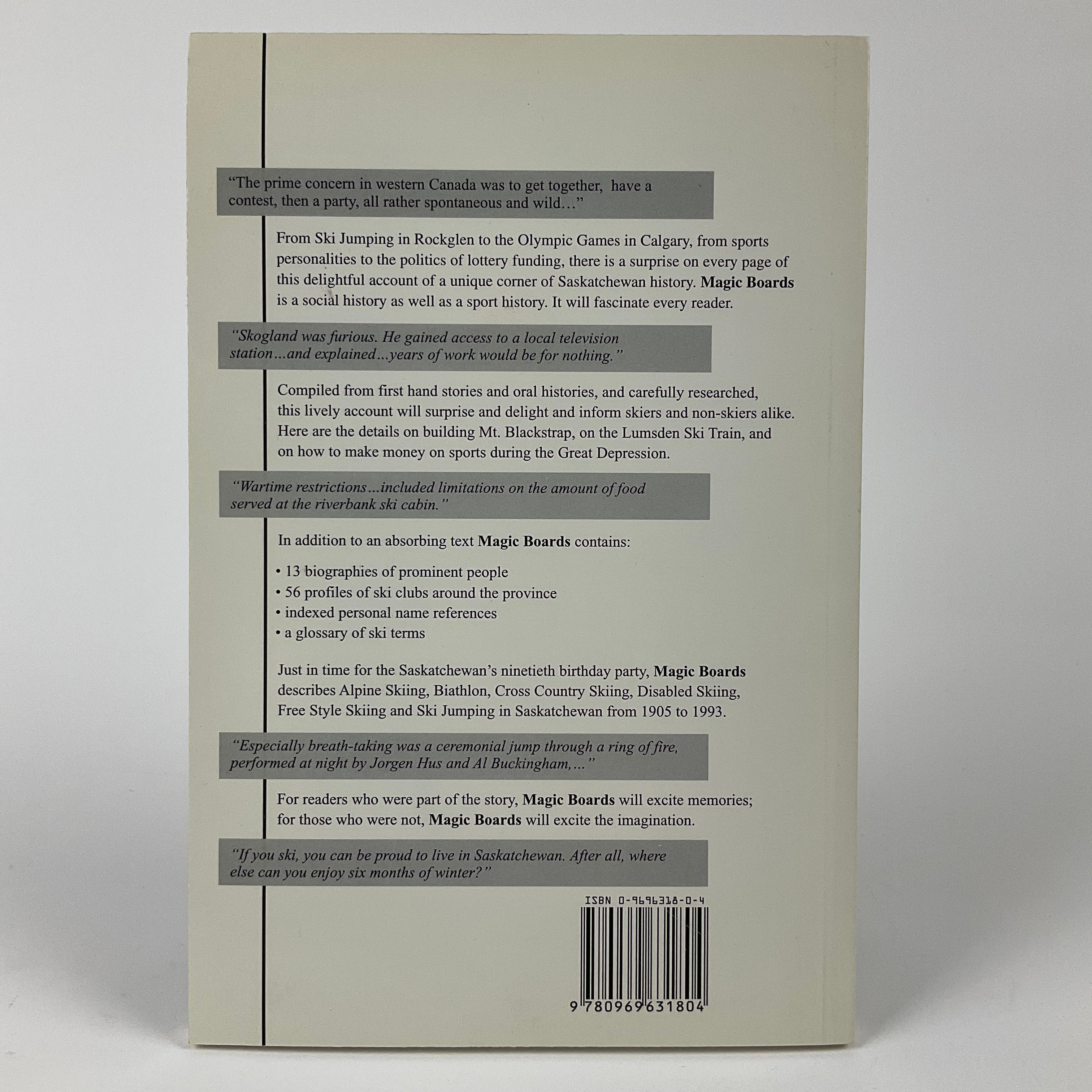 Although Douglas R. Elasser appears as the sole author, the book contains research conducted by former Saskatchewan Ski Association president Dennis Adkin as well as Seonaid MacPherson. Together, they produce a history of cross-country skiing, downhill skiing, and ski-jumping in Saskatchewan from the early 1900s until 1991-1992. The volume discusses instruction, competition, organizations/clubs, and key figures from the province's ski history. Throughout, the book connects global ski trends, national events/politics, and local sport. Includes endnotes, glossary, and index.