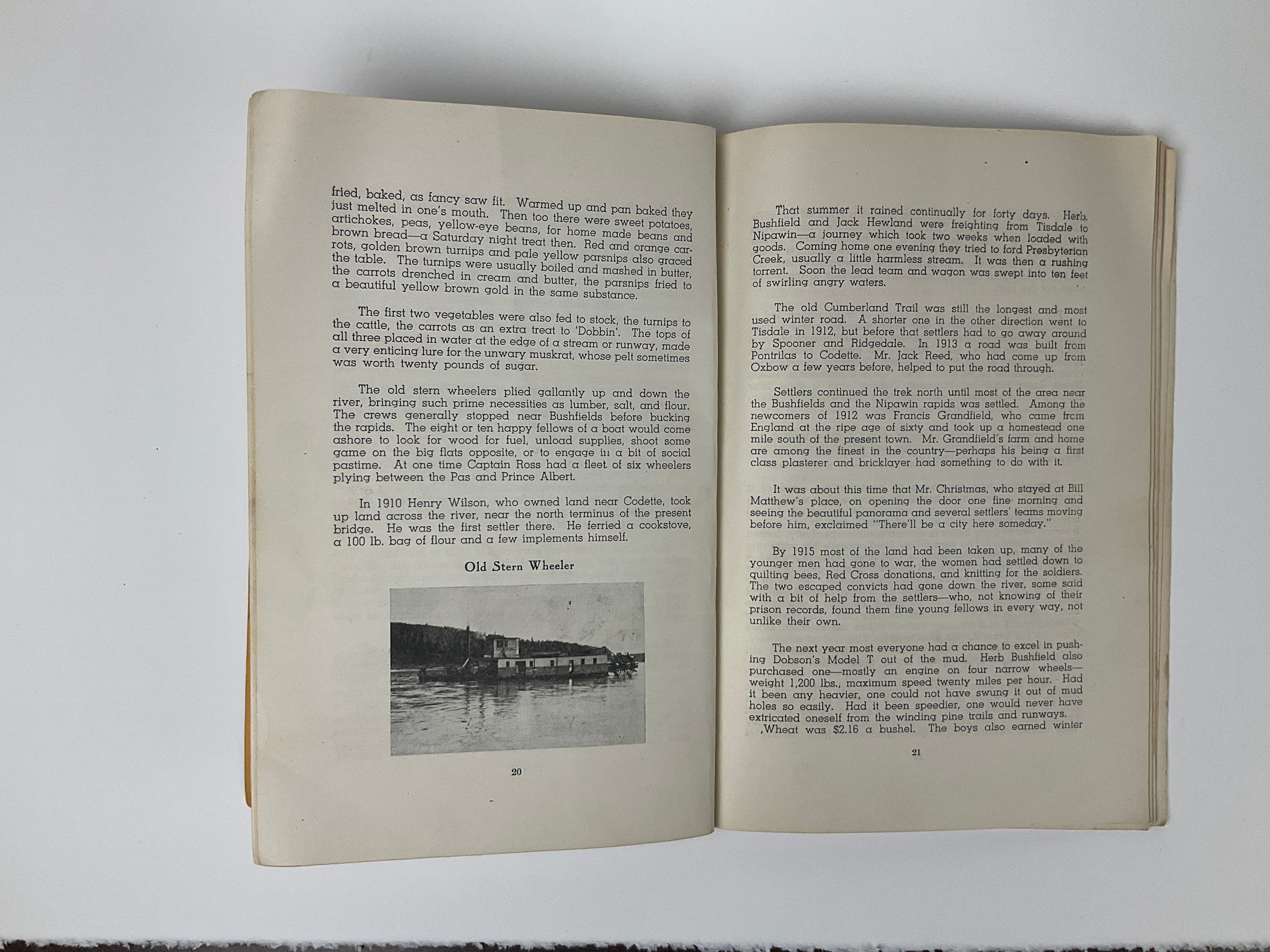 Published in 1946, this is a 51-page booklet outlining the historical development and growth of Nipawin, a community located in east-central Saskatchewan.
