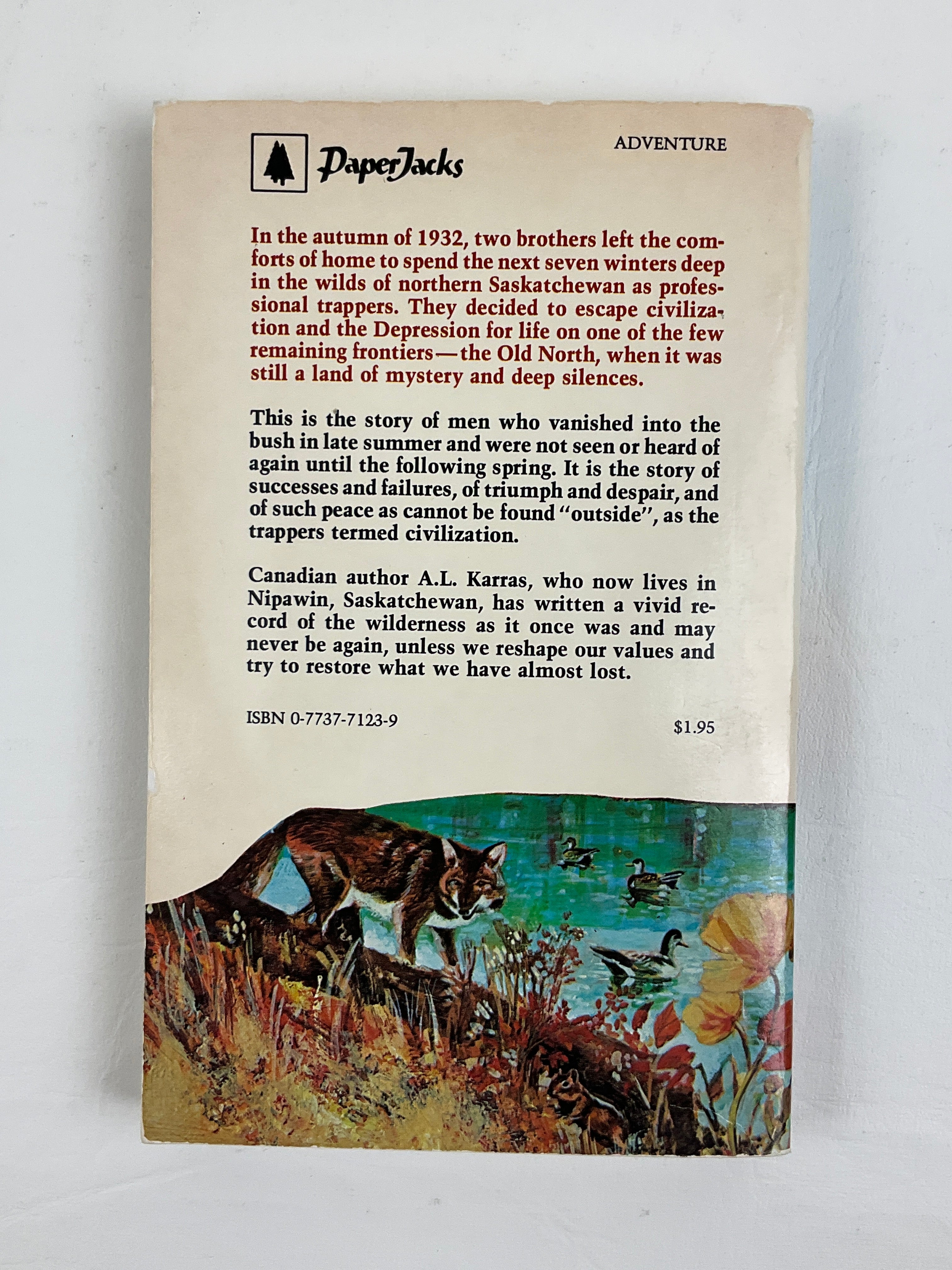 In 1932, Arthur L. Karras (later a school administrator in Indian Head, Saskatchewan) accompanied his brother and a friend to northern Saskatchewan to escape the Great Depression. For the next seven years Karras lived in the wilderness, returning to larger centres occasionally to trade and obtain supplies. In this volume he recalls his years of trapping, fishing, building cabins, paddling on lakes and rivers, and driving dogsleds in northern Saskatchewan as an alternative to urban unemployment. Karras’ stories are punctuated by colorful characters – from HBC traders to trappers battling cabin fever – and balance moments of excitement and danger against descriptions of day-to-day life as a trapper.