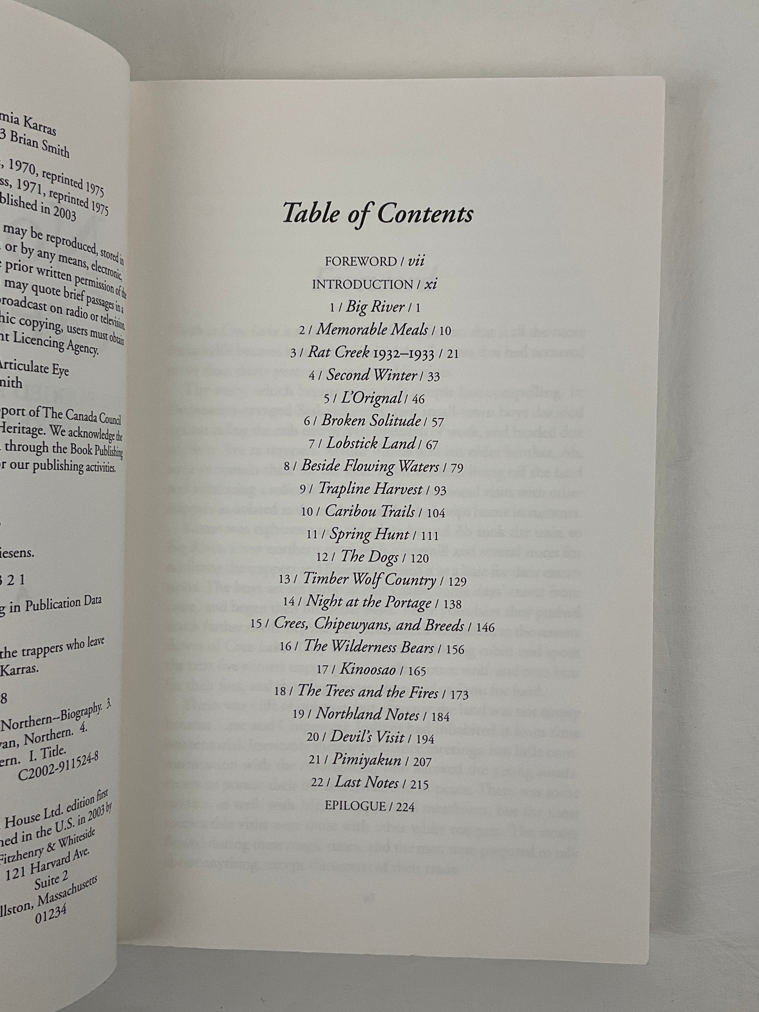 In 1932, Arthur L. Karras (later a school administrator in Indian Head, Saskatchewan) accompanied his brother and a friend to northern Saskatchewan to escape the Great Depression. For the next seven years Karras lived in the wilderness, returning to larger centres occasionally to trade and obtain supplies. In this volume he recalls his years of trapping, fishing, building cabins, paddling on lakes and rivers, and driving dogsleds in northern Saskatchewan as an alternative to urban unemployment. Karras’ stories are punctuated by colorful characters – from HBC traders to trappers battling cabin fever – and balance moments of excitement and danger against descriptions of day-to-day life as a trapper.