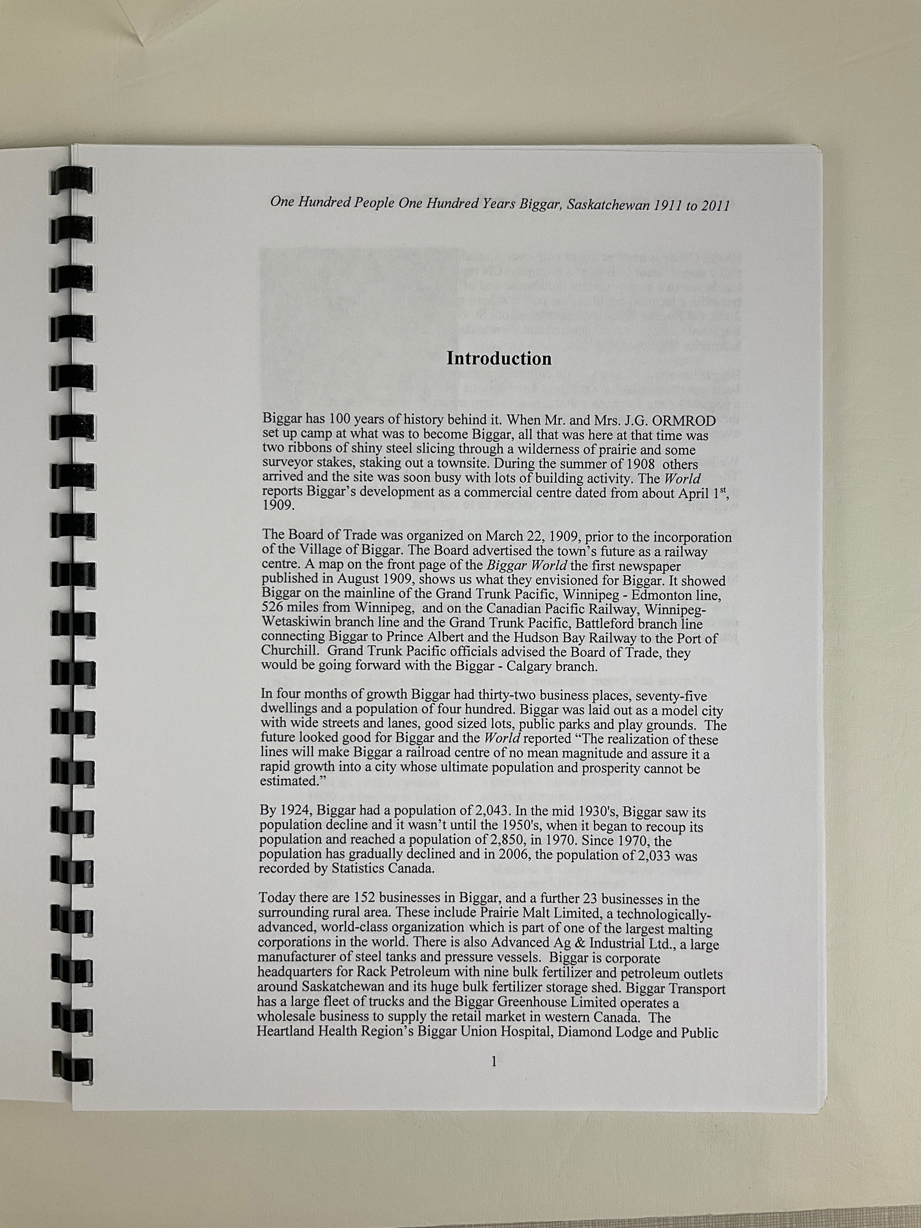 One Hundred People One Hundred Years : Biggar, Saskatchewan 1911-2011