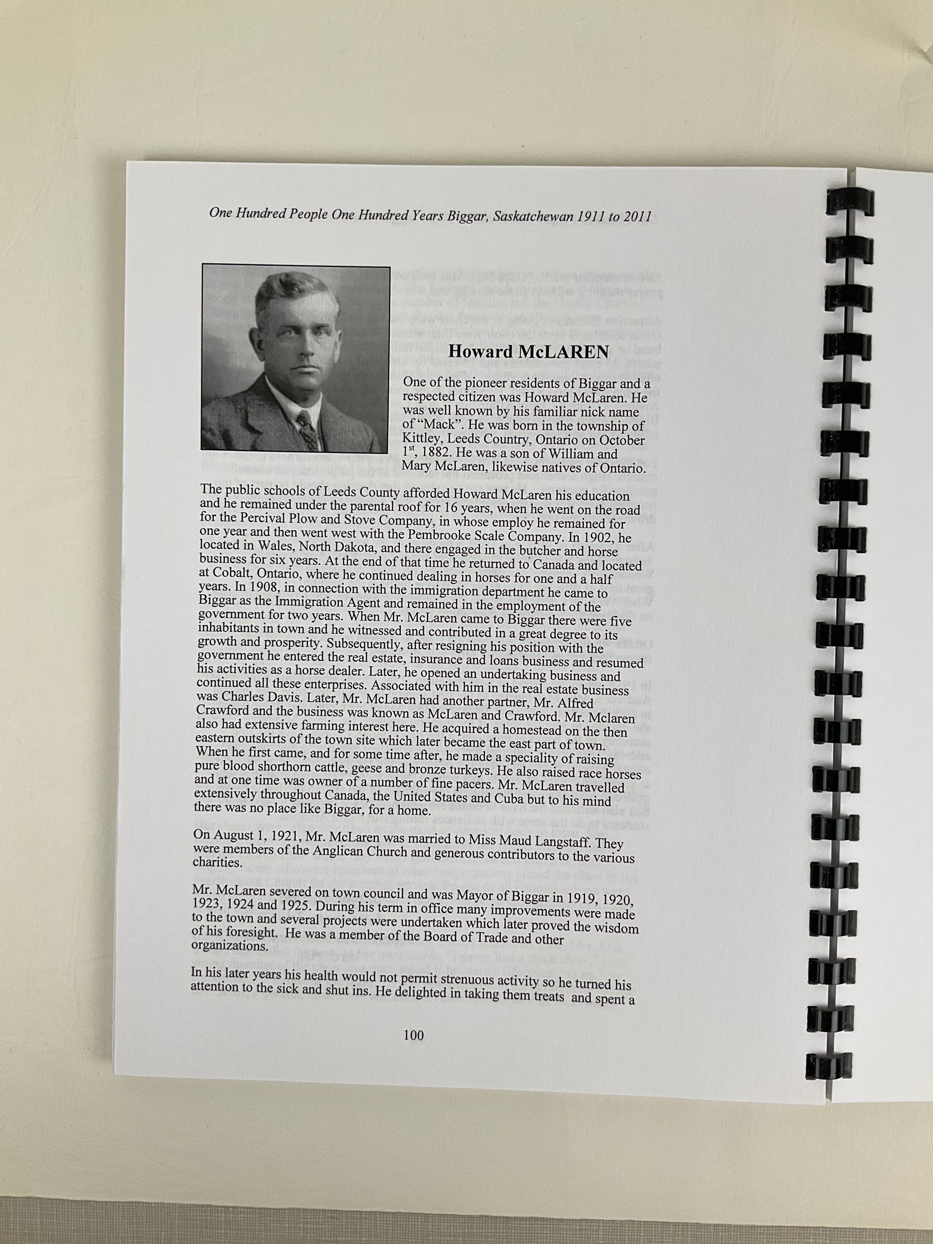 One Hundred People One Hundred Years commemorates the 100th anniversary of the town of Biggar, Saskatchewan, through the stories of 100 individuals who shaped its history. Compiled by Rae Chamberlain and Shirley Williams for the Centennial in 2011, the book offers a rich tapestry of personal narratives, photographs, and historical reflections that together capture the spirit and resilience of a prairie community. From pioneers and farmers to business owners and community leaders, these profiles celebrate the lives and contributions of those who helped build and sustain Biggar over the past century.