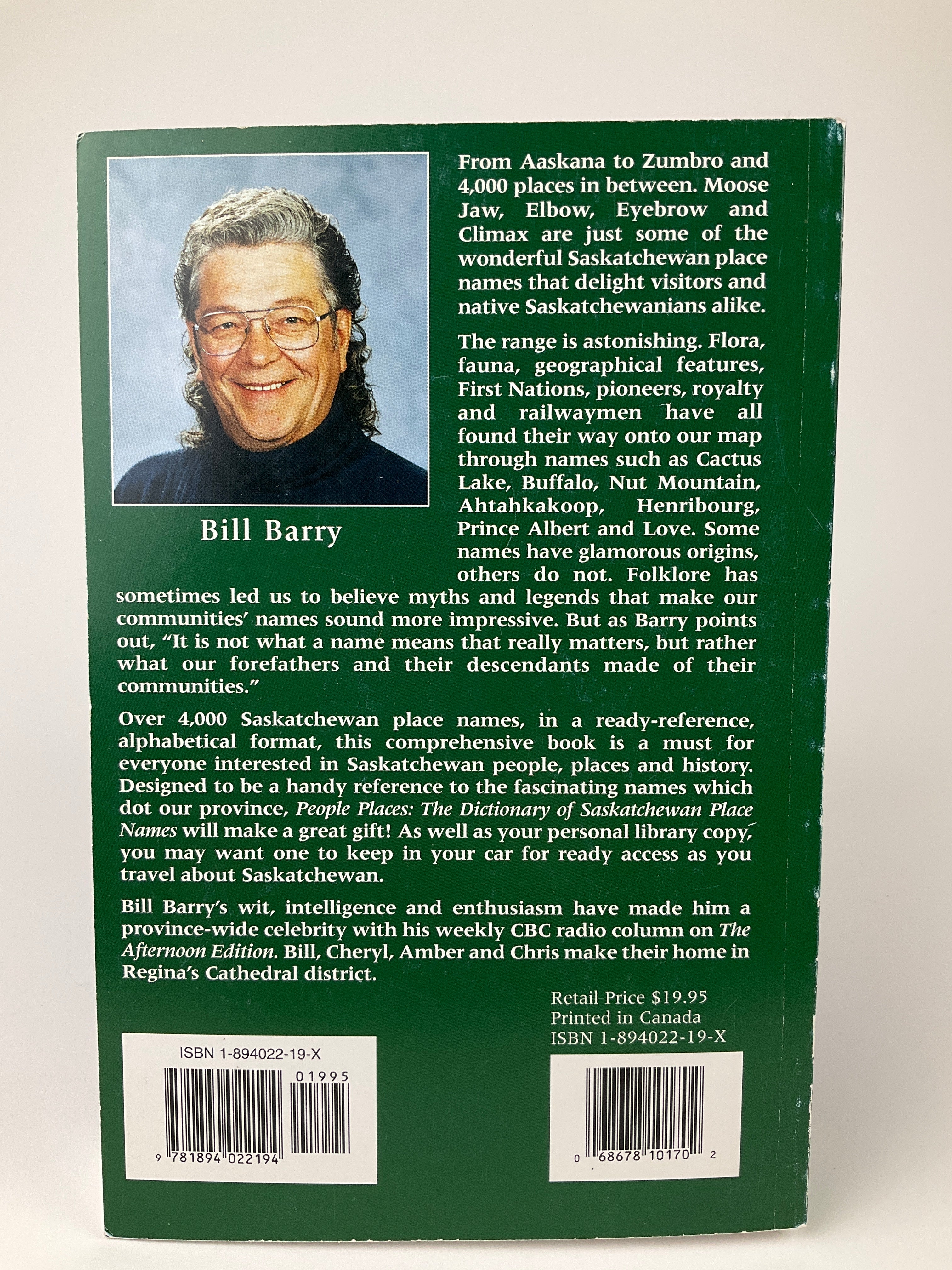 Bill Barry (1942-2015) was a teacher, author, and historian who created a large database covering the history of Saskatchewan place names. In this reference volume, Barry provides information from his database for more than 4000 place names in the province. Each entry includes a land description and approximate geographic location, municipality number, indication of type (i.e. town, resort, rail siding, etc.), explanation of the name’s origin if known, and railway indicator if applicable. The volume’s entries include present as well as past place names (but no names of topographical features) and are cross-referenced where necessary. Includes a listing of Saskatchewan post offices.