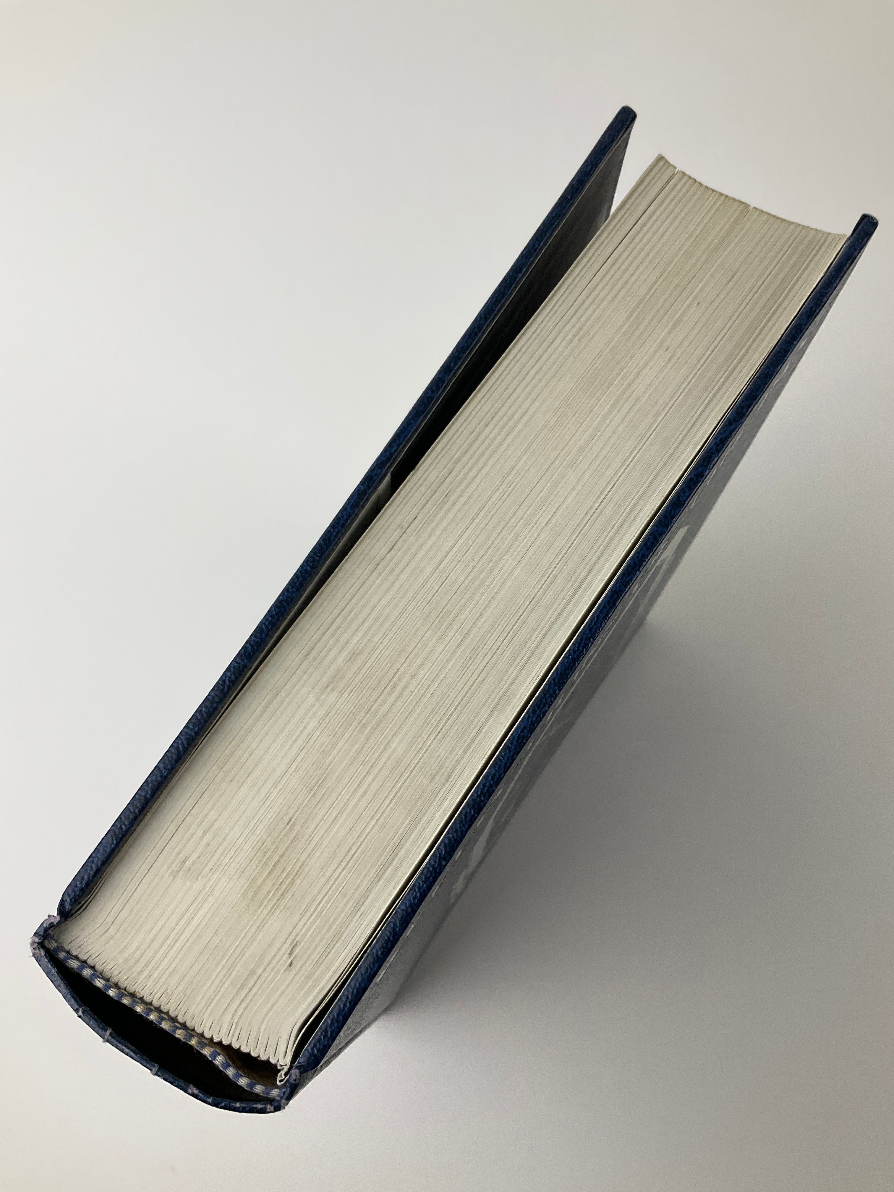 Cover corners worn, front cover decoration rubbed with shallow divot, back cover chipped at joint. Spine lightly scuffed and beginning to crease, head and heel worn with chips starting. Edges soiled. Headband beginning to separate from gatherings. Gift inscription by previous owner on front pastedown. Hinge tender at p.iii, p.iii marked at bottom in ink.