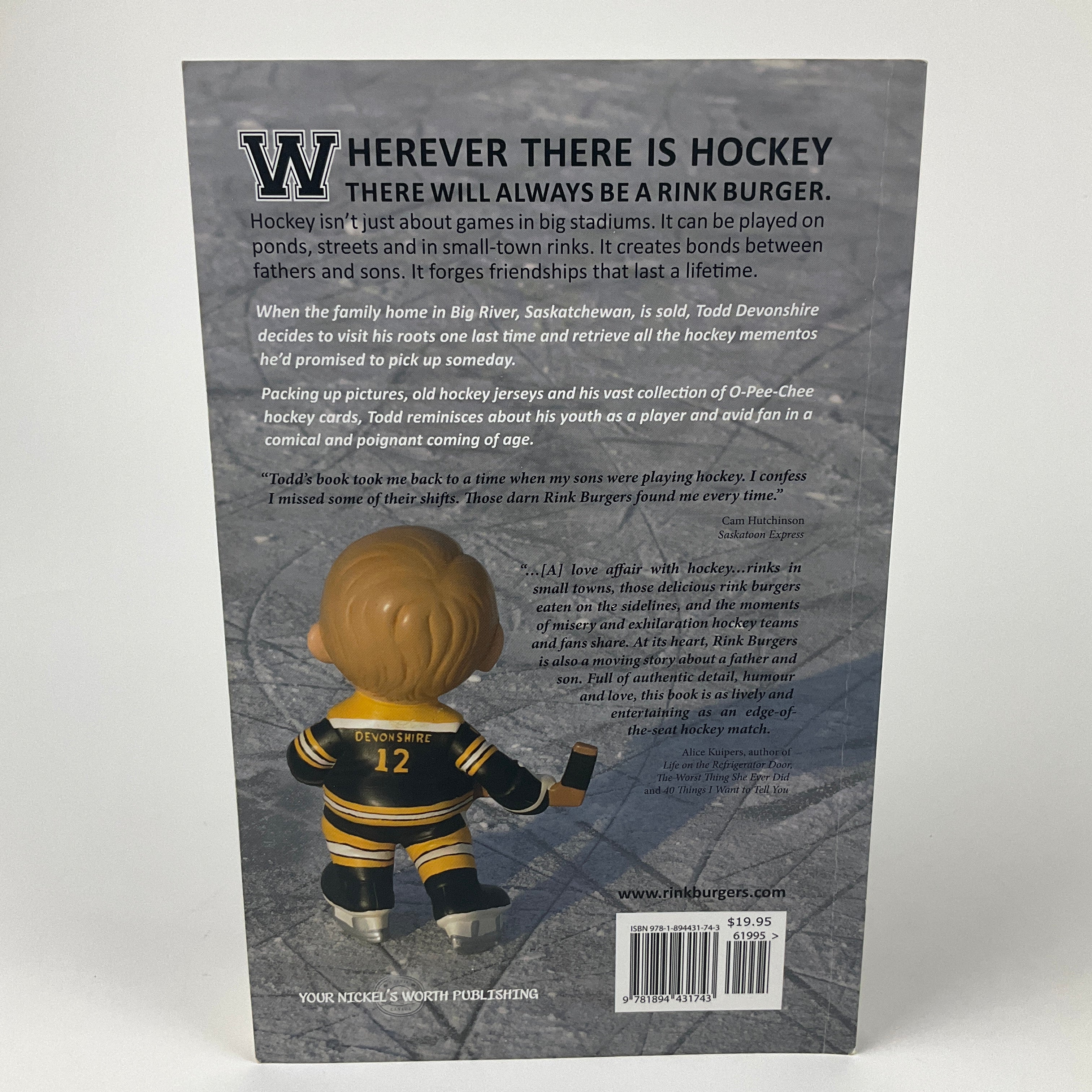 In this hockey memoir, Saskatchewan author and playwright Todd Devonshire uses his childhood hockey memorabilia collection to reminisce about the sport’s importance in his family and life. Pucks and playing cards become avenues into stories of a youth spent playing local hockey while watching his heroes in the National Hockey League. Recounting league game occurrences as rites of passage and defending the Boston Bruins with fervent devotion, most of Devonshire’s memories are humorous and heartwarming. The book also contains, however, moments of challenge, learning, and loss. Throughout, Devonshire’s wit and fondness for hockey shine through.