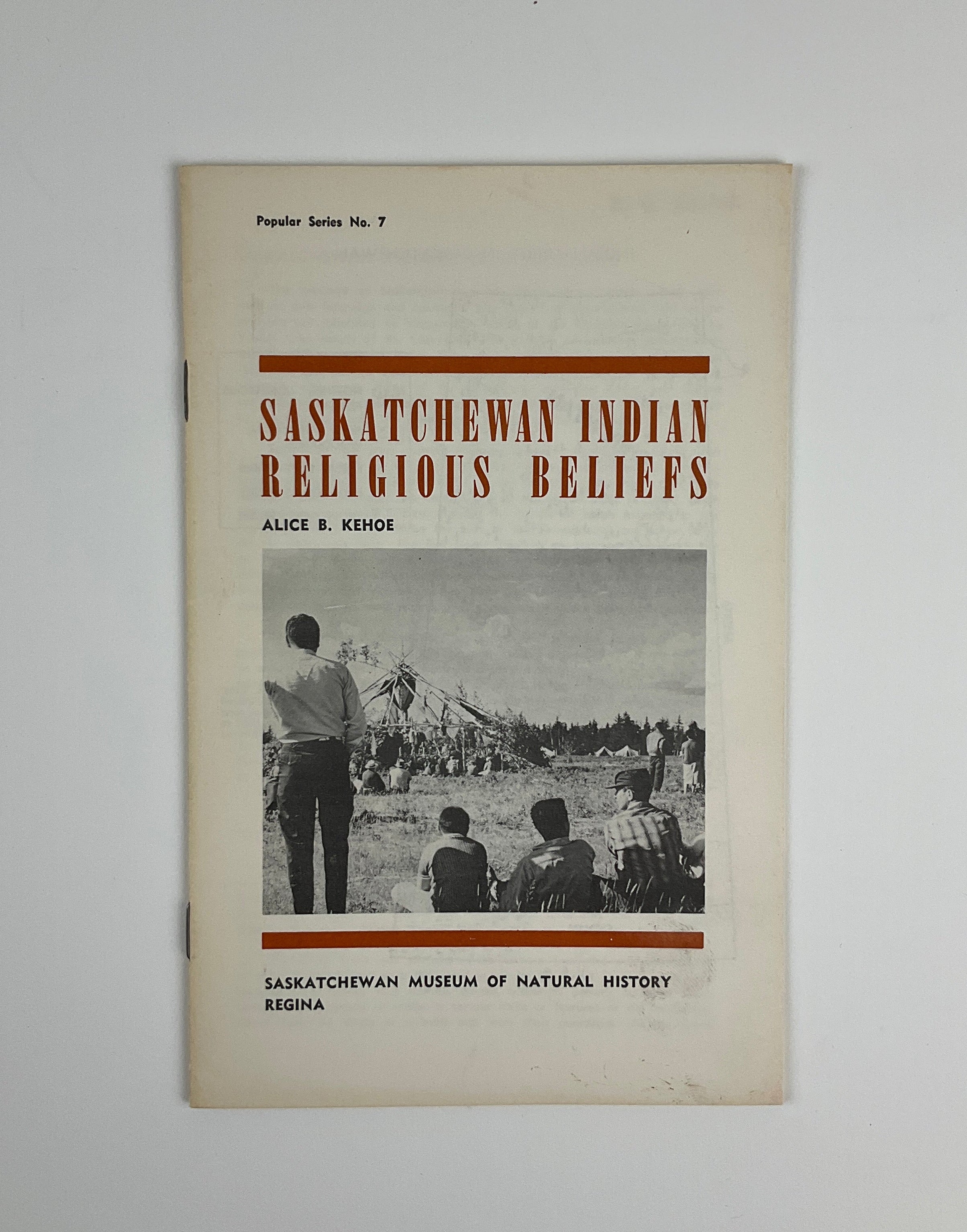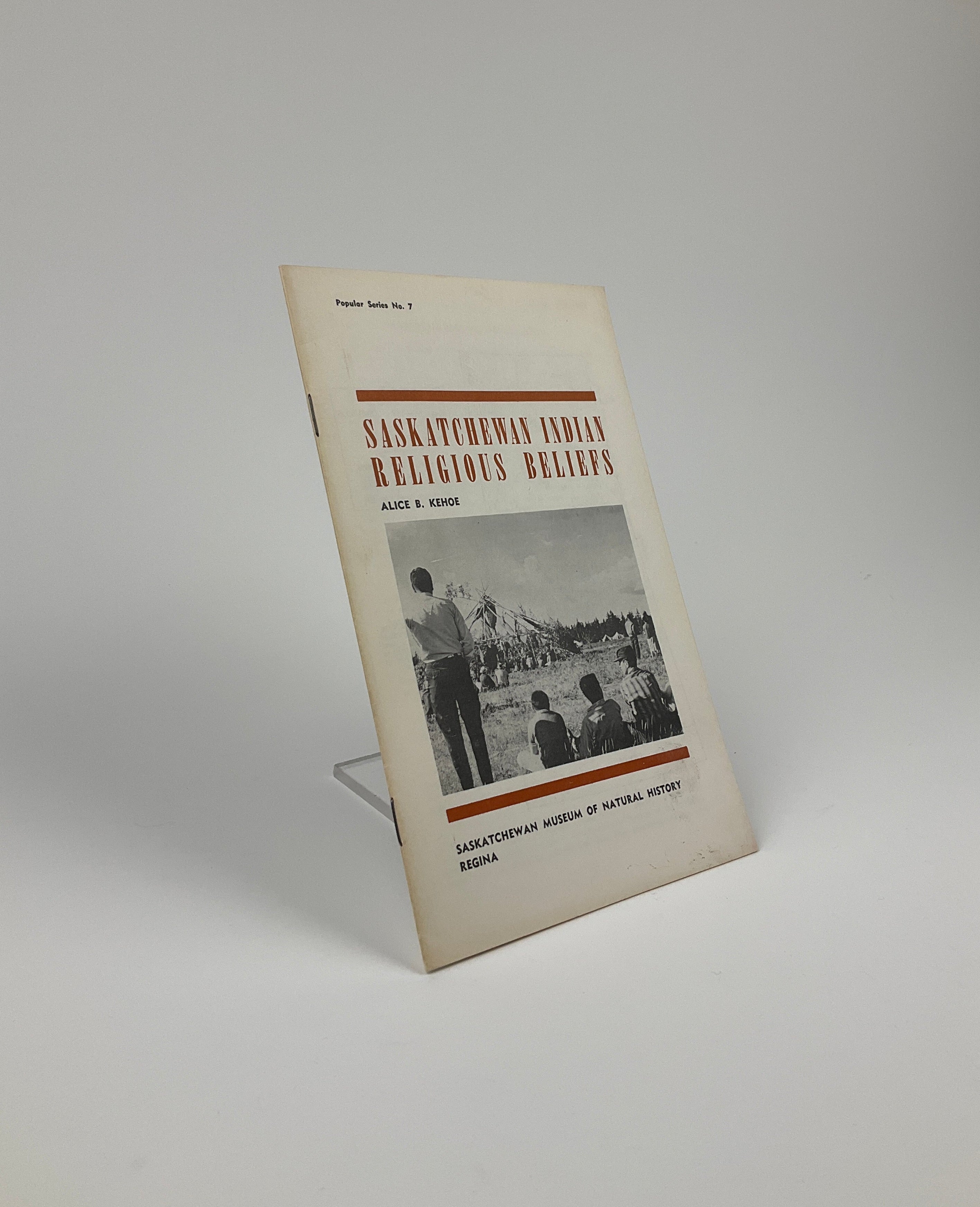 Saskatchewan Museum of Natural History Popular Series No. 7. In this slim booklet, American anthropologist and archaeologist Alice Beck Kehoe (whose husband, Thomas, was a curator at the Museum in 1963) outlines First Nations religious beliefs, rituals, and leaders in Saskatchewan. Acknowledging differences between the religious practices of the province’s Indigenous groups, Kehoe nevertheless focusses on similarities. She discusses belief in spiritual forces, explains the role of shamans, recounts ceremonies such as the Sun Dance, and describes ritual objects. Kehoe also covers new developments in North American Indigenous religions, from the advent of the Ghost Dance to the arrival of Christian and Baha’i missionaries. Images and illustrations support the text throughout.