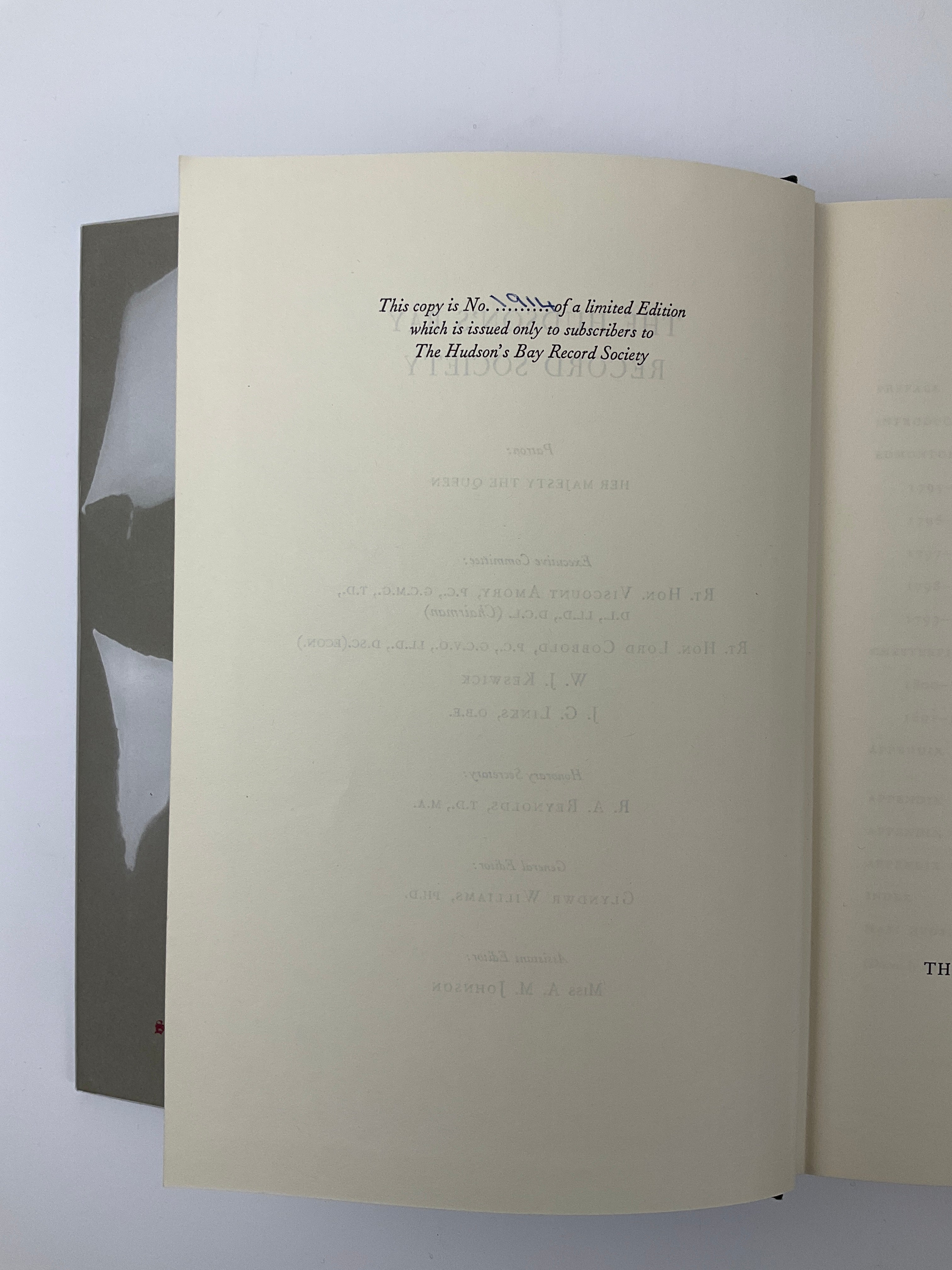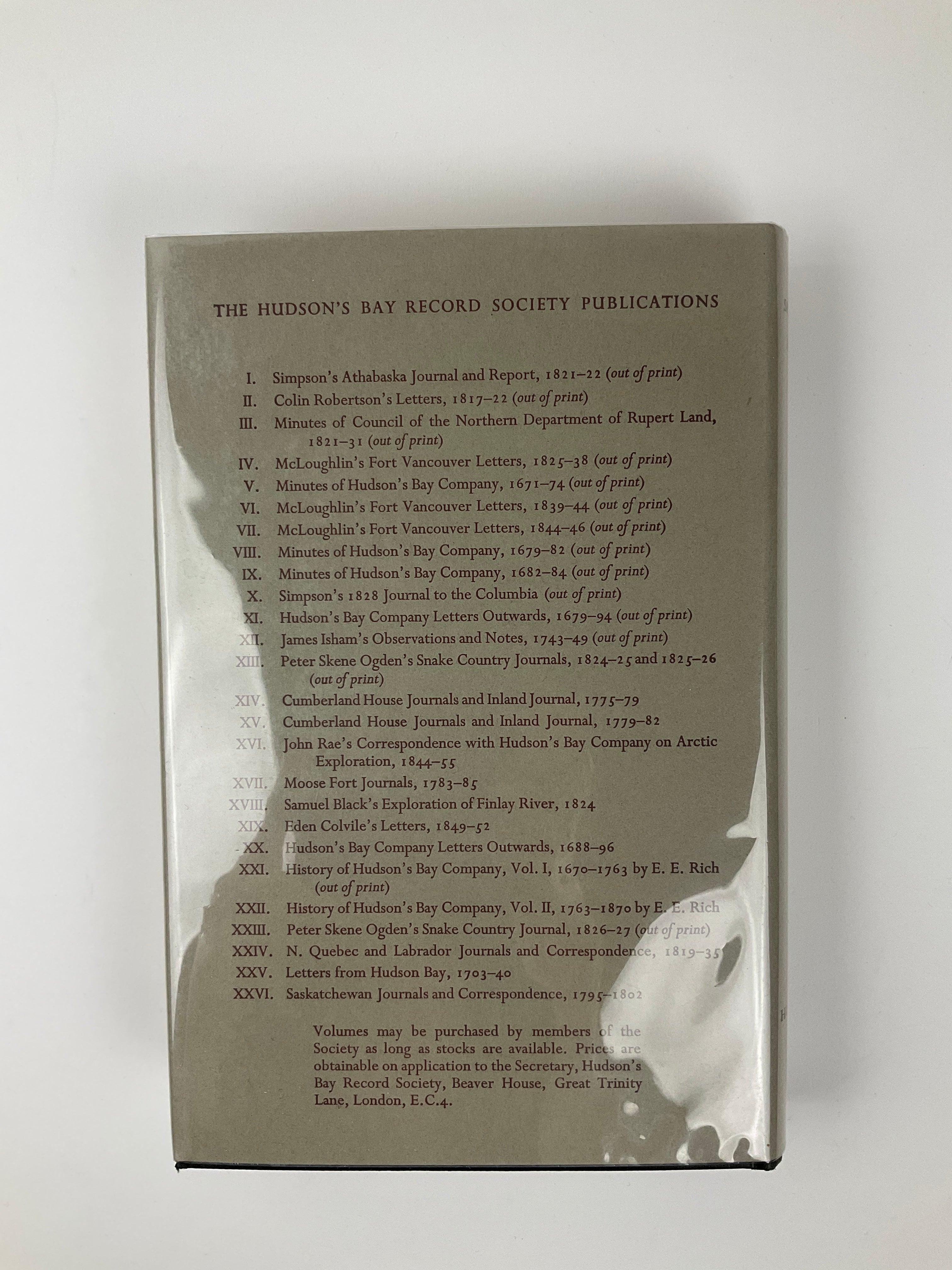 Hardcover with dust jacket, [102] 368 [16] pages, 6.25x9.50 in, [15.5x24 cm]. Hudson's Bay Record Society Volume XXVI. "This copy is No. 1914 of a limited Edition which is issued only to subscriber's to The Hudson's Bay Record Society".