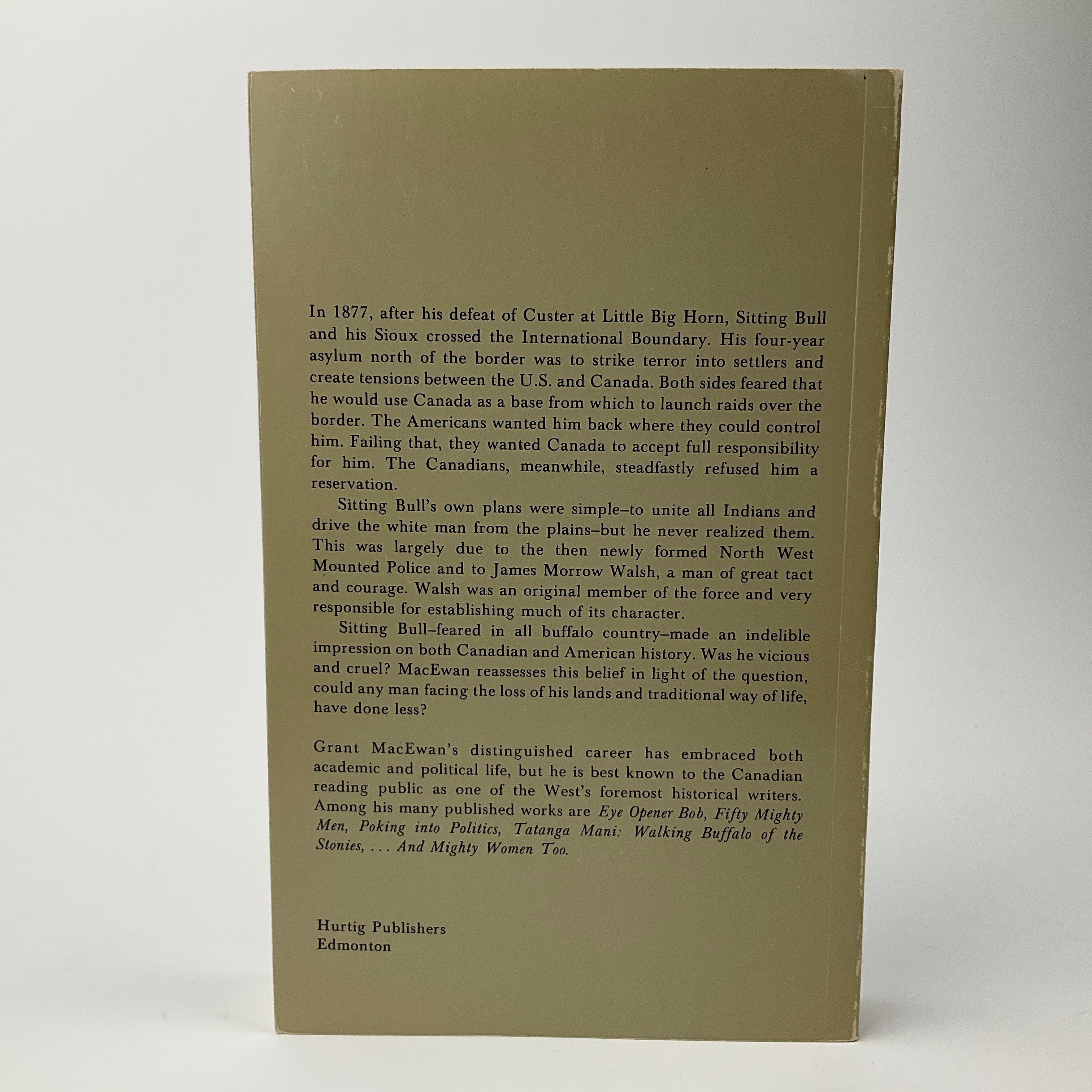 A popular, biographical, western Canadian history by Grant MacEwan. Following the 1877 defeat of General Custer's forces at Little Big Horn, Sitting Bull joined approximately 5000 Sioux in moving north into (what is now) Saskatchewan. MacEwan situates Sitting Bull's Canadian sojourn in the context of the Great Sioux War, tensions and migrations along the (now) Canadian-American border, and the (then, newly founded) North-West Mounted Police. He reappraises Sitting Bull's legacy as a feared presence on the Canadian prairies, explores Sitting Bull's motivations for aggressively challenging settlers, and evaluates the NWMP's role in responding to the Sioux presence.