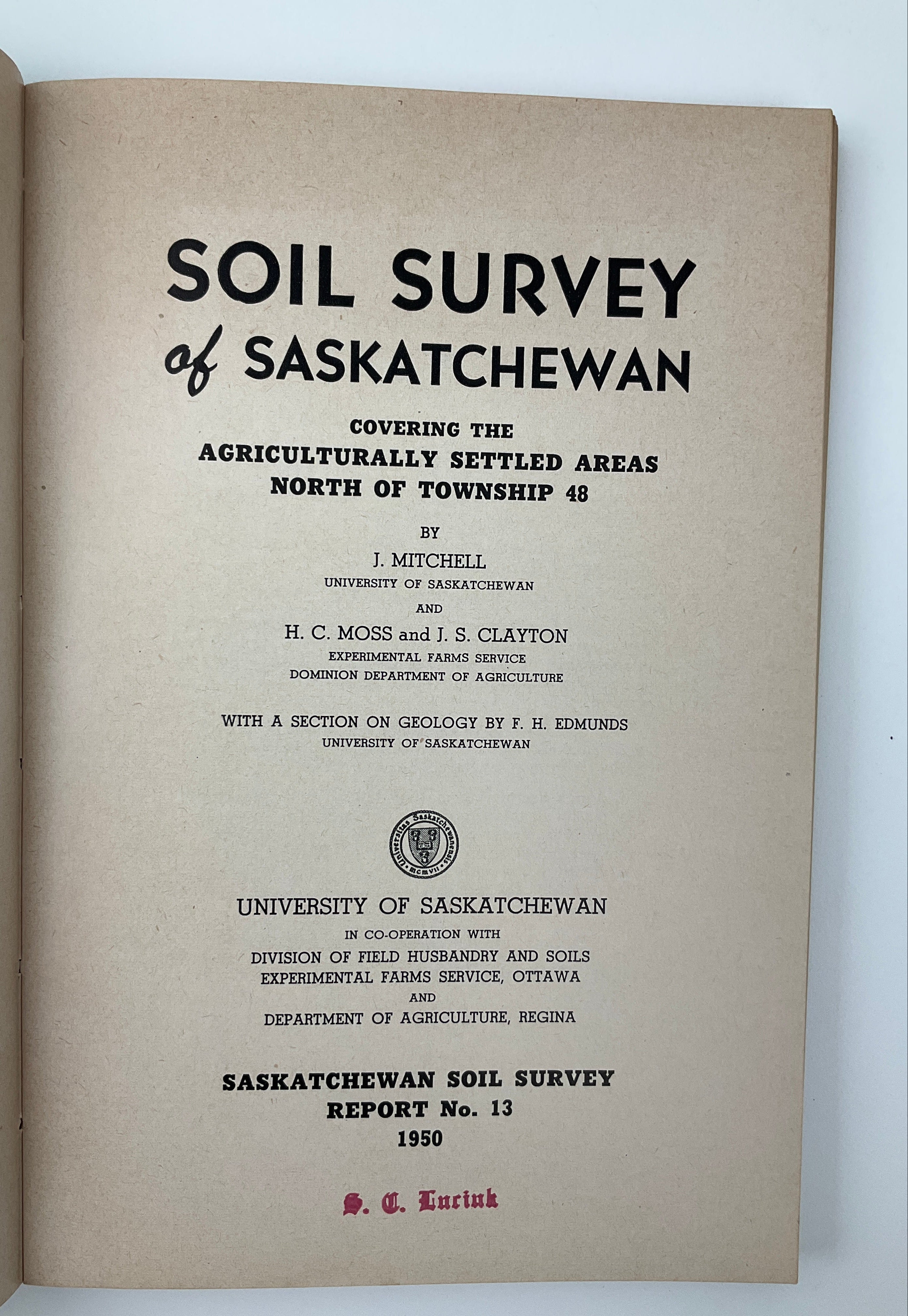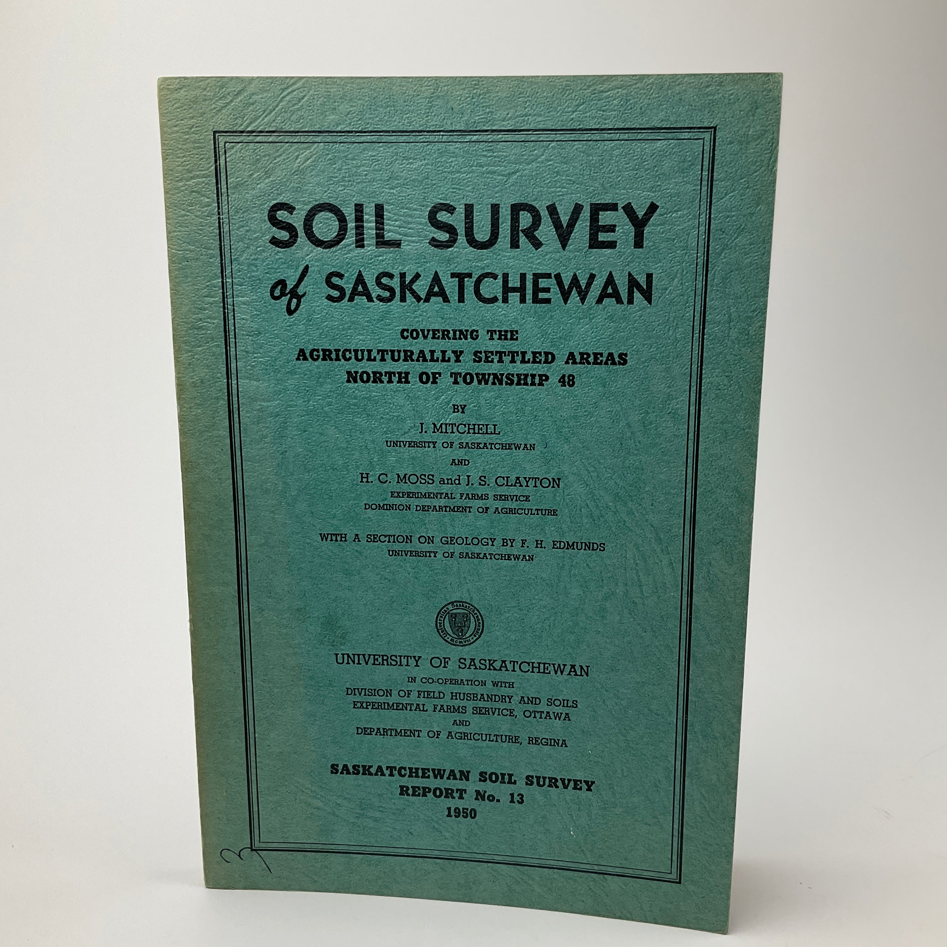 Conducted by the University of Saskatchewan’s Department of Soils (now, Dept. of Soil Science) to complement 1944’s Soil Survey #12, Soil Survey #13 organizes the province’s central/northern agricultural regions by soil type, further dividing each soil into subtypes or “Associations.” The report contains information about drainage, topography, composition, texture, and other geological and organic aspects. As a publication of the University’s College of Agriculture, the Soil Survey also comments on the agricultural suitability of each soil type as well as conservation. The soil ratings created by Moss and Mitchell – both major figures in the field – remain standards for assessing soil in the province. A comprehensive report of the province’s soil compositions for regions north of Prince Albert as far as Meadow Lake. See Peel(3) 6659.