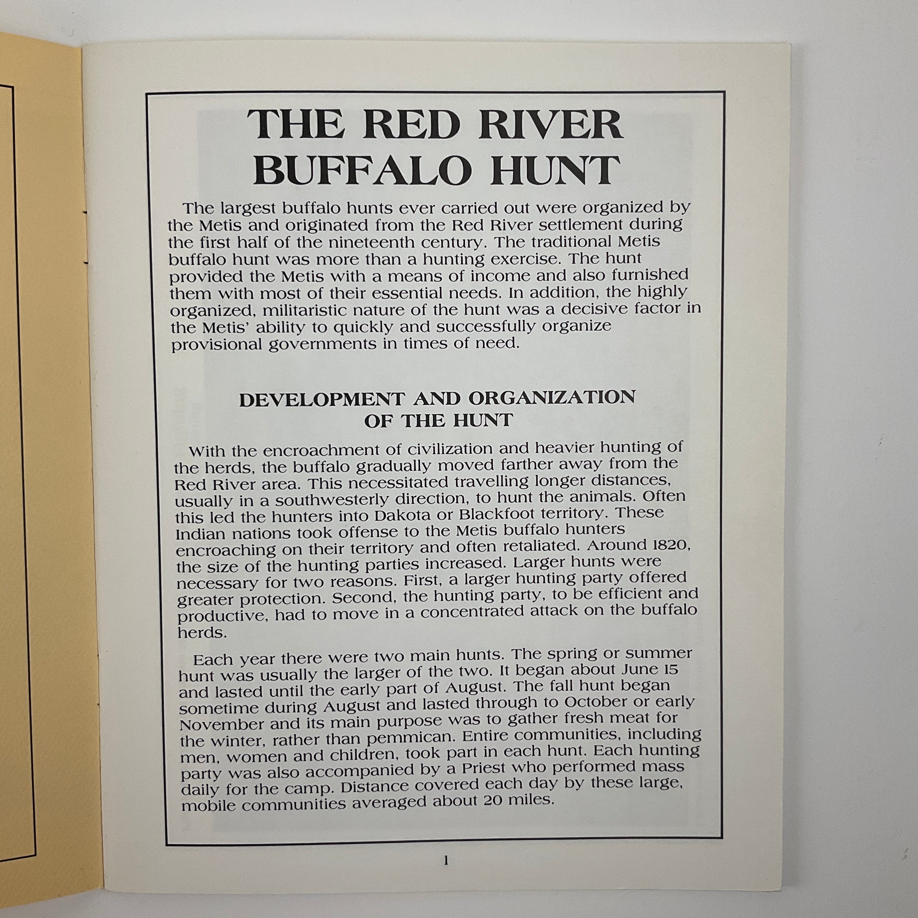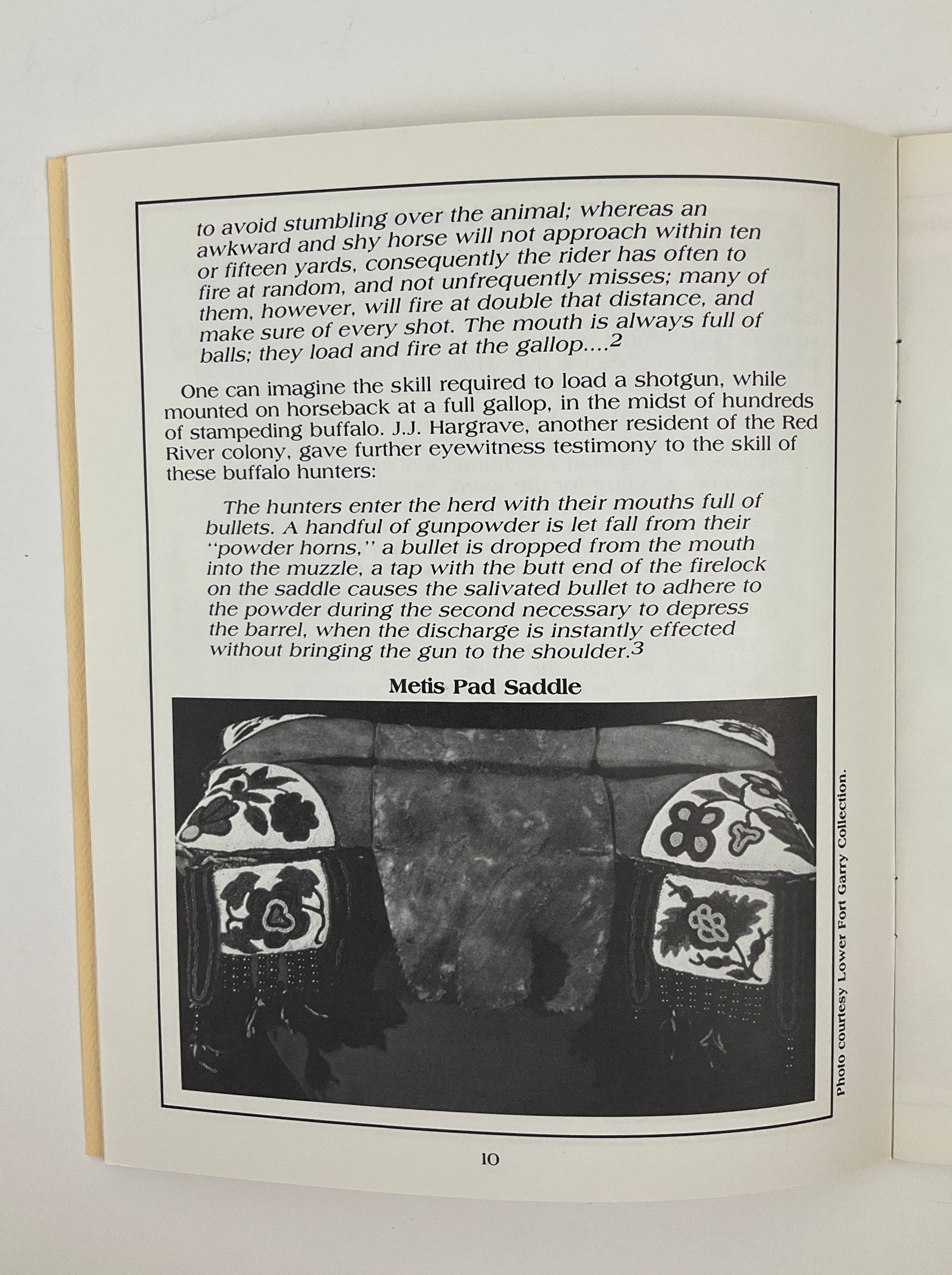 This slim volume (part of the Gabriel Dumont Institute’s “Métis Historical Booklet” series) describes the biannual major buffalo hunts undertaken by the Red River Métis in the 18th and 19th centuries. Joanne Pelletier describes the hunt’s origination, organization, and execution, emphasizing the event’s planning, rules, and regulations, as well as buffalo’s centrality to Métis life. Excerpts from period documents and eyewitness accounts of hunts appear throughout the text, and large images visualize the events that Pelletier describes.