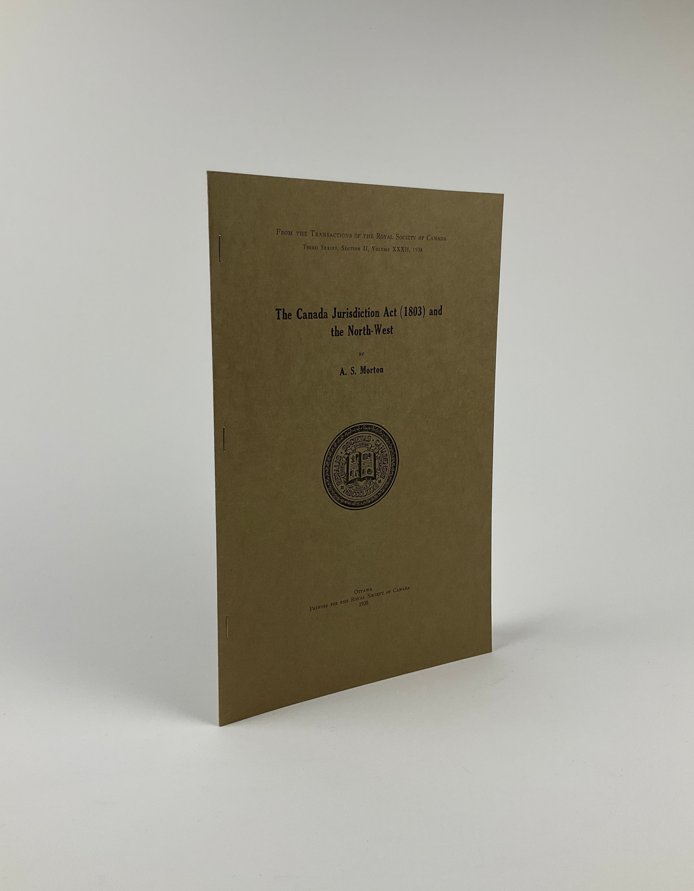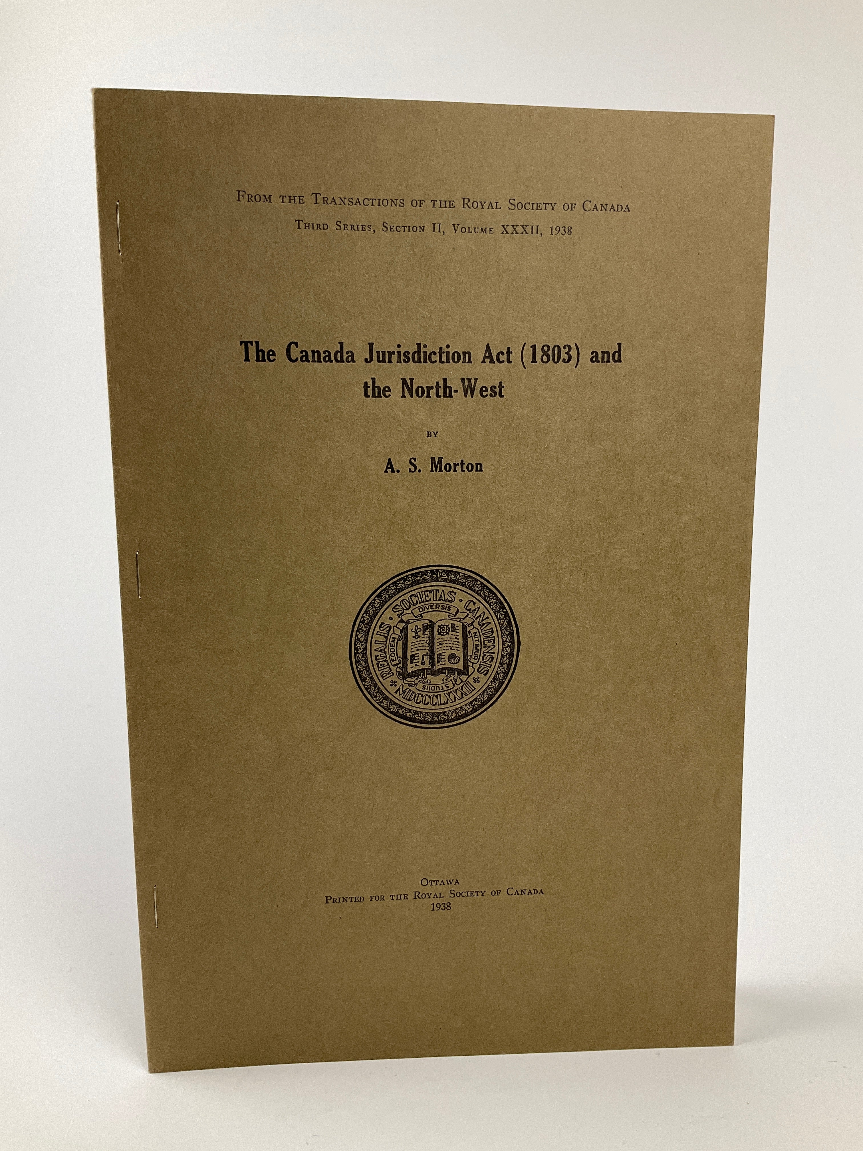 From the Transactions of the Royal Society of Canada, Third Series, Section II, Volume XXXII. Arthur S. Morton was a professor of History at the University of Saskatchewan as well as the University’s Librarian. In this article, he discusses the hazy geographic and legal boundaries of the 1803 Canada Jurisdiction Act, which extended the authority of courts in Upper and Lower Canada to situations where no other court’s authority applied. Morton begins by sketching several crimes occurring in the North-West in the late 1700s and early 1800s that precipitated the Act’s creation. He then examines instances where the North West Company and Hudson’s Bay Company creatively leveraged the Act in their battles against one another for fur monopolies. With reference to specific crimes and cases, Morton explores the difficulty of establishing legal authority in the North-West in the early 1800s. An offprint.