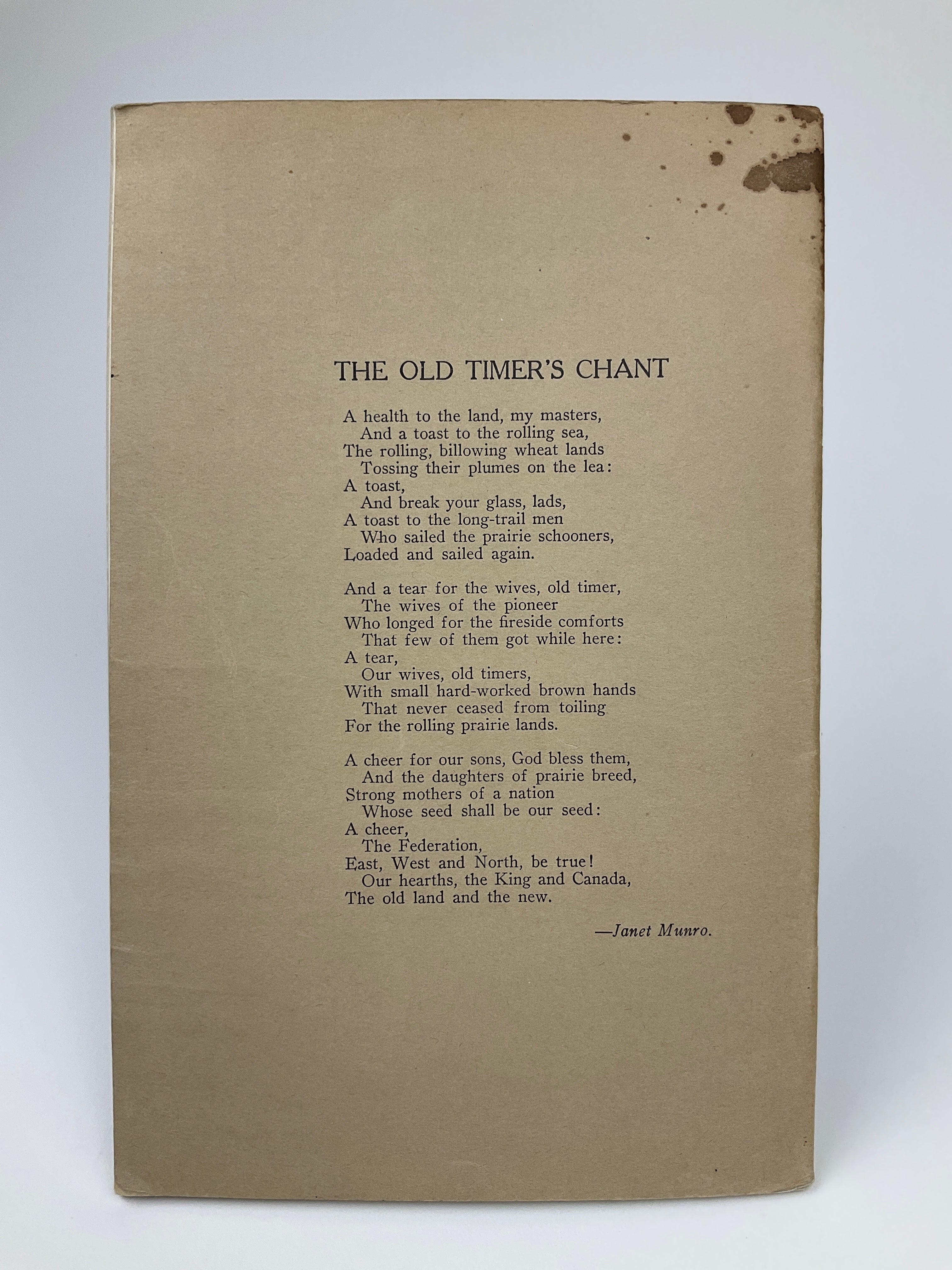 Canadian North-West Historical Society Publications Vol. 1 No. 6. The Canadian North-West Historical Society was founded in 1924 (as the Battleford Historical Society) to preserve the Battleford area’s history, in part by publishing accounts of life in the region prior to 1890. In this volume, J. Stuart MacDonald (an Inspector of the Government’s Telegram Service) details the construction of the Dominion Telegraph line between Manitoba and Edmonton in the 1870s, arguing that its role in changing the North-West rivaled that of the NWMP or the Canadian Pacific Railway. He also highlights the telegraph’s importance during the 1885 North-West Resistance. Includes an introduction by Saskatchewan Premier J. T. M. Anderson, appendices recounting line inspections and Alfred von Lindeburgh’s life as a telegraph operator near Qu’Appelle, and a 23 x 27 cm (9 x 10.5 in) fold-out map. Peel(3) 5461.