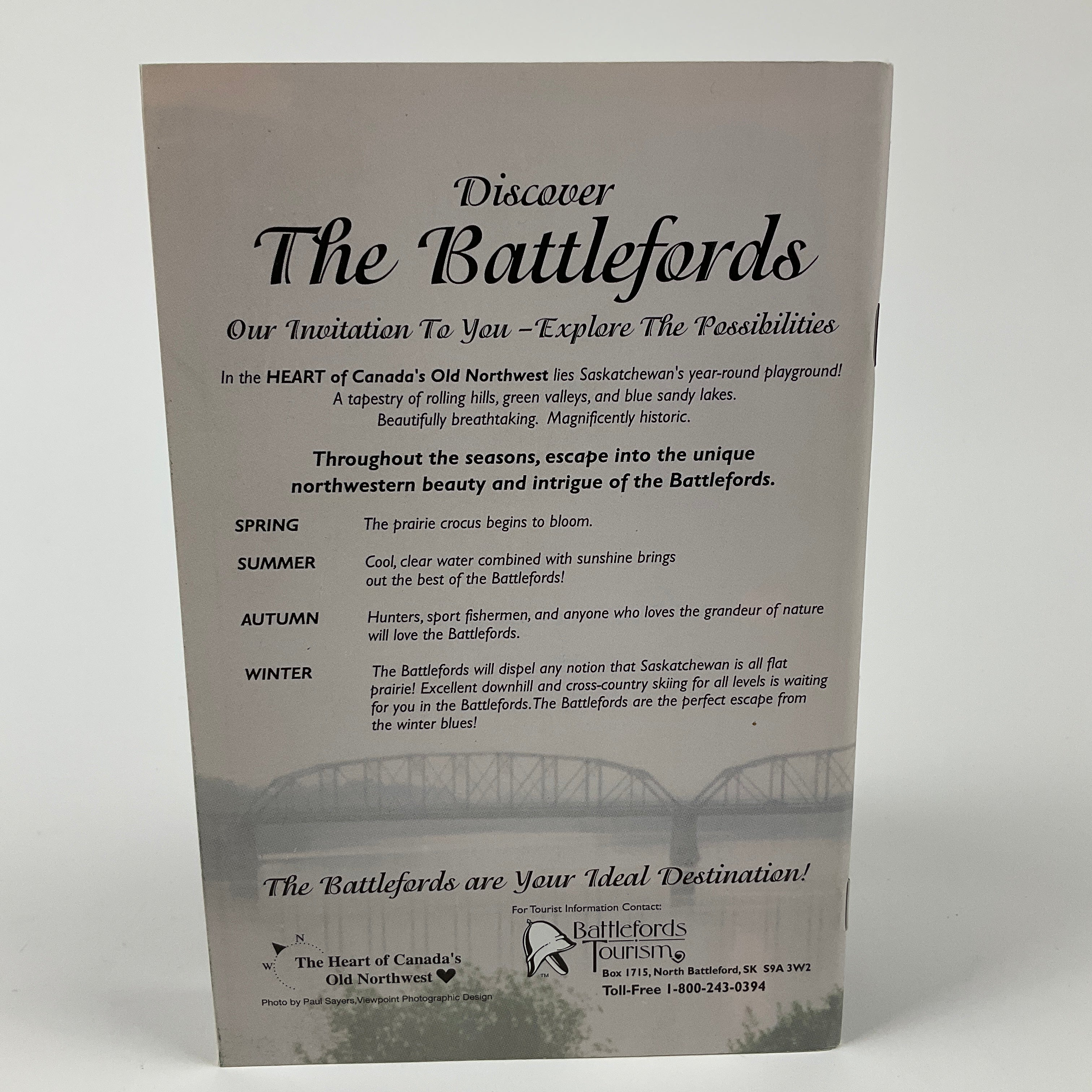 In this booklet, award-winning travel writers and photographers Arlene and Robin Karpan indicate points of historical and tourist interest in central Saskatchewan. From Saskatoon’s Berry Farm to a bird sanctuary at Redberry Lake, the Karpans present a range of sites to explore, activities to participate in, and events to attend. Many locations that the booklet highlights are related to the 1885 North-West Resistance, First Nations history, or early homesteaders. With maps and an eye for local services (like gas stations or campsites), the authors combine historical information, attractive photography, and trip-planning. Advertisements from heritage and tourist organizations appear throughout.
