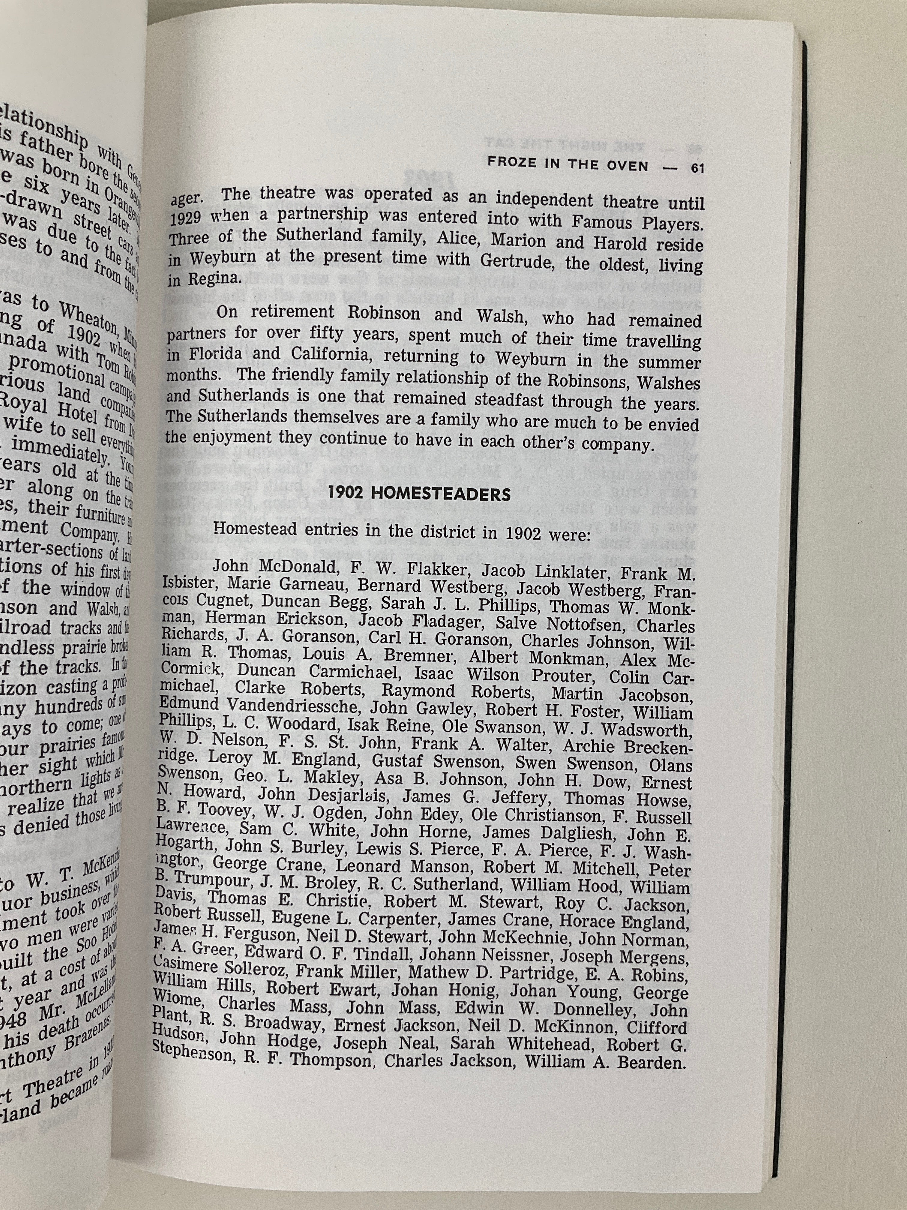 This is a local history book about Weyburn, Saskatchewan. It tells the story of the town and its residents: how the community developed, its challenges and achievements, and the character of everyday life there. The book includes photographs, maps, and personal recollections, weaving together the social, cultural, and economic history of Weyburn.