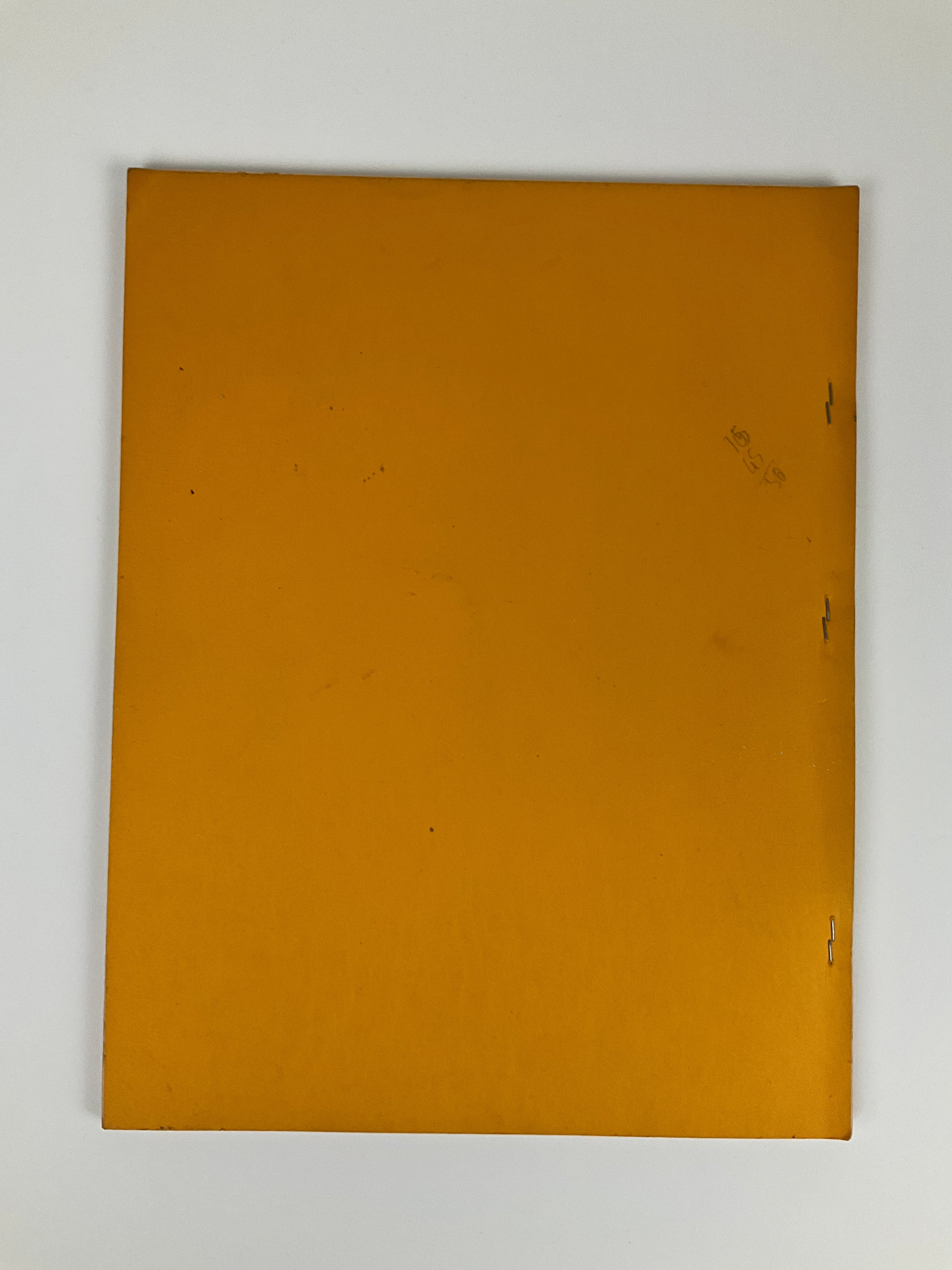 Construction paper covers, side stitched with staples, unpaginated (runs approximately 68 pages), 8.5x11 in, [21.5x28 cm].