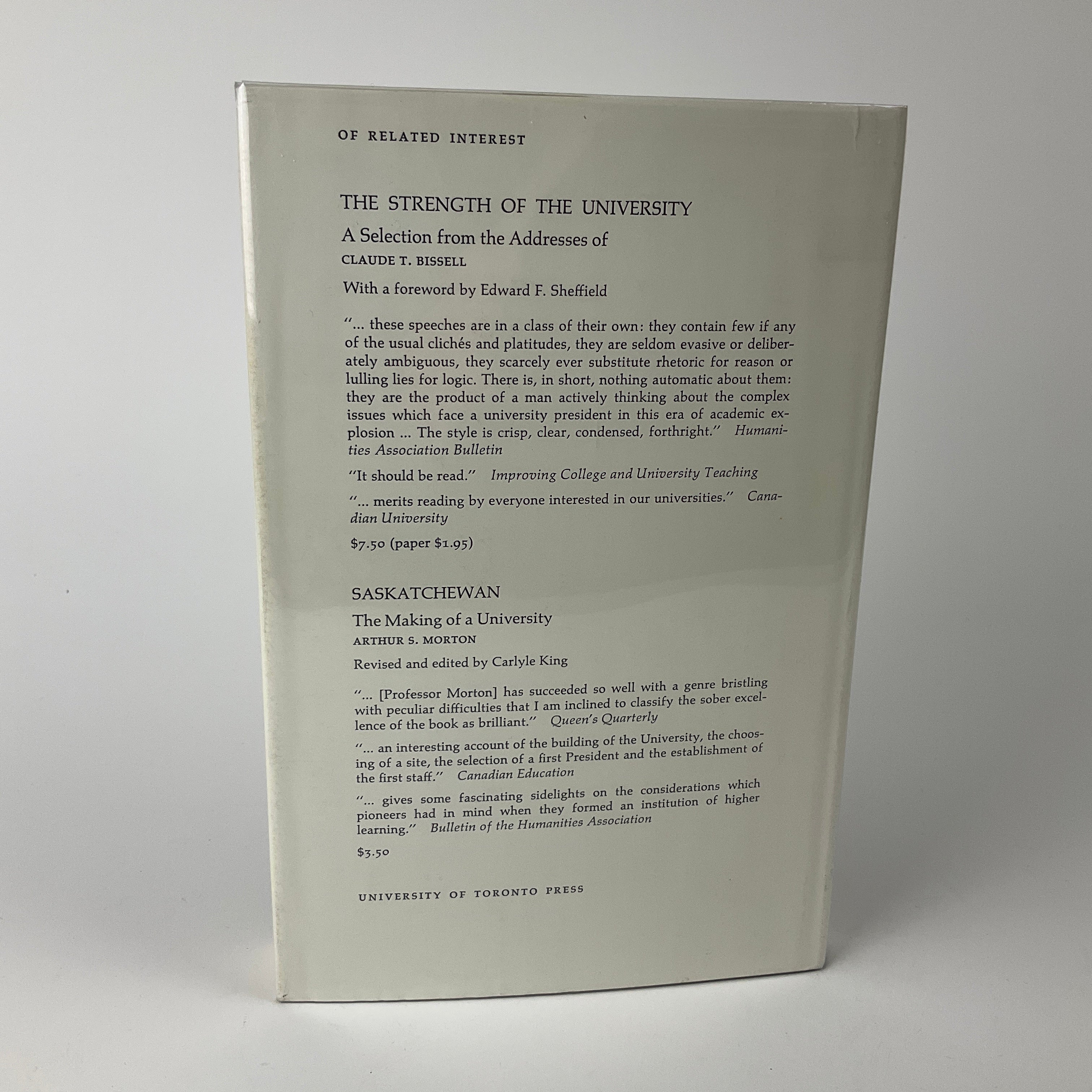Walter P. Thompson joined the University of Saskatchewan as a biology professor in 1913 and eventually became the University’s fourth President 1949-1959. Published the year that he passed away, this volume chronicles the University’s history from its founding in 1907 through both World Wars into Thompson’s term as President 1949-1959. Throughout, he discusses the development of programs, faculties, and administration as well as the University’s response to major events in Canada and around the world. While styled a “personal” history, Thompson carefully balances factual description against personal analysis, preferring the presentation of facts and statistics to over-speculation in matters where he had little influence or role.