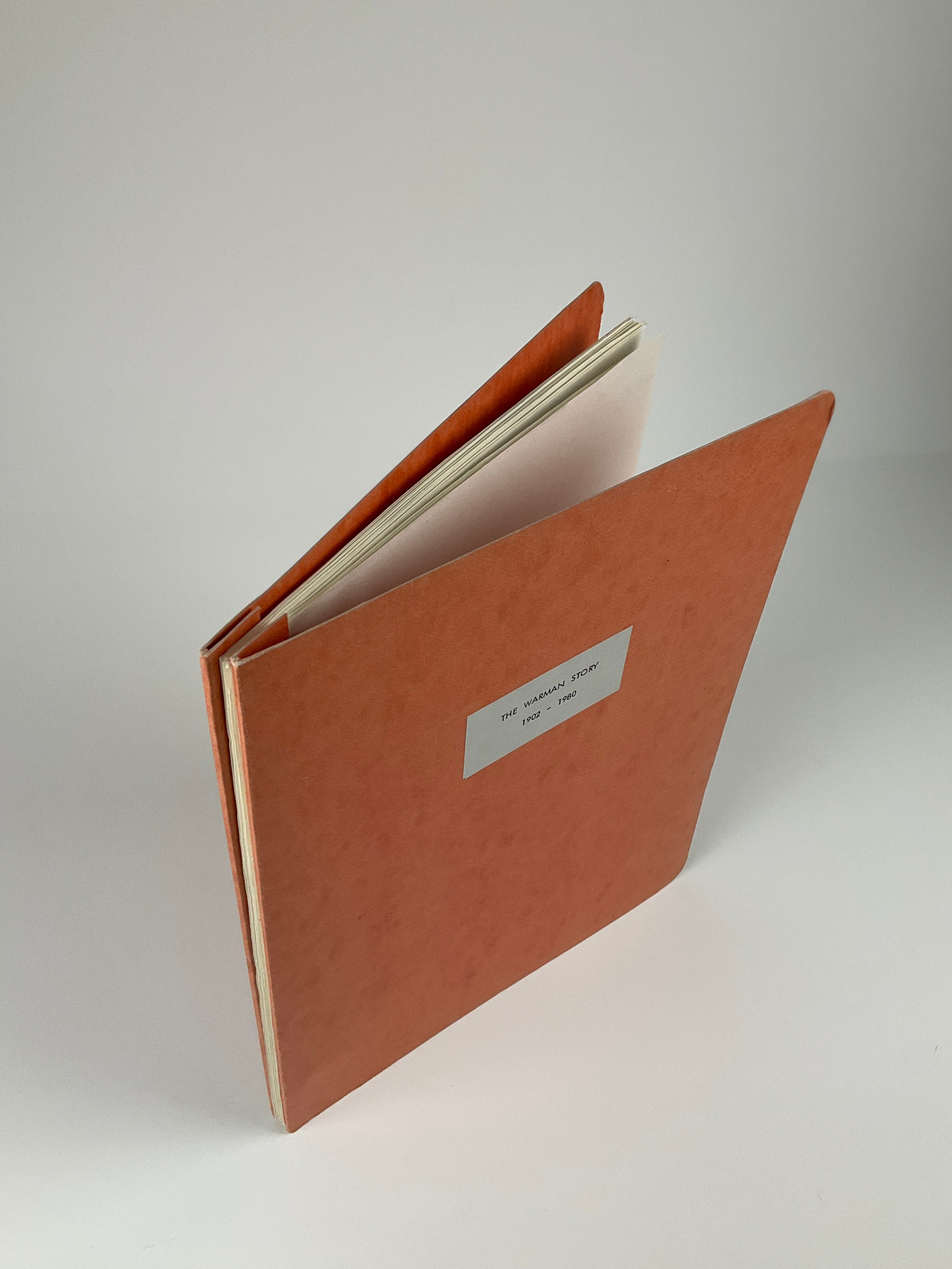 60 pages (with 12 pages of photographs and photo-copier images of newspaper clippings after page 60), enclosed within an ACCOPRESS card folder. Appears to have been producer on a photo-copier.