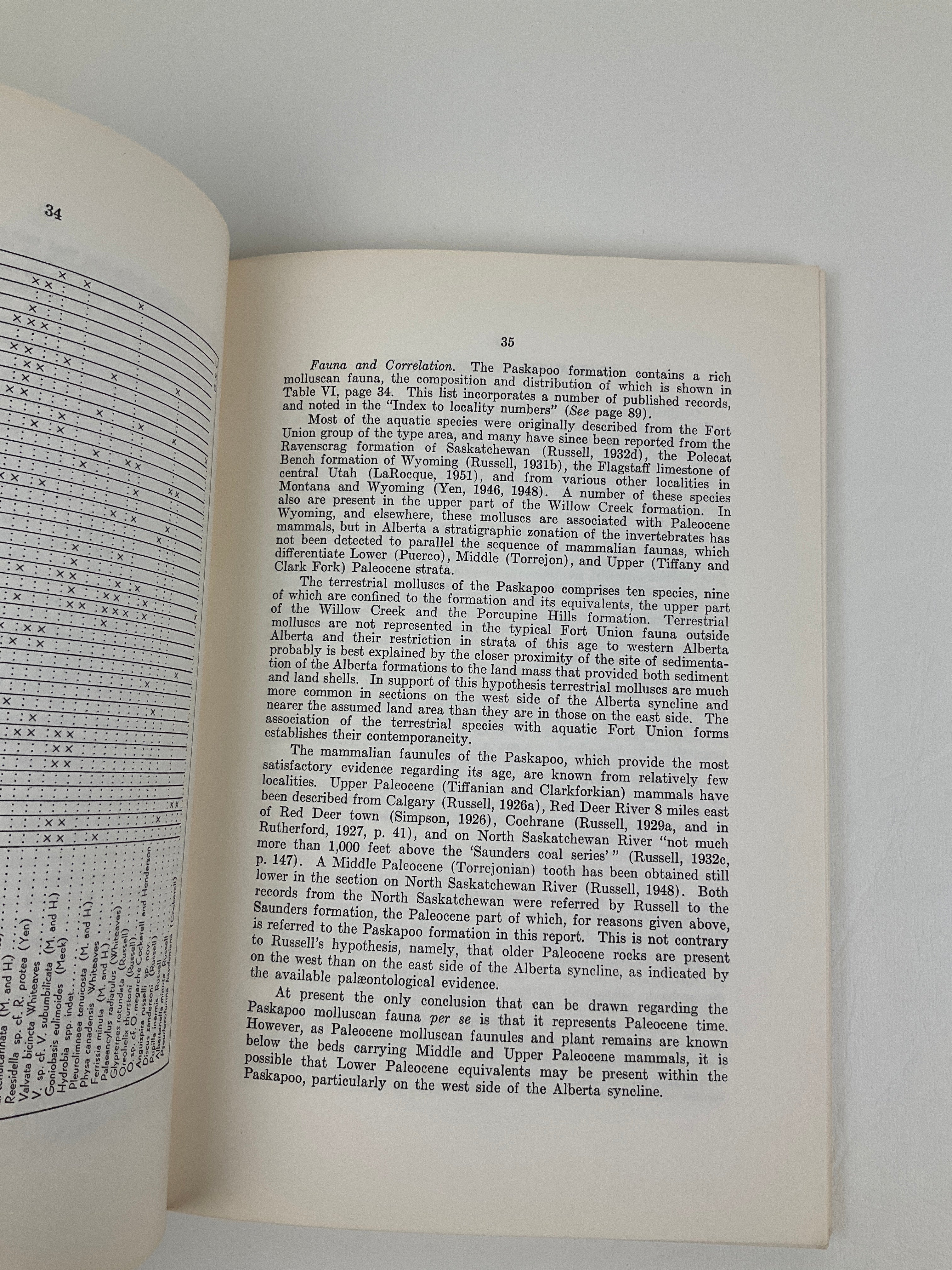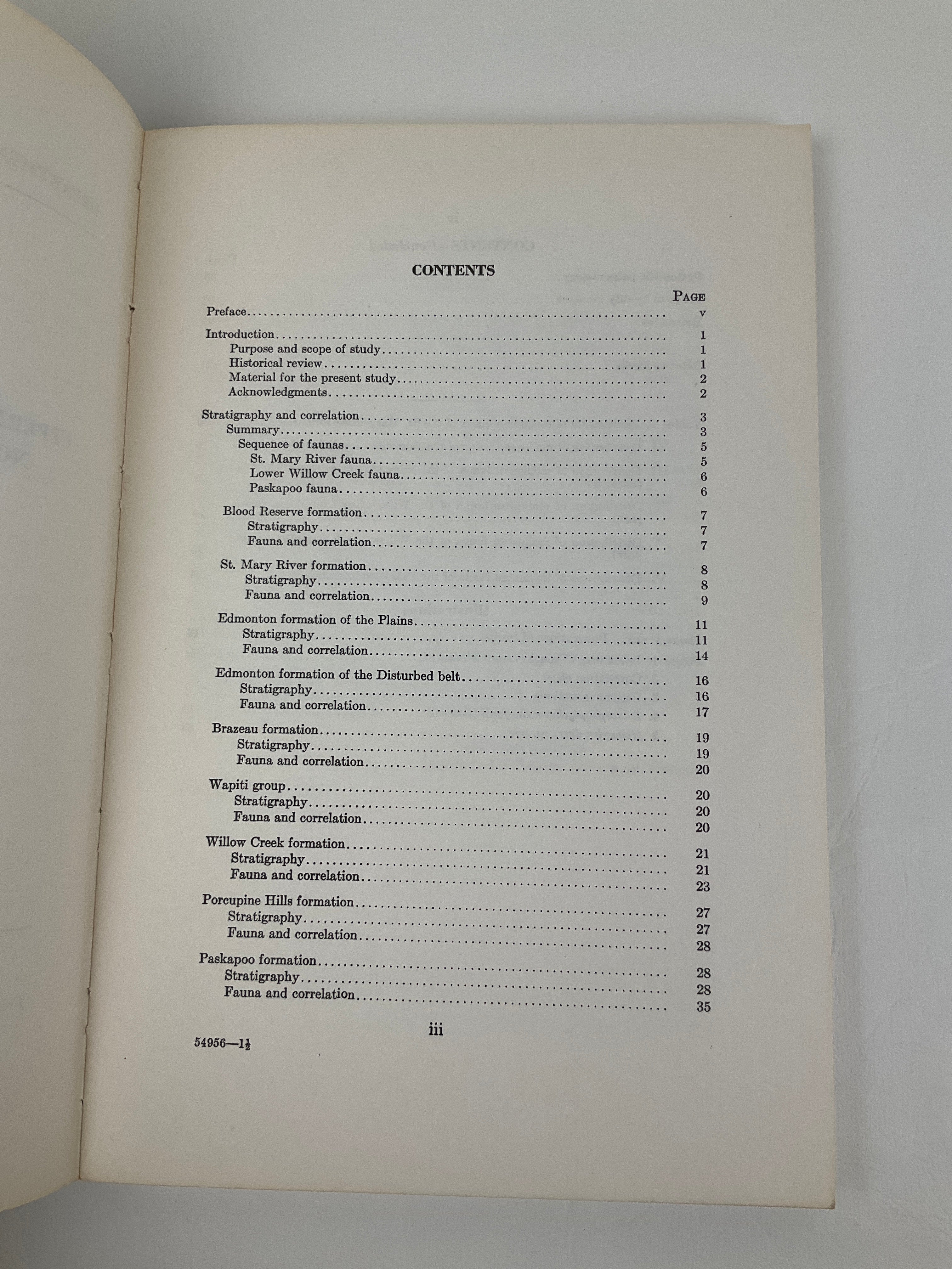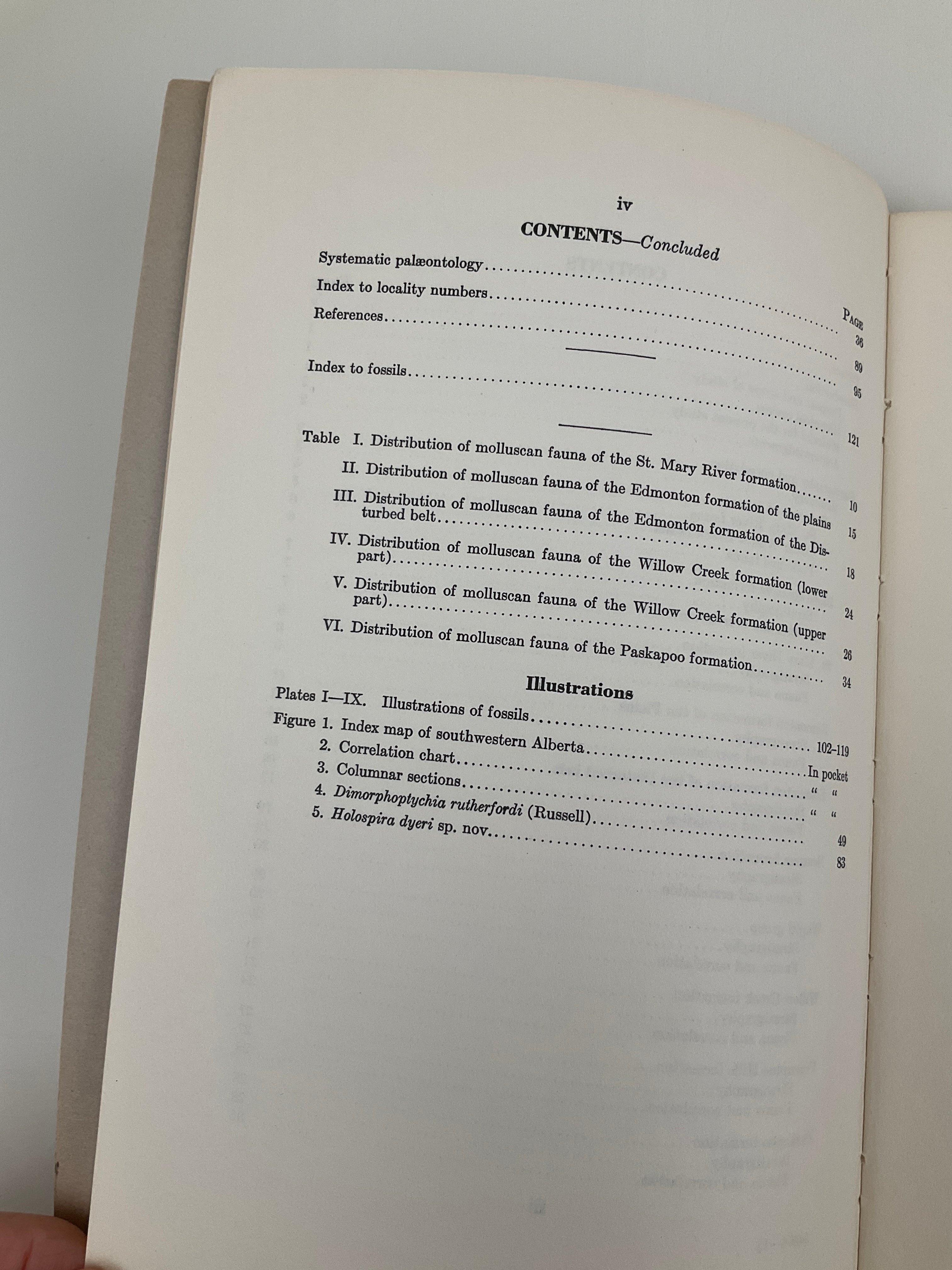 George Hanson, Director, Geological Survey of Canada writes in the Preface "... This memoir summarizes particularly the results of the study of the sediments adjoining the contact between the latest Mesozoic and earliest Tertiary formations together with a detailed description of their known freshwater and terrestrial molluscan species. A correlation table and a series of sections showing the positions of the fossil beds are presented, also nine plates containing one hundred and thirty figures illustrating species of the molluscan fauna and six tables listing their distribution in the formations. An index of the exact localities from which the molluscan shells were collected is given and this and other data will be of great assistance in studying the coal measures, and preparing sections correlating the beds encountered in wells drilled through these formations for oil or gas in the underlying strata.