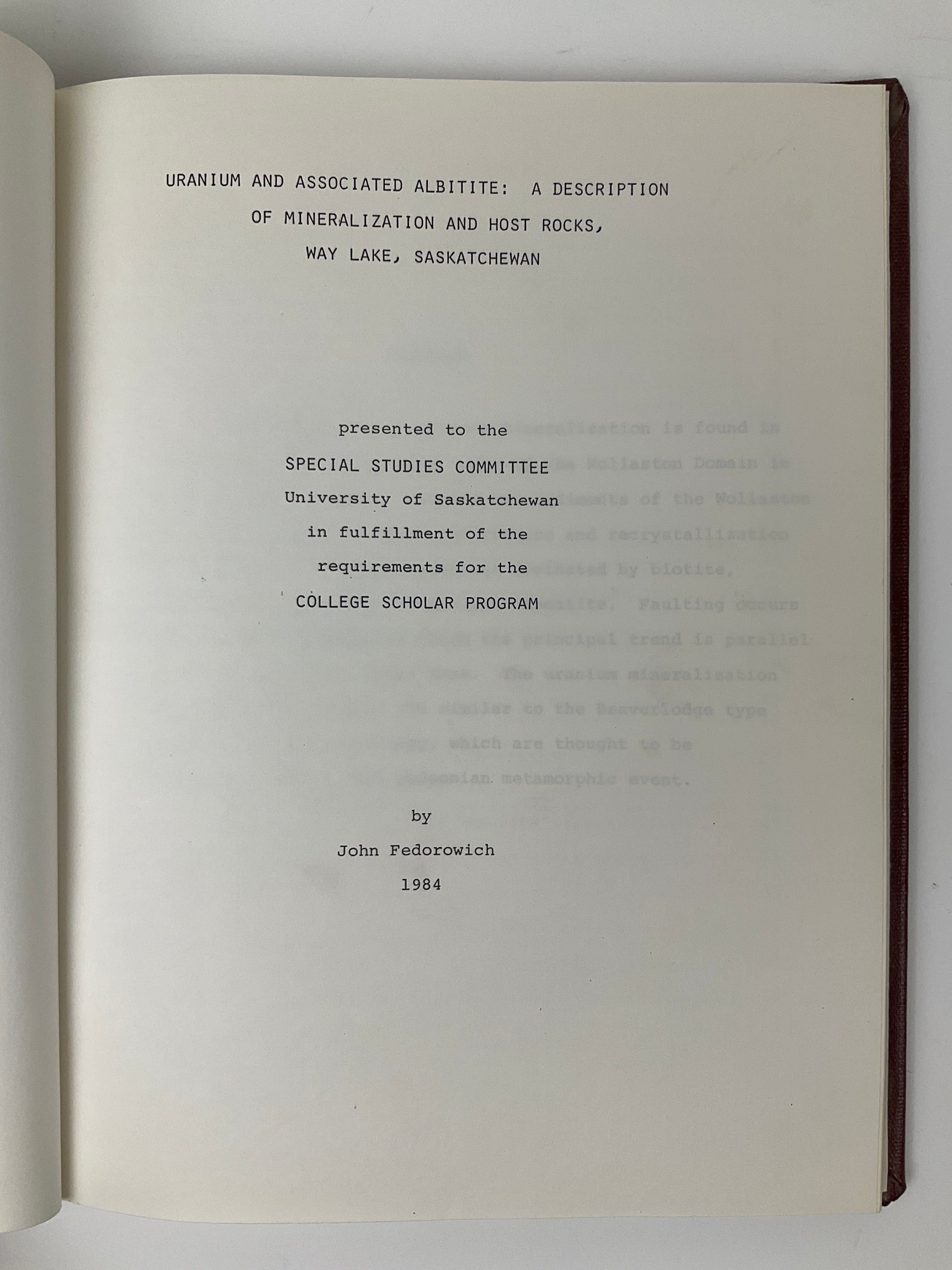 Uranium And Associated Albitite : A Description Of Mineralization And Host Rocks, Way Lake, Saskatchewan