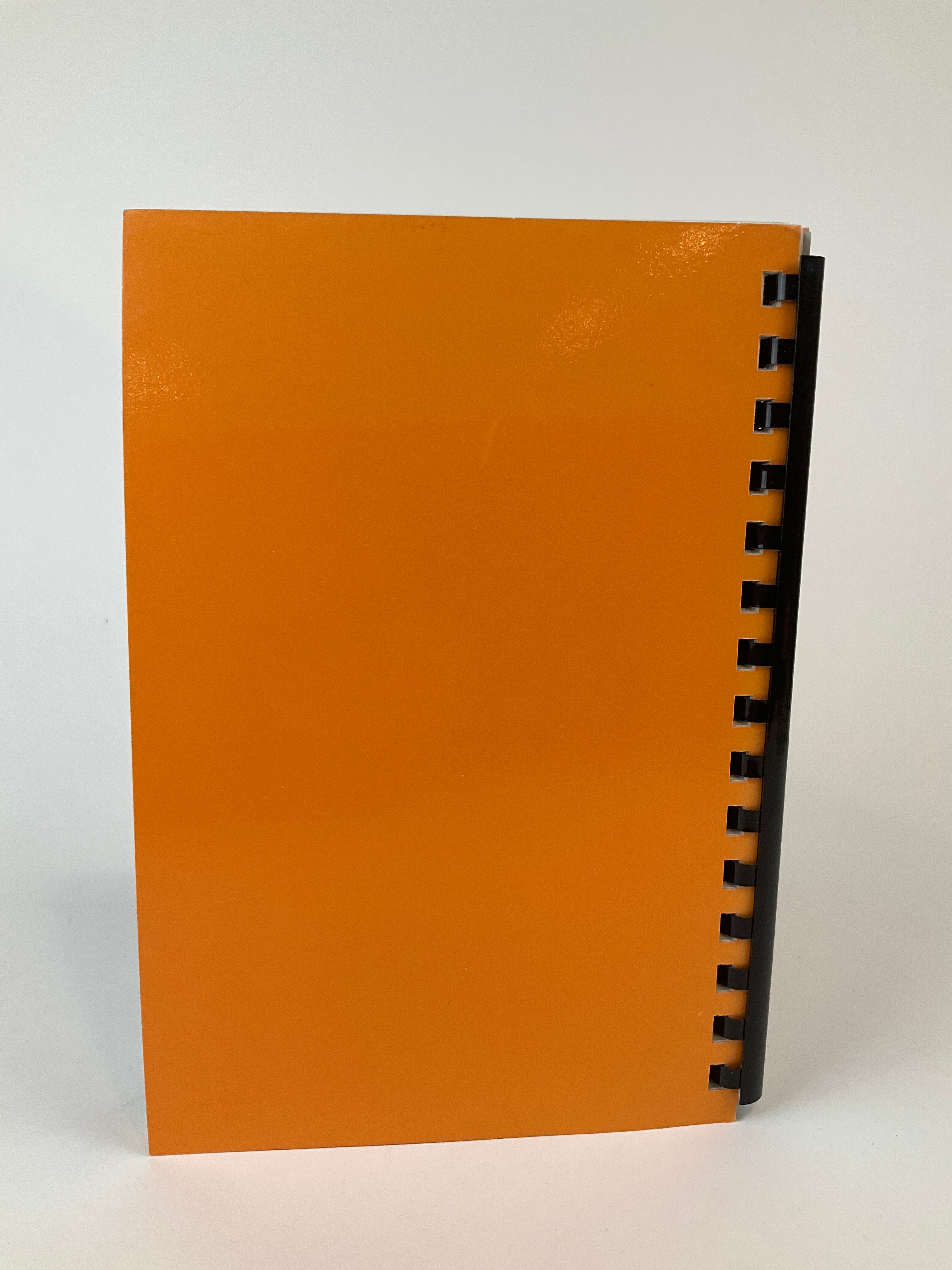 Back cover bumped at top spine corner. Previous owner’s contact and purchase information written on second page and rear vacat page, else interior clean and free of markings.