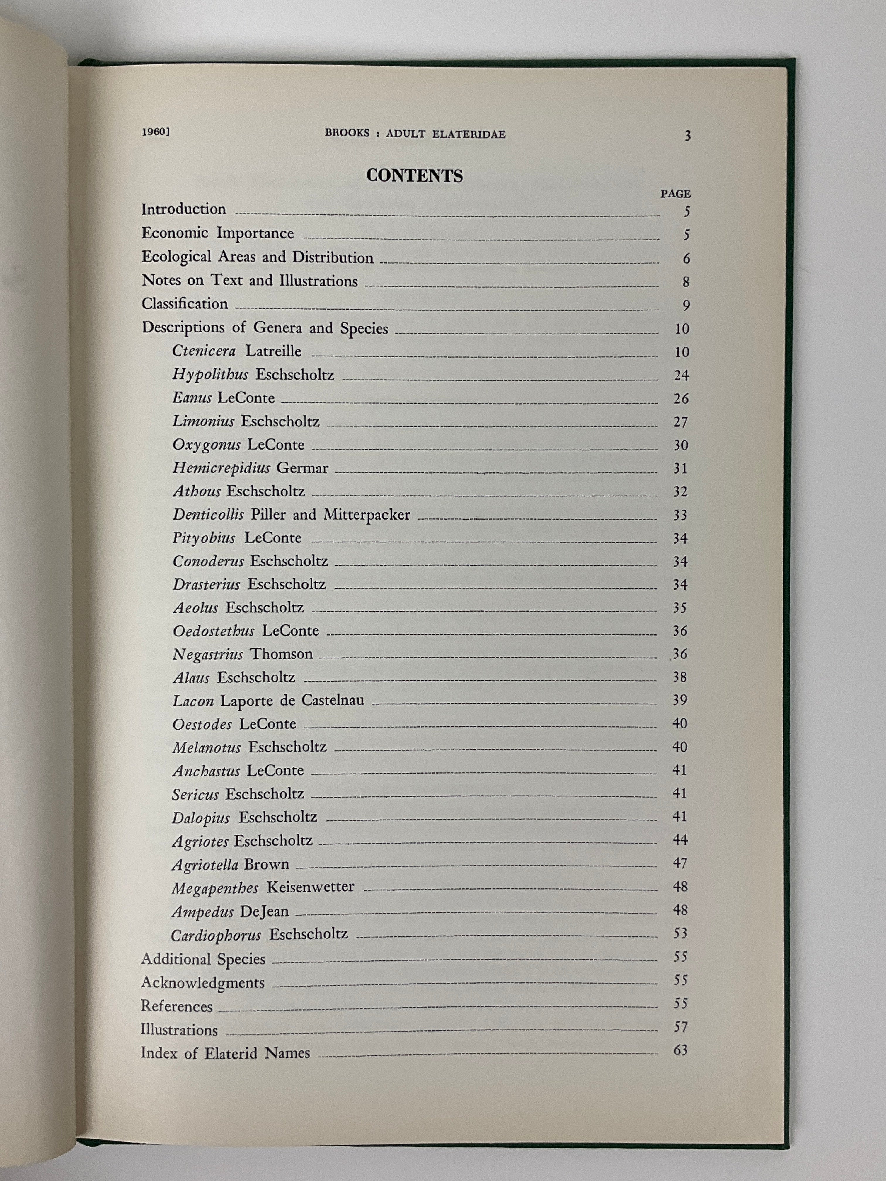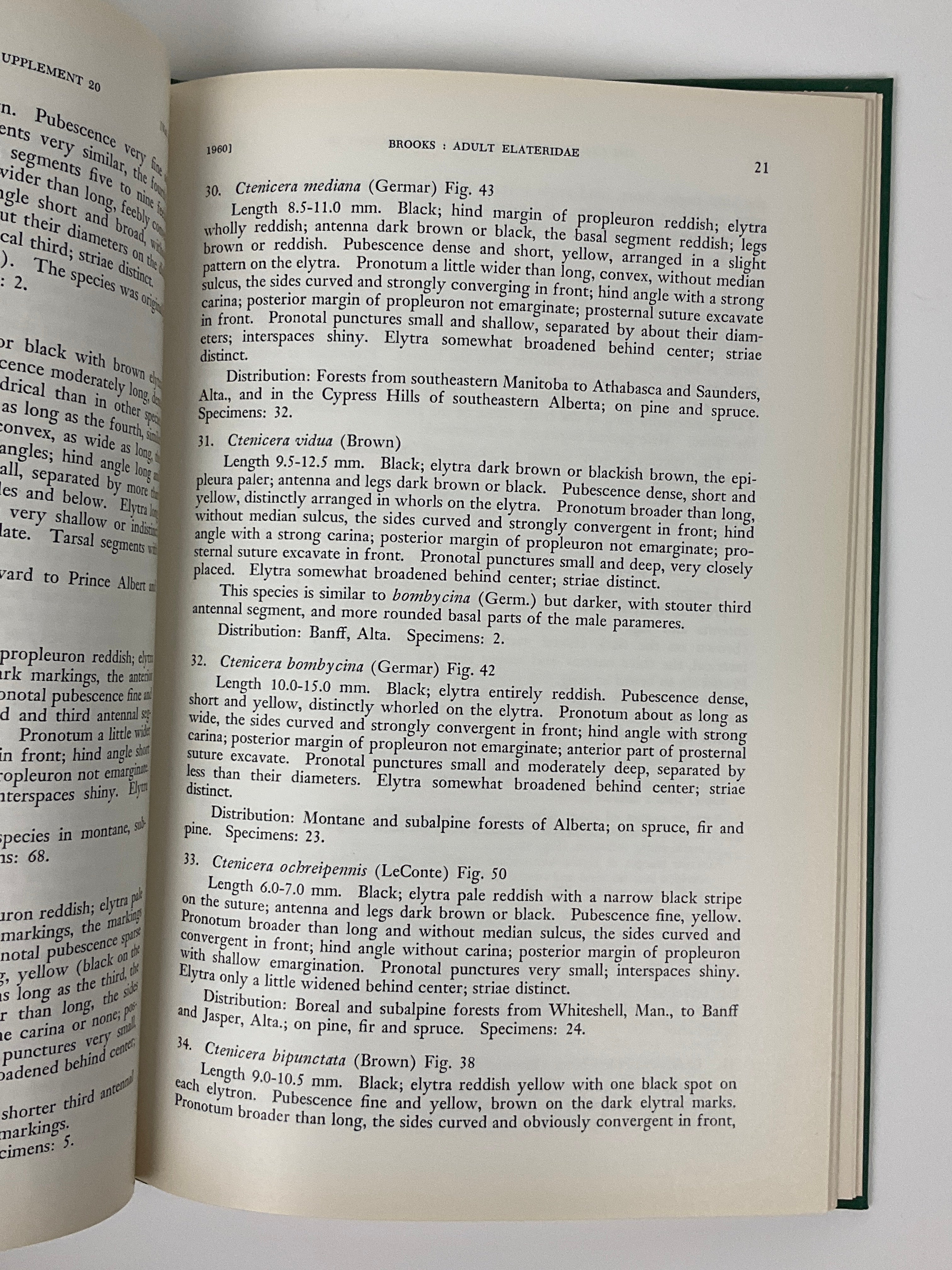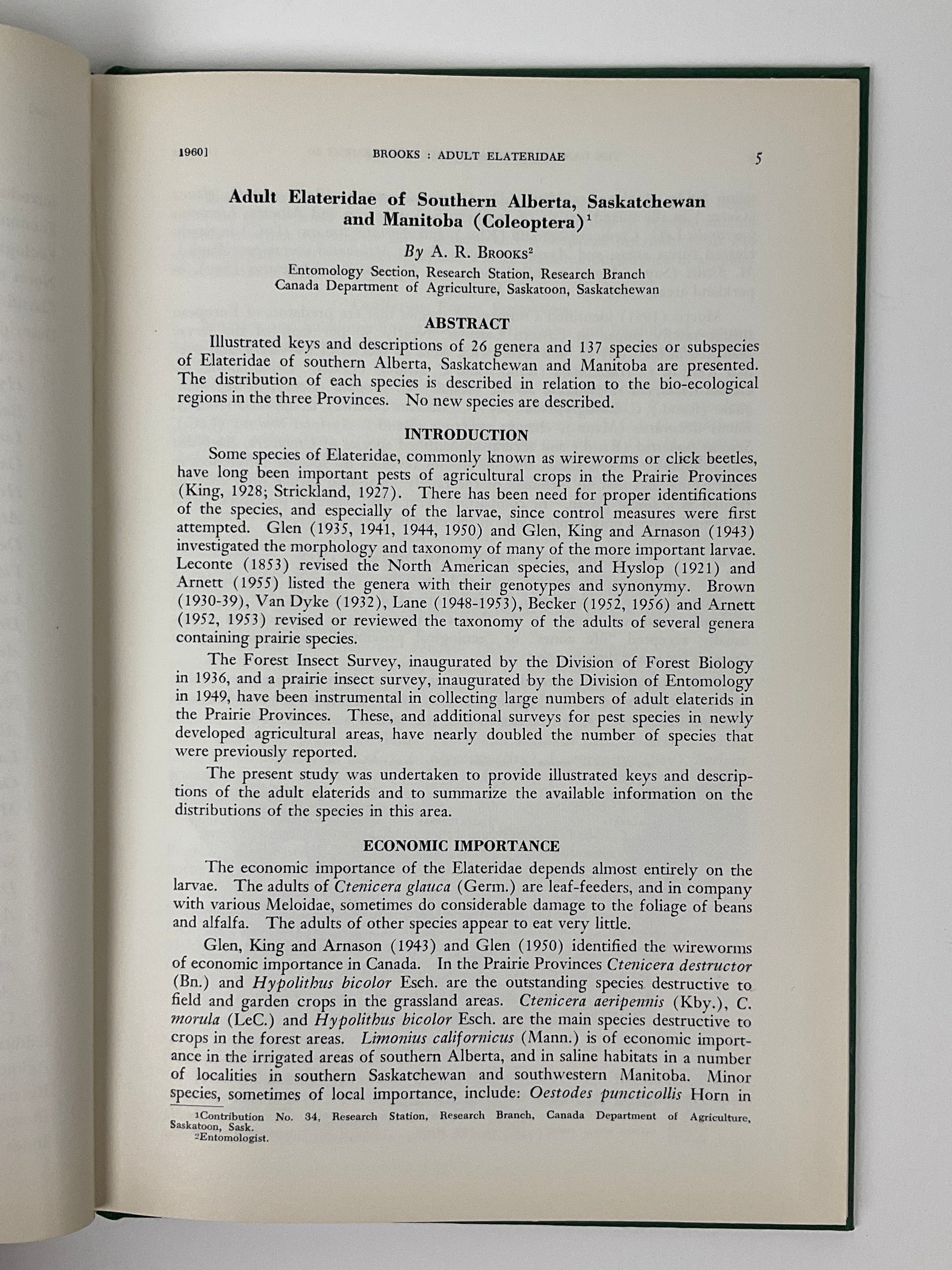 A.R. Brooks Writes in the Abstract "Illustrated keys and descriptions of 26 genera and 137 species or subspecies of Elateridae of Southern Alberta, Saskatchewan and Manitoba are presented. The distribution of each species is described in relation to the bio-ecological regions in the three Provinces. No new species are described."