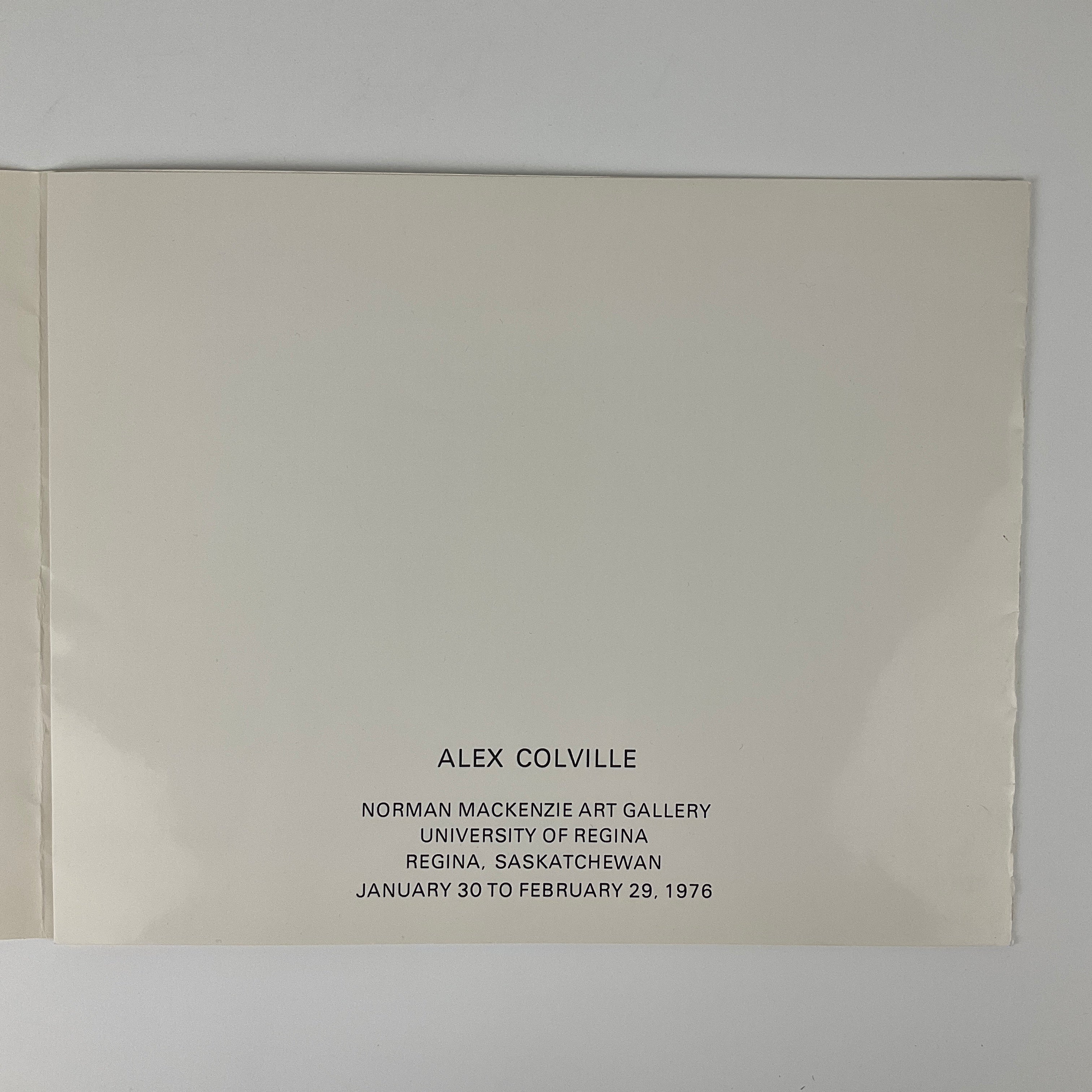 This fold-out exhibition catalogue was produced for a 1976 exhibition of Canadian artist Alex Colville’s work at the Norman Mackenzie Art Gallery at the University of Regina (Saskatchewan). The catalogue includes an introduction by curator Carol A. Phillips, a brief biography, and a list of the 25 works exhibited.