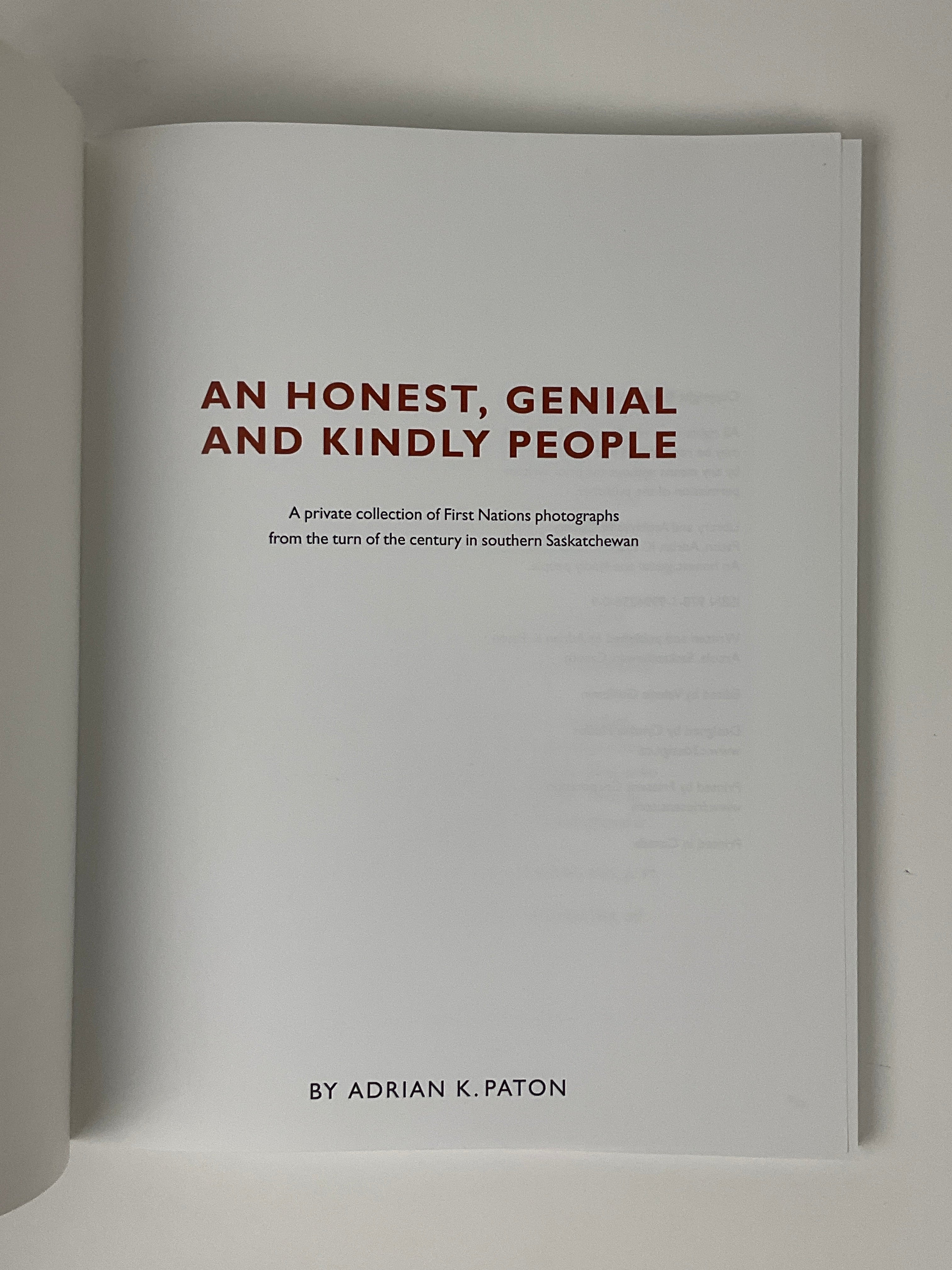 An Honest, Genial And Kindly People : A Private Collection Of First Nations Photographs From The Turn Of The Century In Southern Saskatchewan