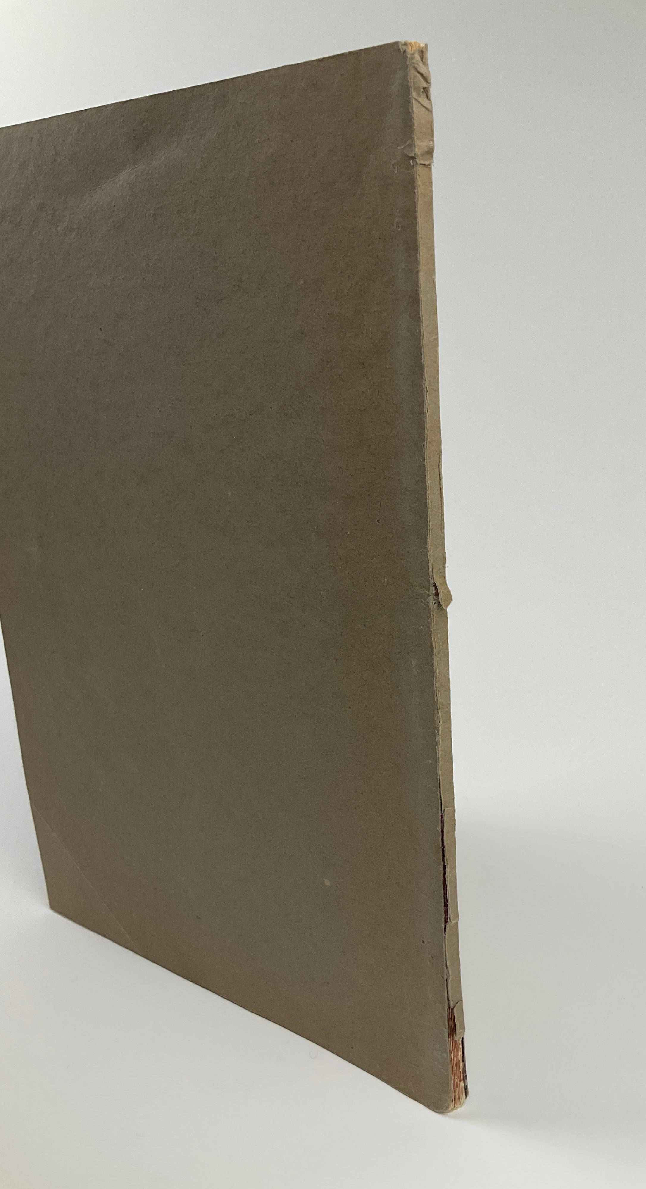 Covers stained, back cover creased with 10 cm (4 in) closed tear along spine edge. Closed tears to spine and 2 cm (.75 in) loss to spine heel, revealing gatherings at head and heel. Staples rusting. Pages age-tanned (esp. plates), final page verso stained. Rear hinge quite tender.